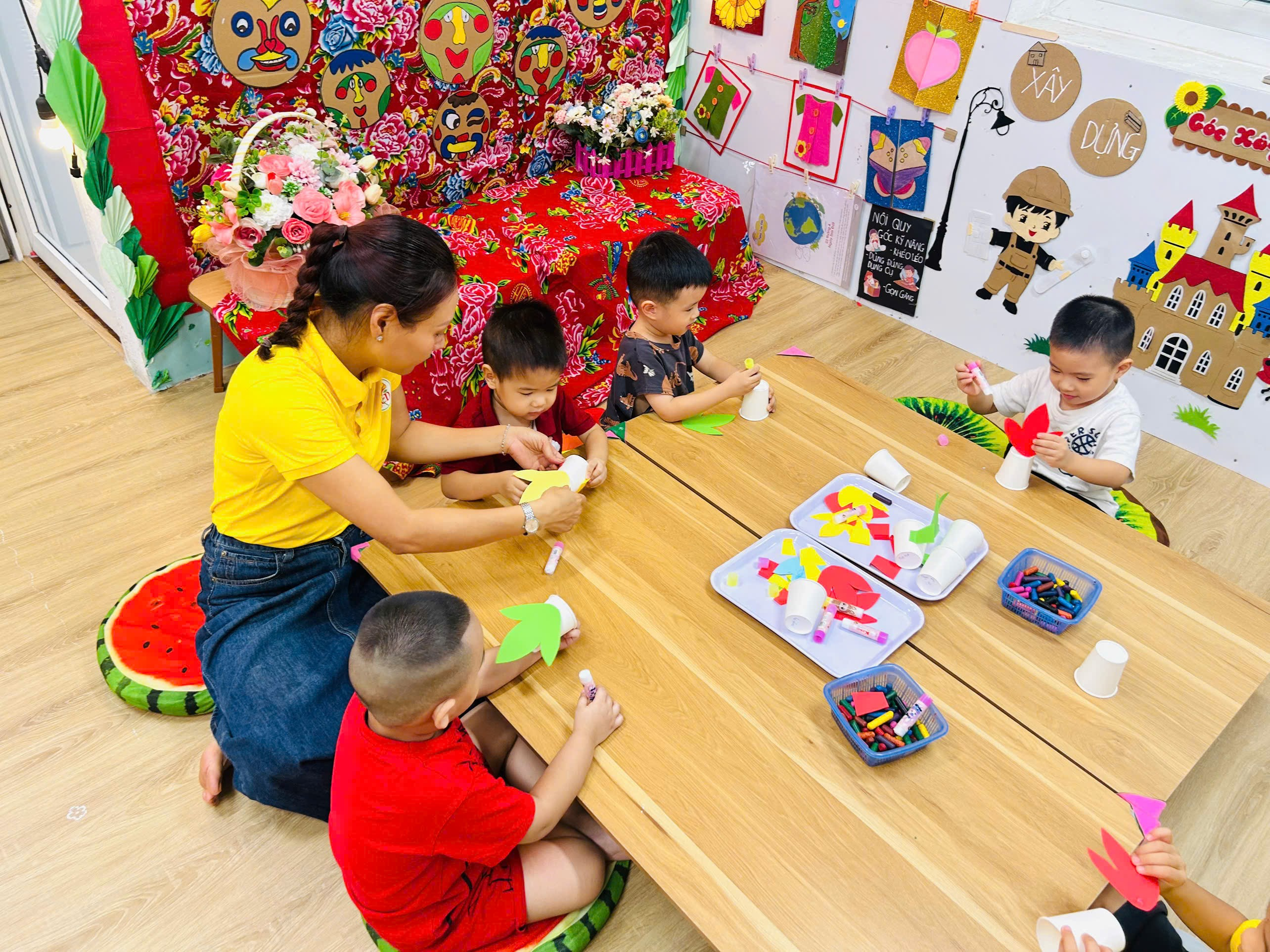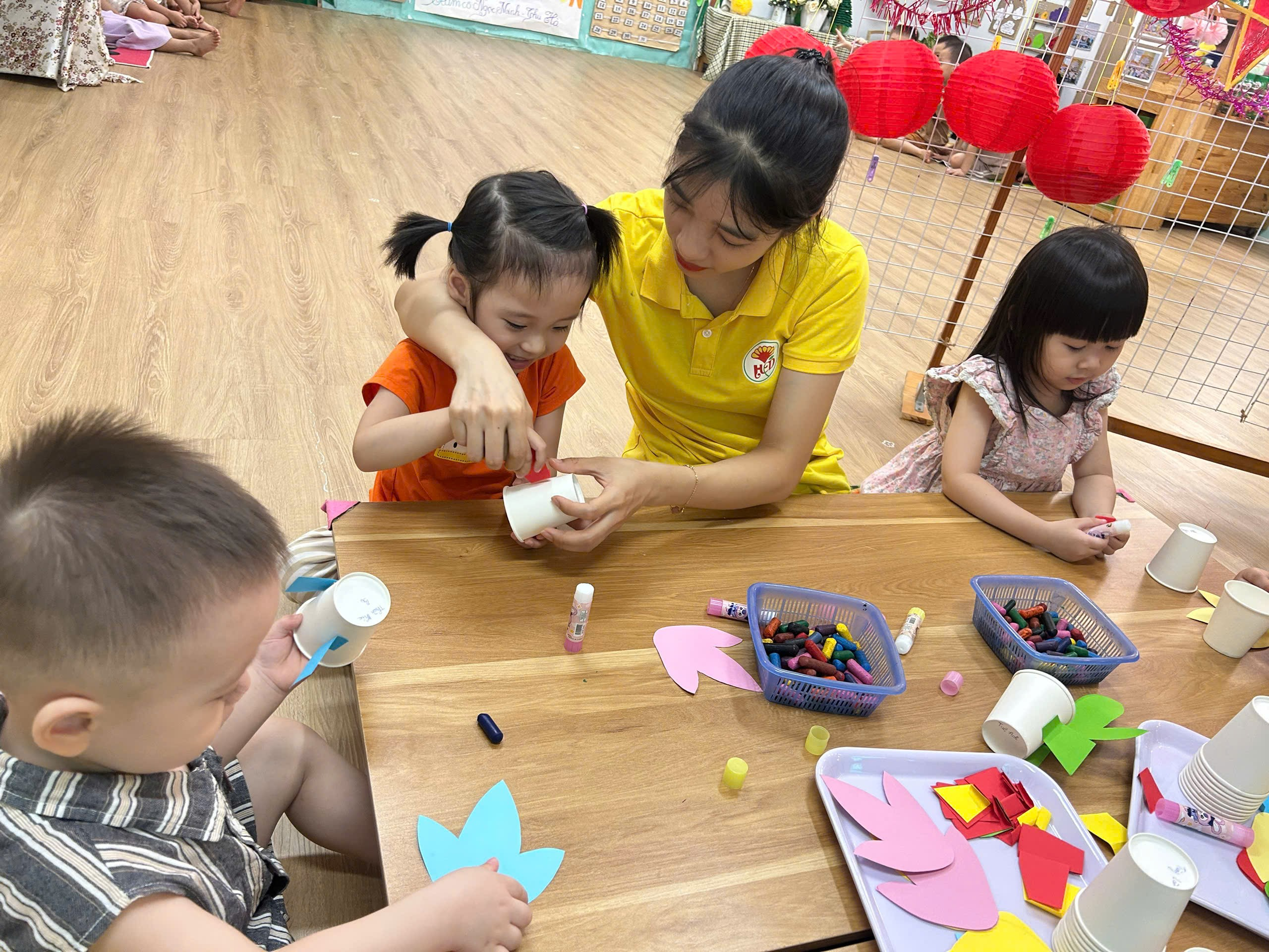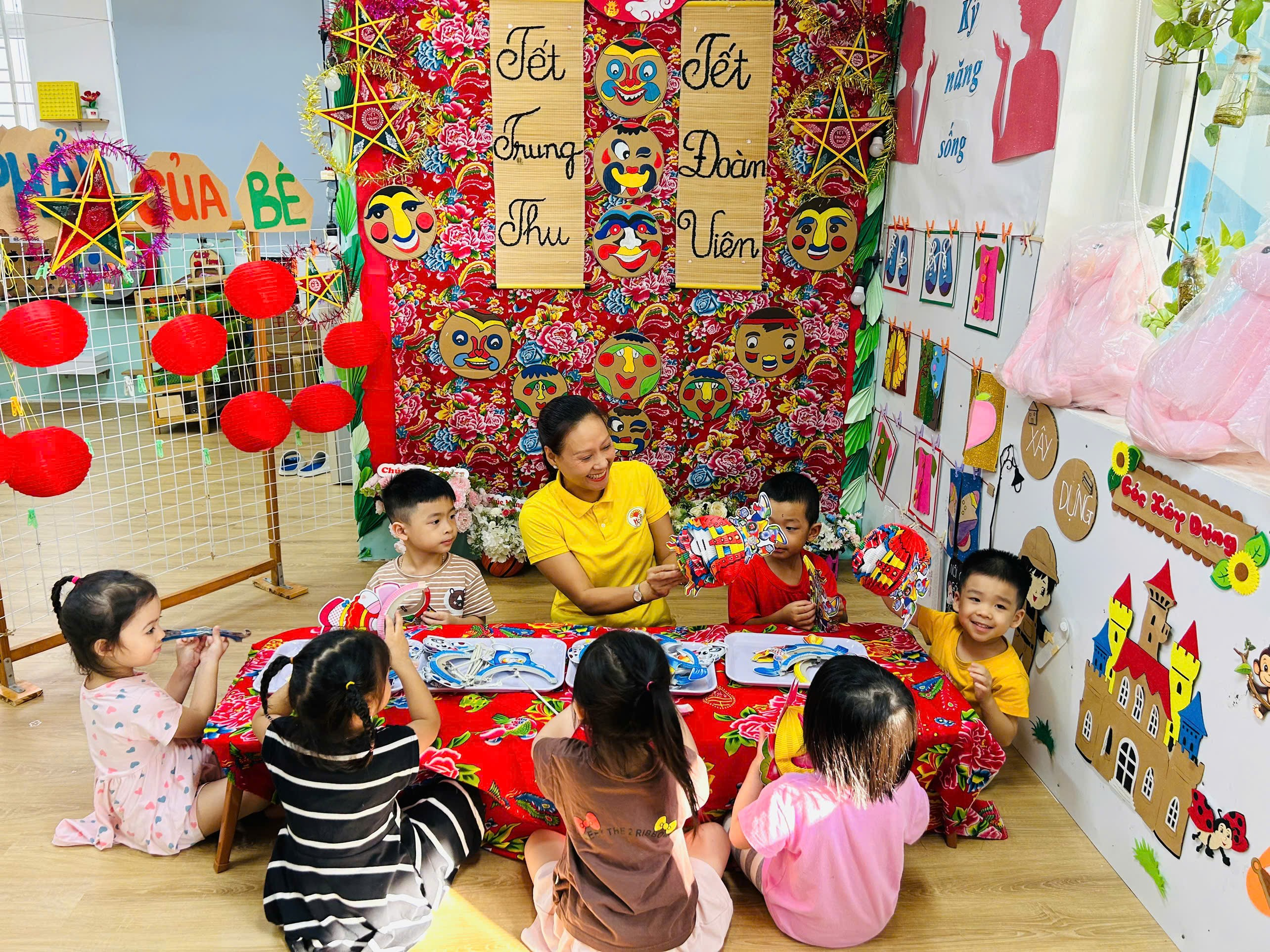 Mỗi chiếc đèn lồng là một tác phẩm sáng tạo độc đáo: có chiếc đỏ thắm tượng trưng cho niềm vui, có chiếc vàng tươi rực rỡ như ánh trăng. Không chỉ dừng lại ở việc tạo hình, các bé còn được chia sẻ ý nghĩa của chiếc đèn lồng – biểu tượng cho tình đoàn viên, cho sự gắn kết gia đình và tuổi thơ trọn vẹn yêu thương.
