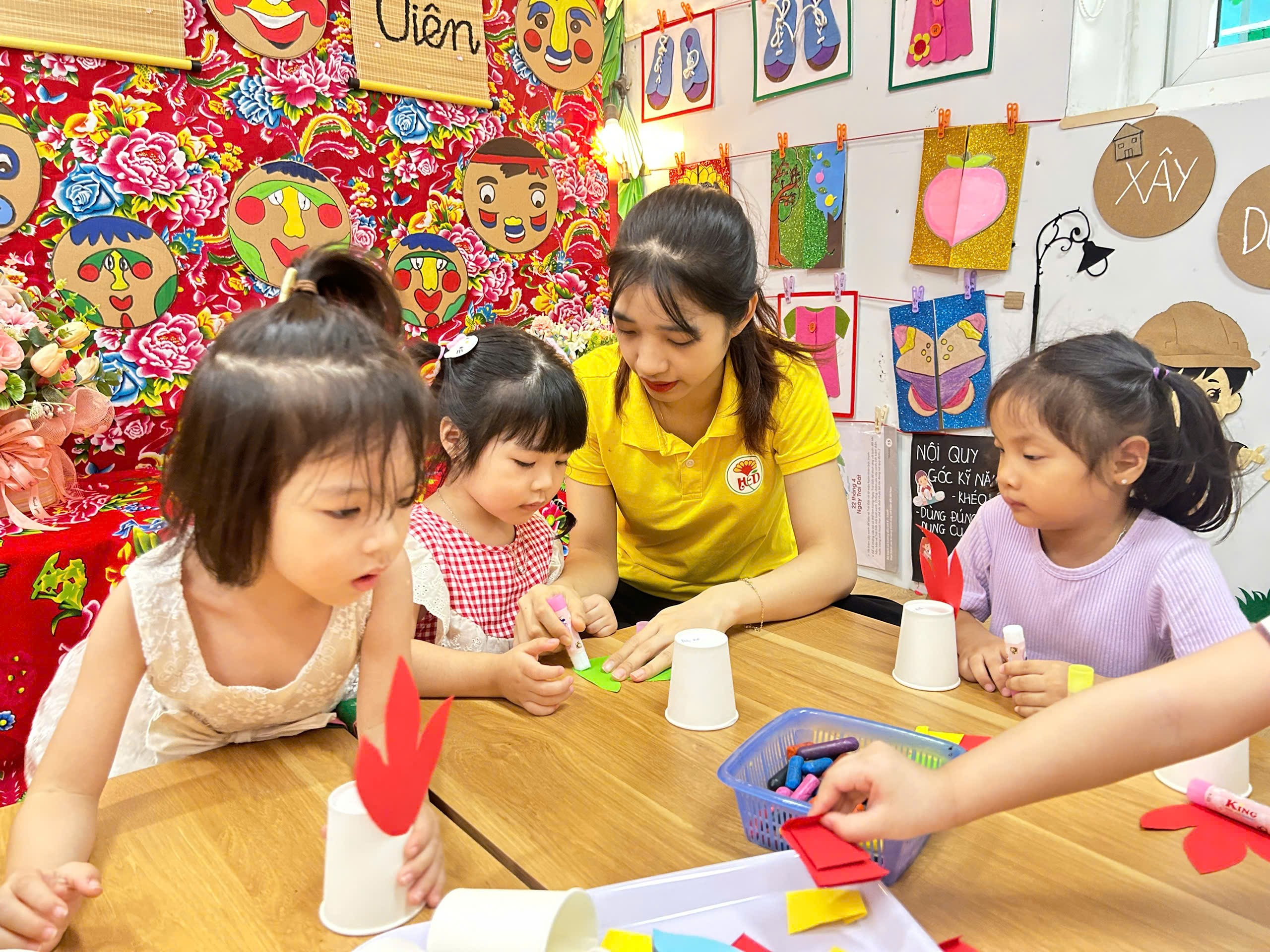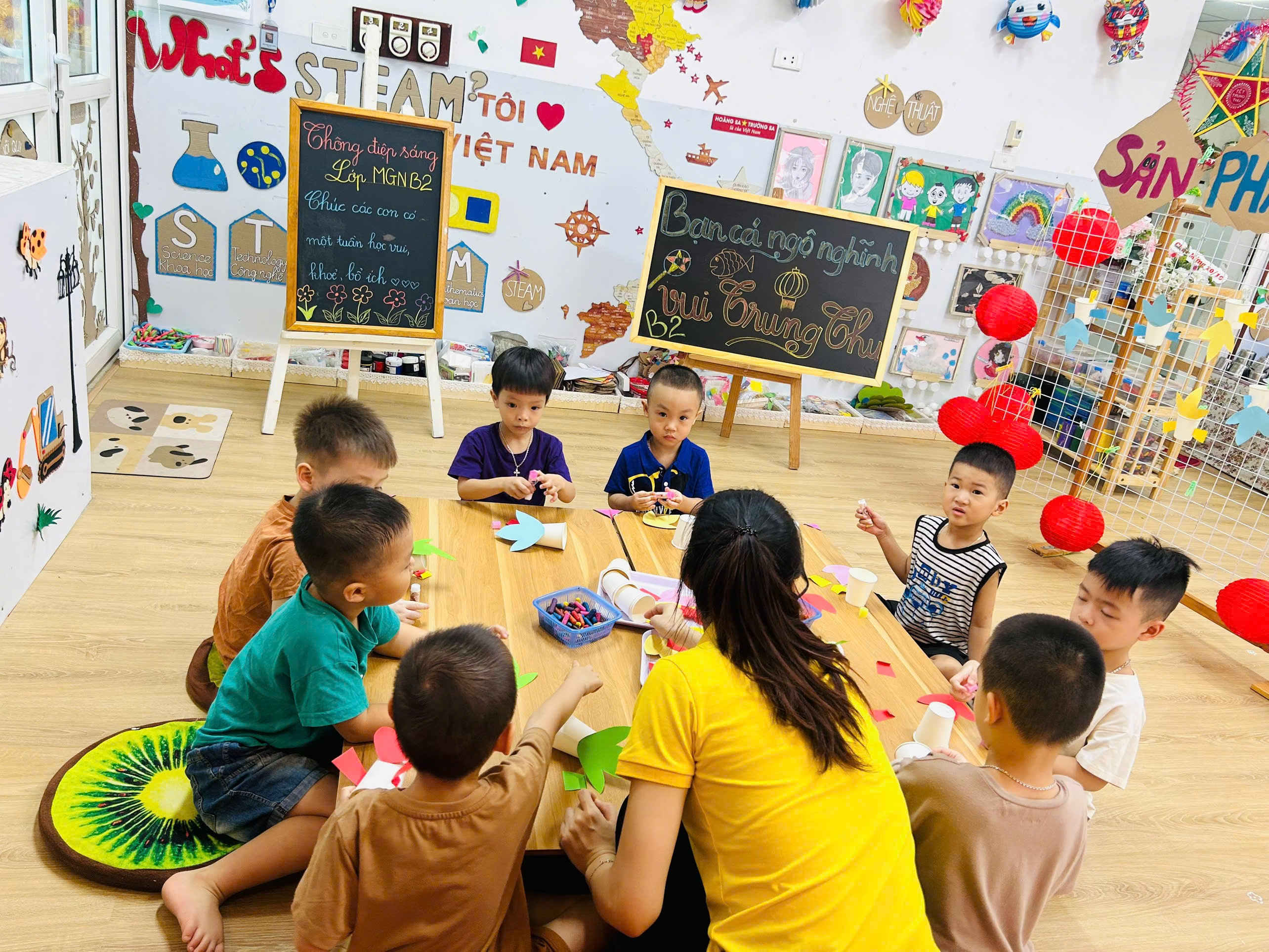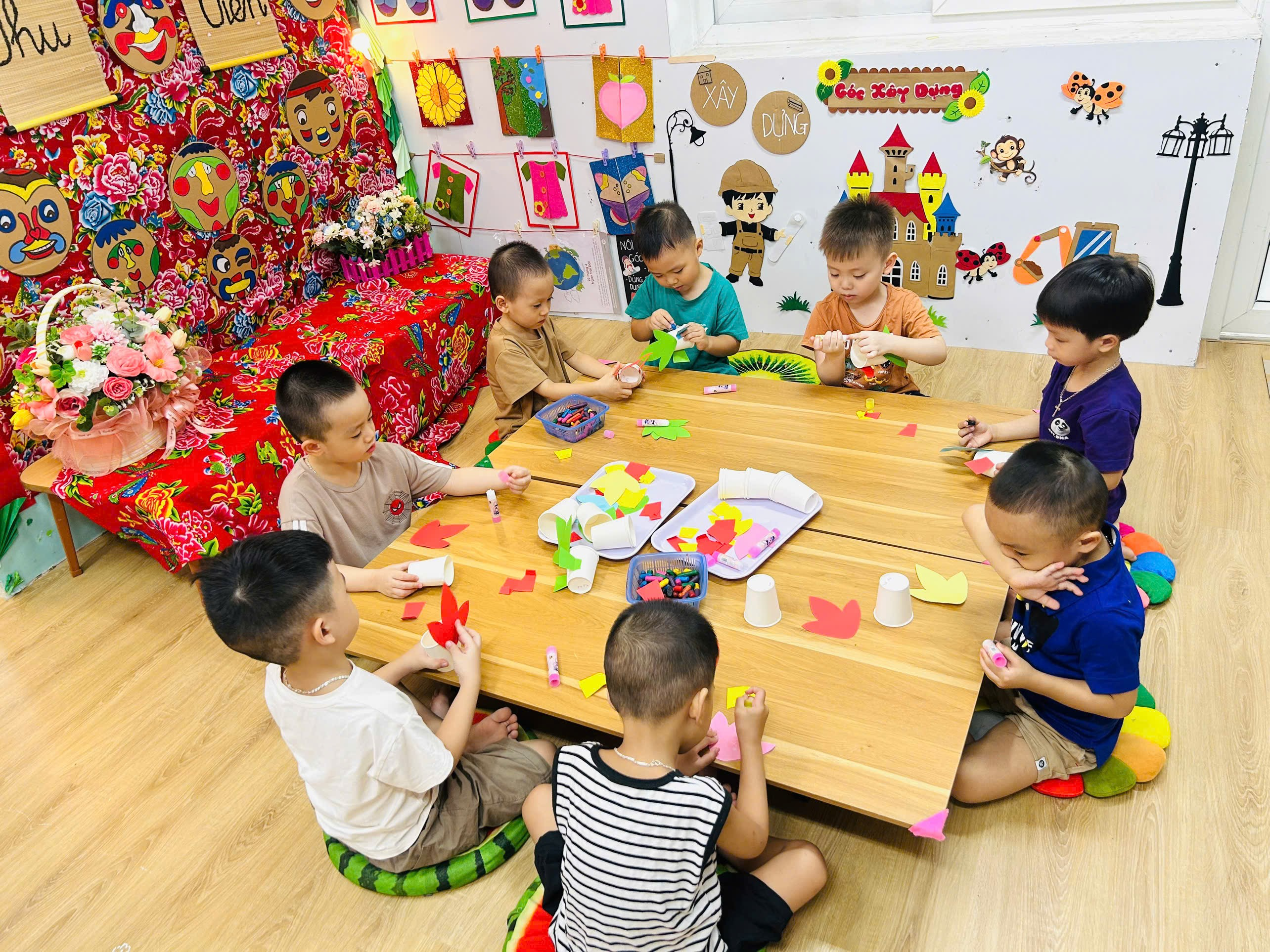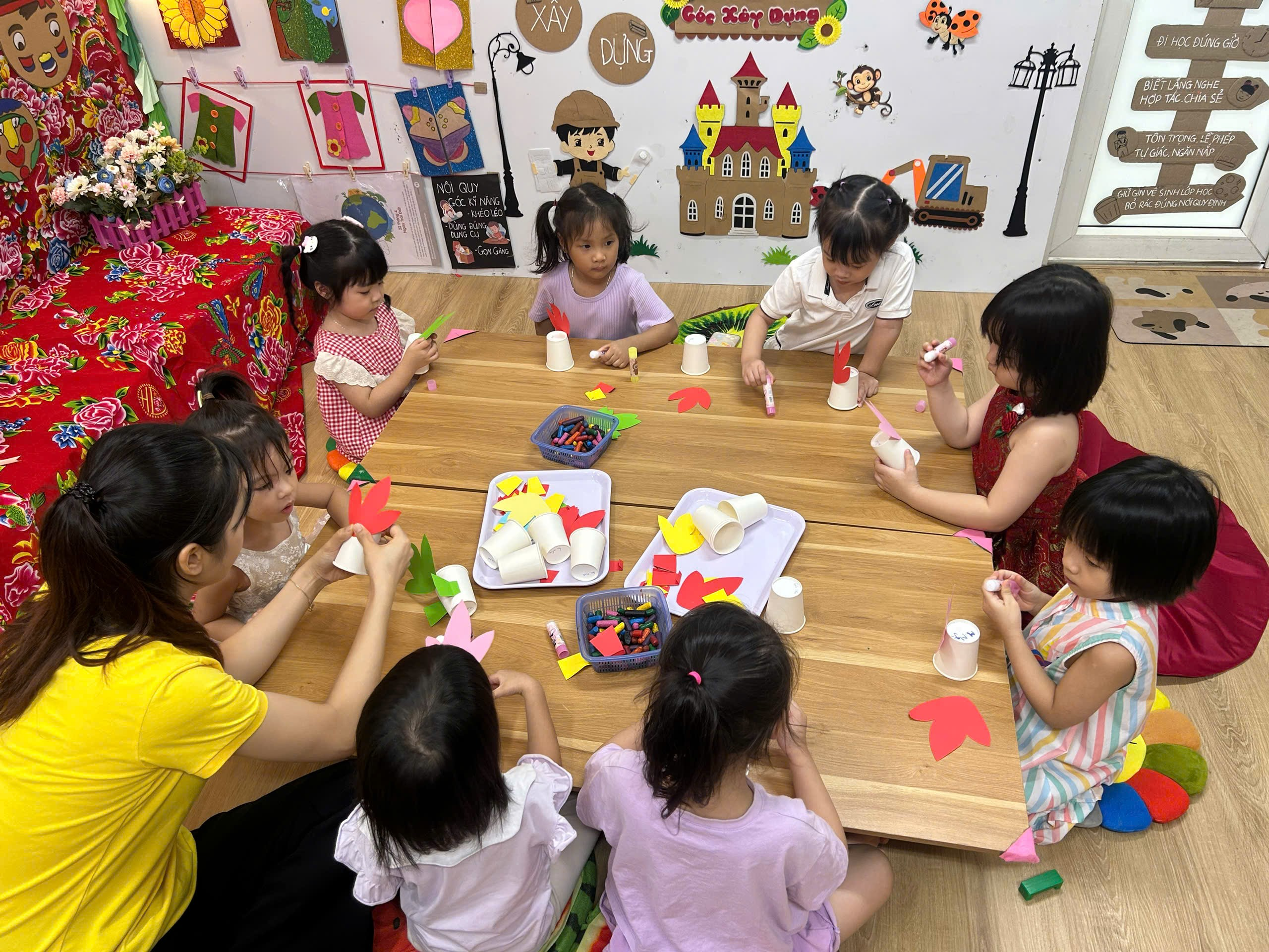 Mỗi chiếc đèn lồng là một tác phẩm sáng tạo độc đáo: có chiếc đỏ thắm tượng trưng cho niềm vui, có chiếc vàng tươi rực rỡ như ánh trăng. Không chỉ dừng lại ở việc tạo hình, các bé còn được chia sẻ ý nghĩa của chiếc đèn lồng – biểu tượng cho tình đoàn viên, cho sự gắn kết gia đình và tuổi thơ trọn vẹn yêu thương.