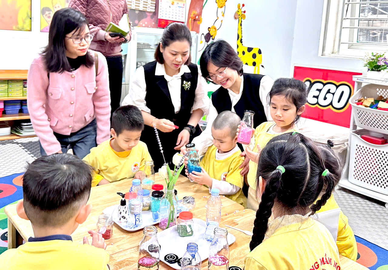 Tại buổi kiến tập, các đại biểu đã được dự giờ và quan sát trực tiếp các hoạt động học lồng ghép các nội dung giáo dục phát triển tình cảm và kỹ năng xã hội cho trẻ ở các lứa tuổi như: Trò chuyện sáng, hoạt động học, hoạt động giao lưu, đây là những hoạt động giáo dục có nội dung mới mẻ sáng tạo được giáo viên tổ chức lồng ghép trong các hoạt động trải nghiệm phong phú và đa dạng, nơi trẻ mạnh dạn giao tiếp, hợp tác, chia sẻ và thể hiện cảm xúc một cách tự nhiên.