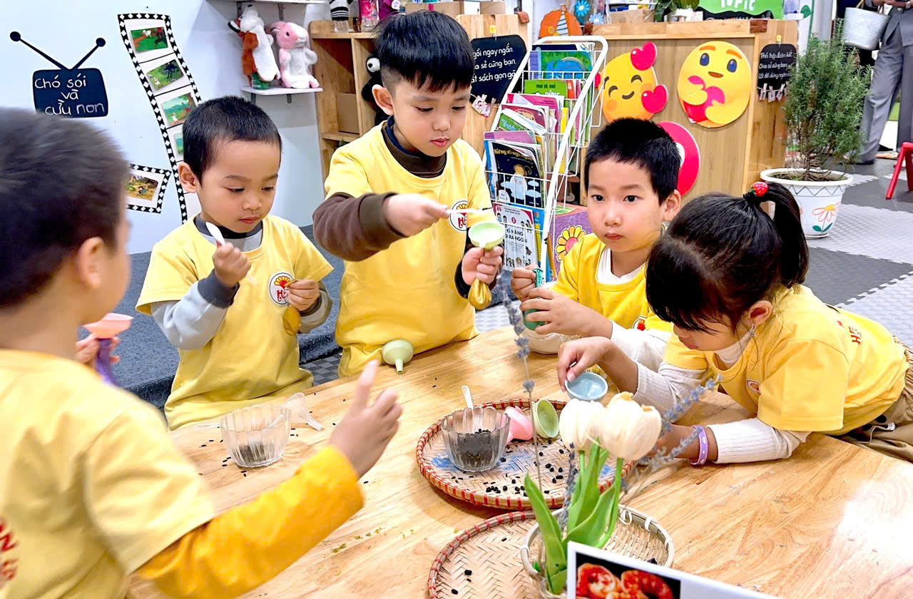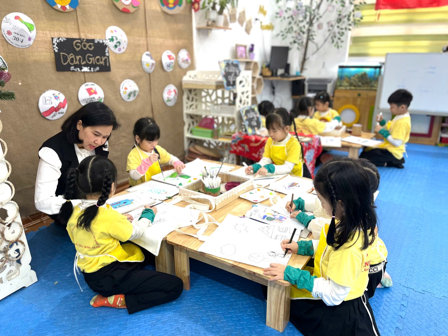 Bên cạnh đó, các hoạt động giao lưu tập thể như vận động thể chất, trò chơi kết nối và sân khấu múa rối nước đã mang đến bầu không khí vui tươi, gần gũi, giúp trẻ phát triển kỹ năng xã hội thông qua trải nghiệm thực tế. Hoạt động mở của các lớp học thể hiện rõ vai trò tổ chức, dẫn dắt của giáo viên, đồng thời phát huy tính chủ động, tự tin và tinh thần hợp tác của trẻ – theo định hướng lấy trẻ làm trung tâm trong giáo dục mầm non.