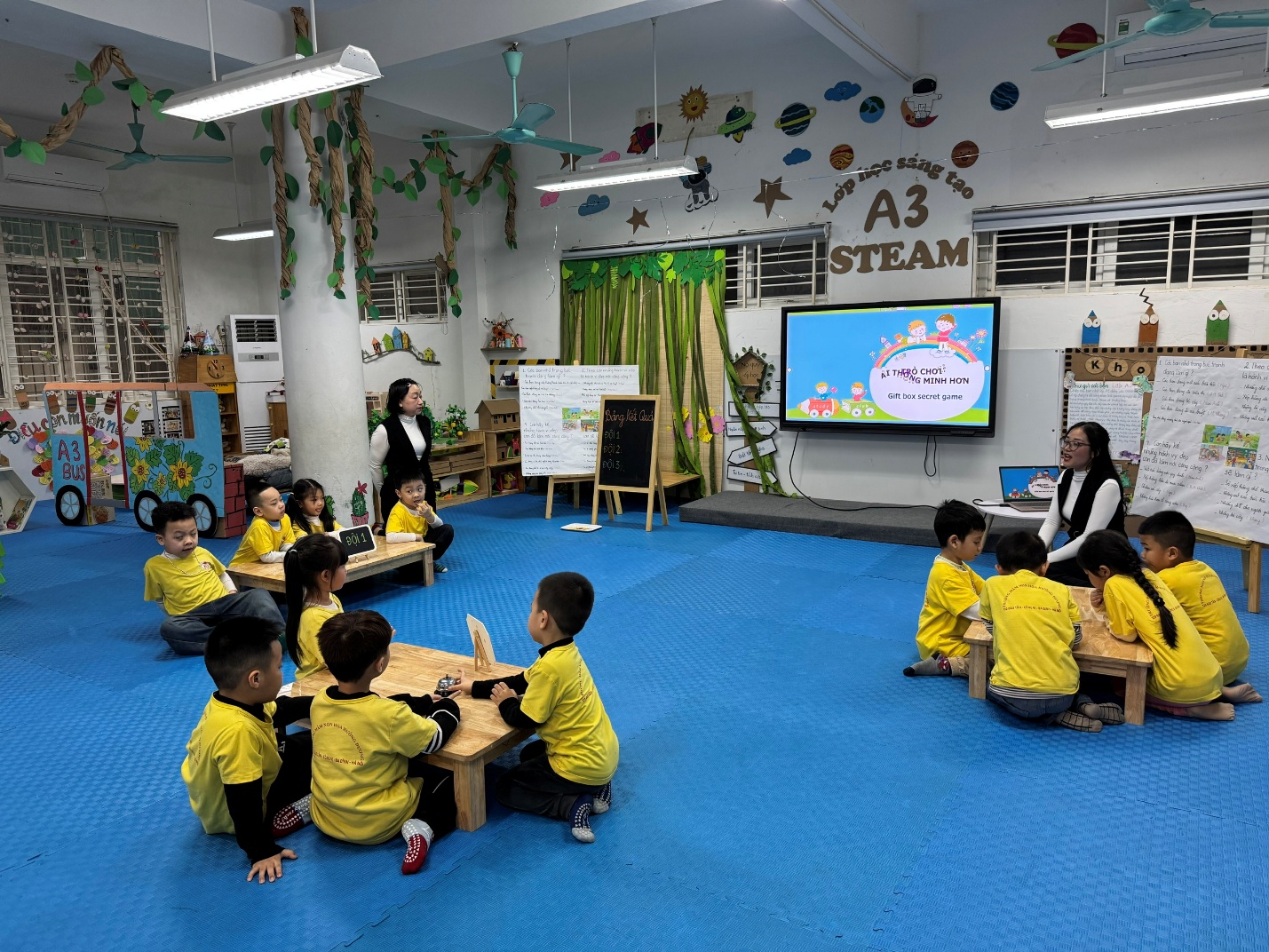 Không khí của buổi học thật sôi nổi và hào hứng. Các bé ai nấy đều hăng hái tham gia vào các hoạt động. Những gương mặt rạng rỡ, những tiếng cười giòn tan đã lan tỏa niềm vui đến tất cả mọi người.