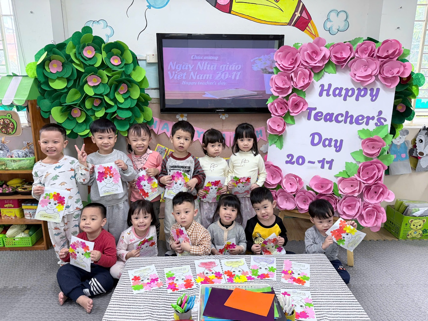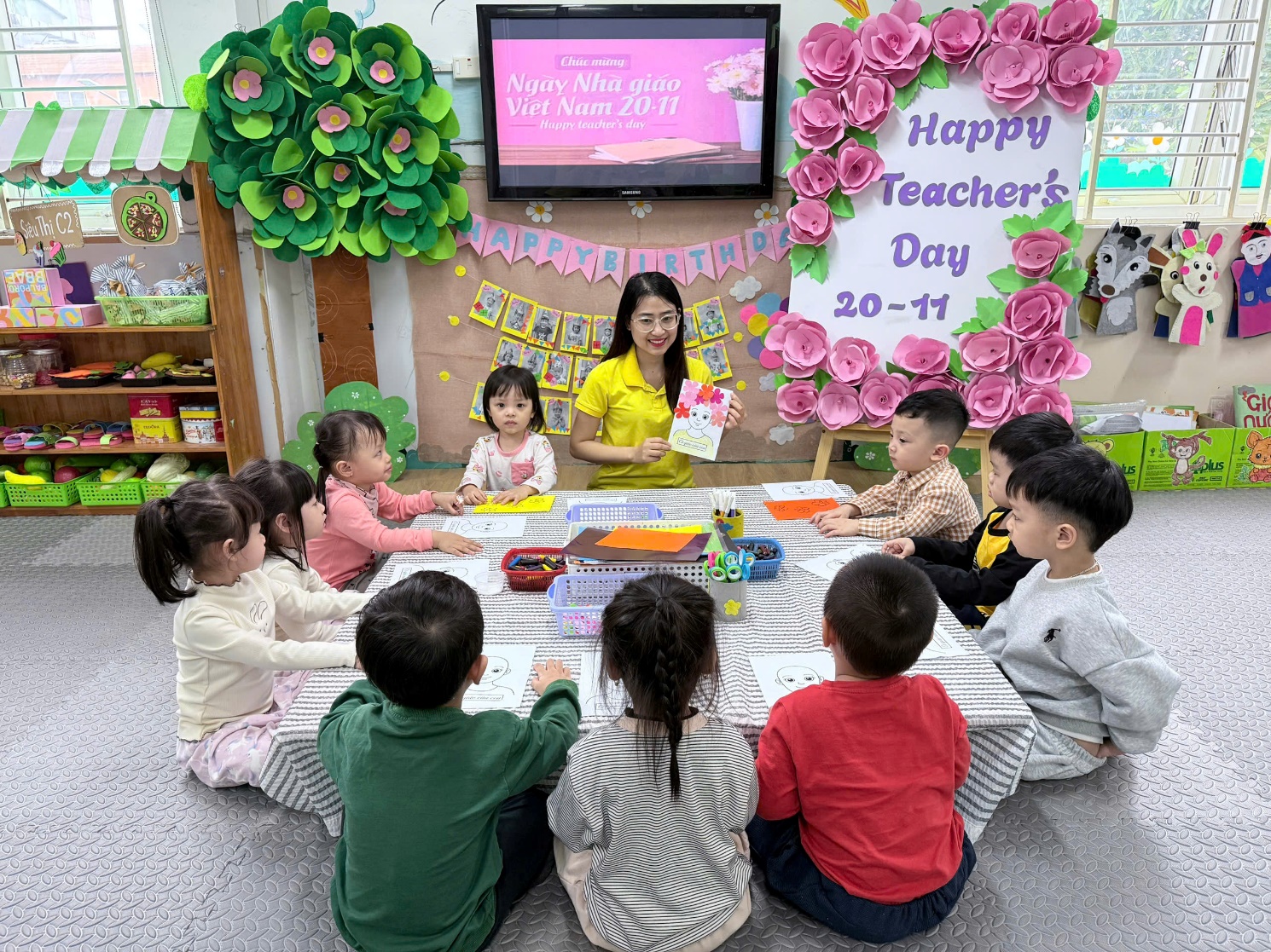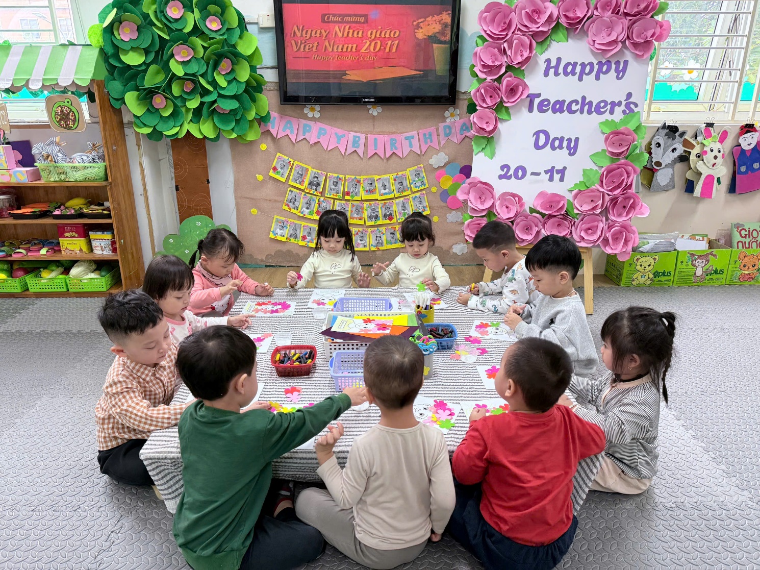 Qua hoạt động, trẻ không chỉ được rèn kỹ năng cầm kéo, phối hợp tay – mắt và sự khéo léo, mà còn học cách thể hiện lòng biết ơn, nói lời yêu thương dành tặng cô giáo – người luôn đồng hành cùng các con mỗi ngày. Và khi những bức tranh đầy màu sắc được hoàn thiện, ánh mắt rạng rỡ và nụ cười tự hào của các bé chính là món quà đẹp nhất gửi tới các cô nhân ngày 20/11.