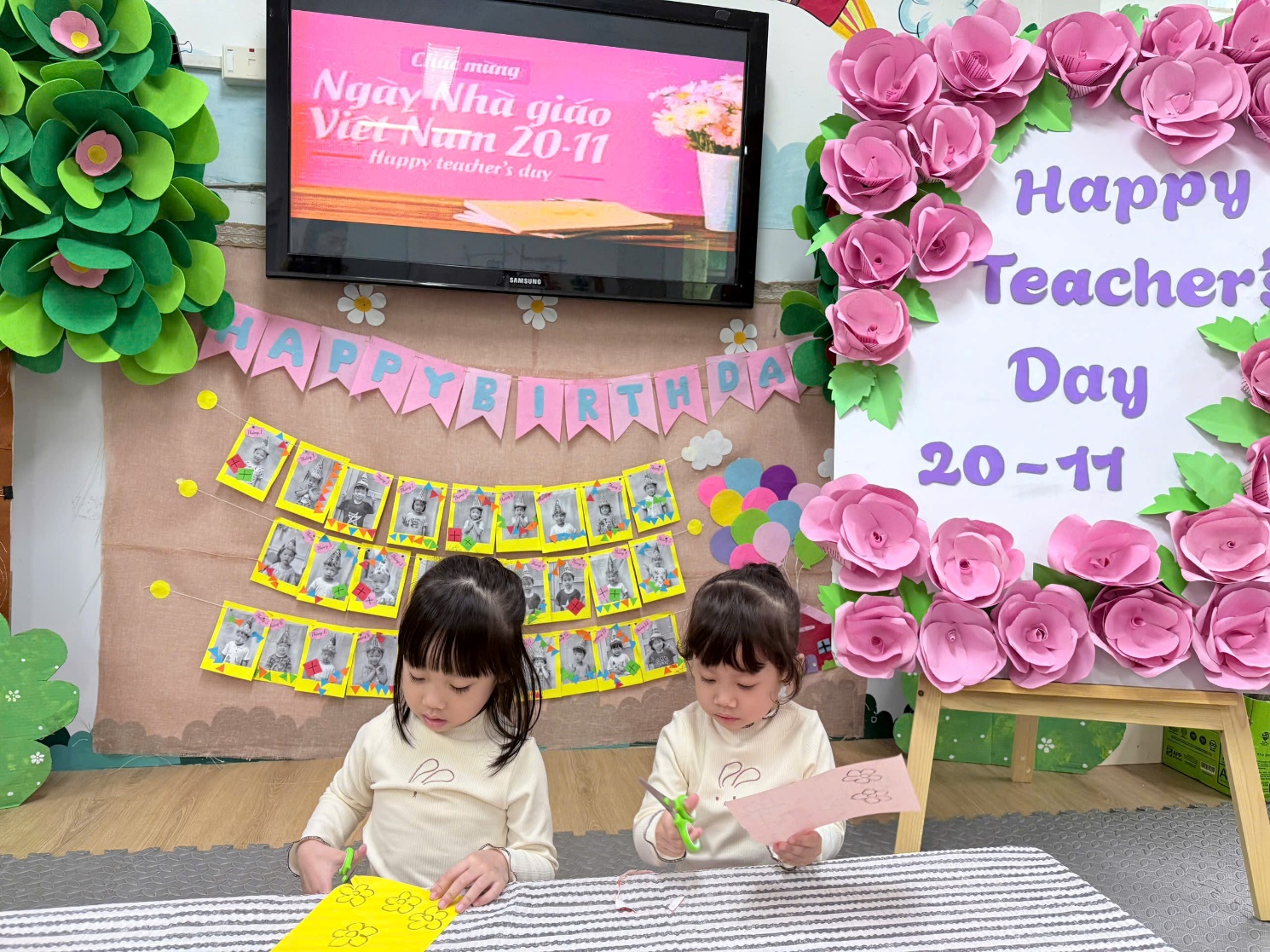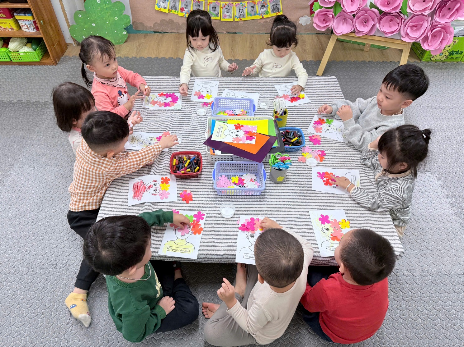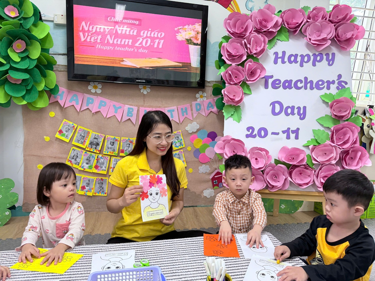 Qua hoạt động, trẻ không chỉ được rèn kỹ năng cầm kéo, phối hợp tay – mắt và sự khéo léo, mà còn học cách thể hiện lòng biết ơn, nói lời yêu thương dành tặng cô giáo – người luôn đồng hành cùng các con mỗi ngày. Và khi những bức tranh đầy màu sắc được hoàn thiện, ánh mắt rạng rỡ và nụ cười tự hào của các bé chính là món quà đẹp nhất gửi tới các cô nhân ngày 20/11.