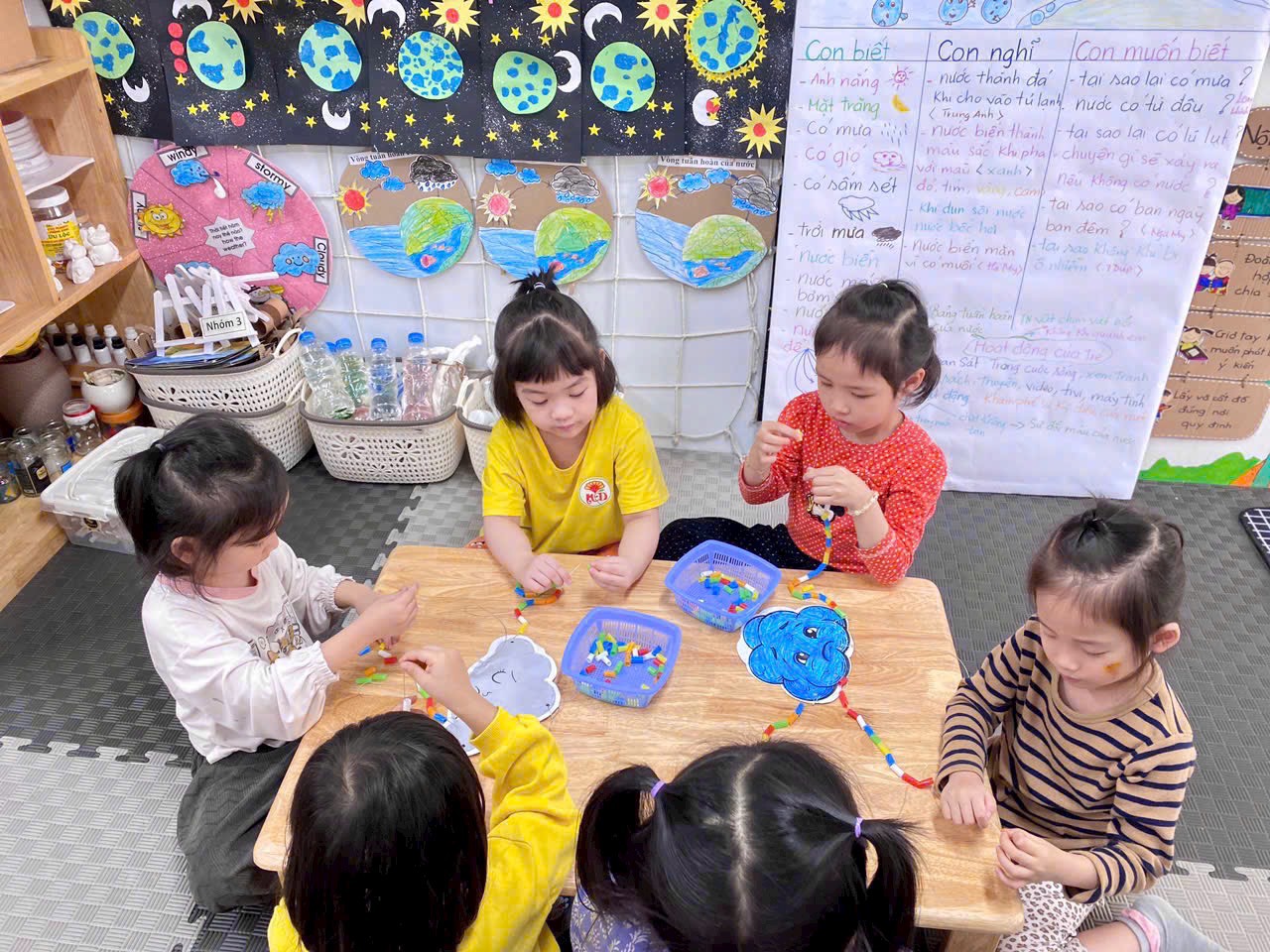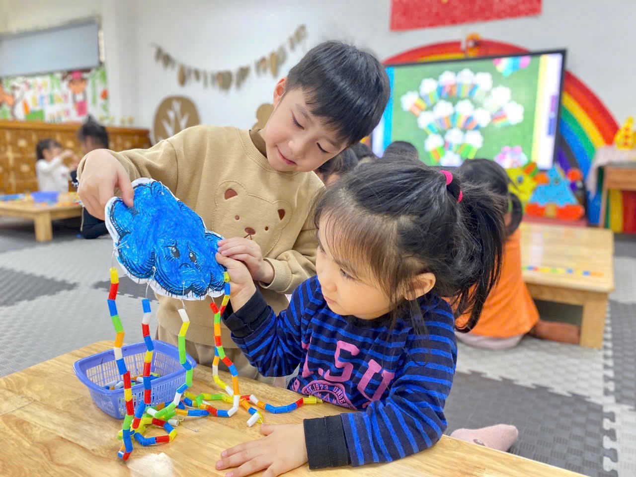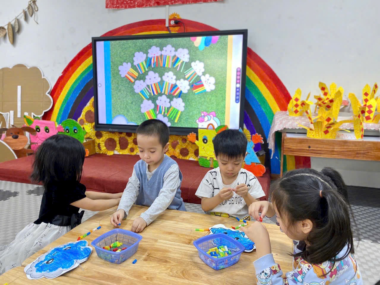 "Cơn mưa sắc màu" rực rỡ từ ống hút - Hoạt động STEAM của các bé lớp Mẫu giáo nhỡ B3