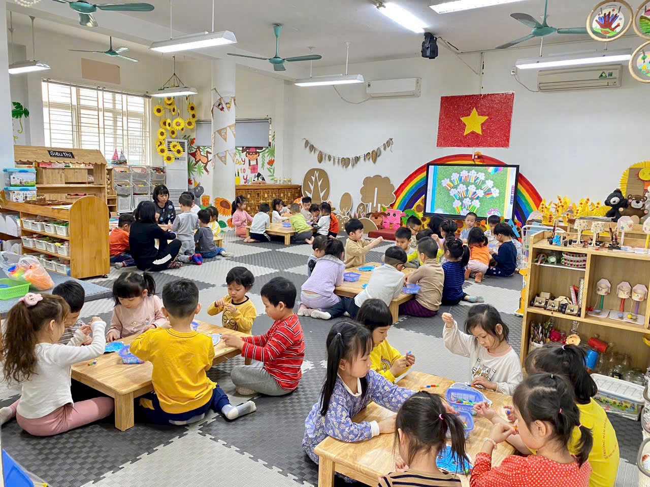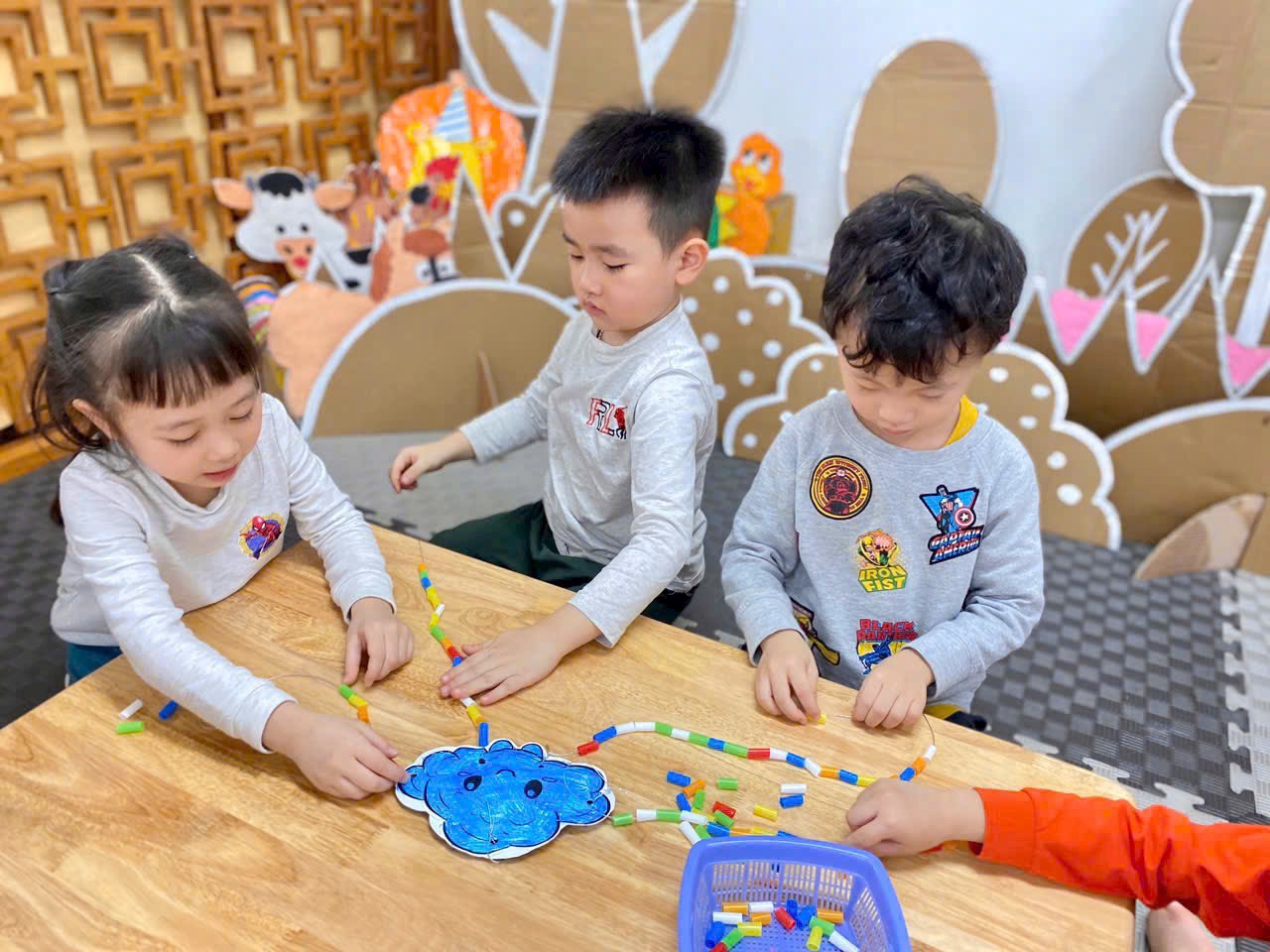 Các bạn nhỏ lớp B3 trường mầm non Hoa Hướng Dương với hoạt động STEAM đầy màu sắc "Làm cơn mưa sắc màu từ ống hút". Hoạt động không chỉ mang đến những giây phút vui vẻ mà còn khơi gợi khả năng sáng tạo của các bé.