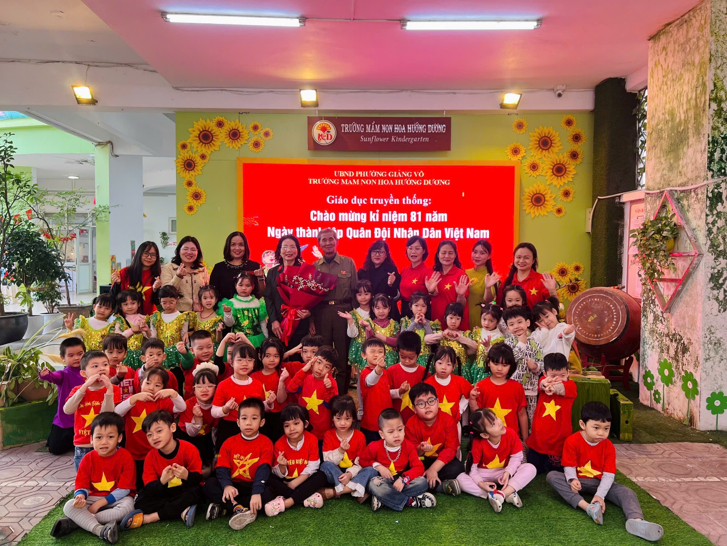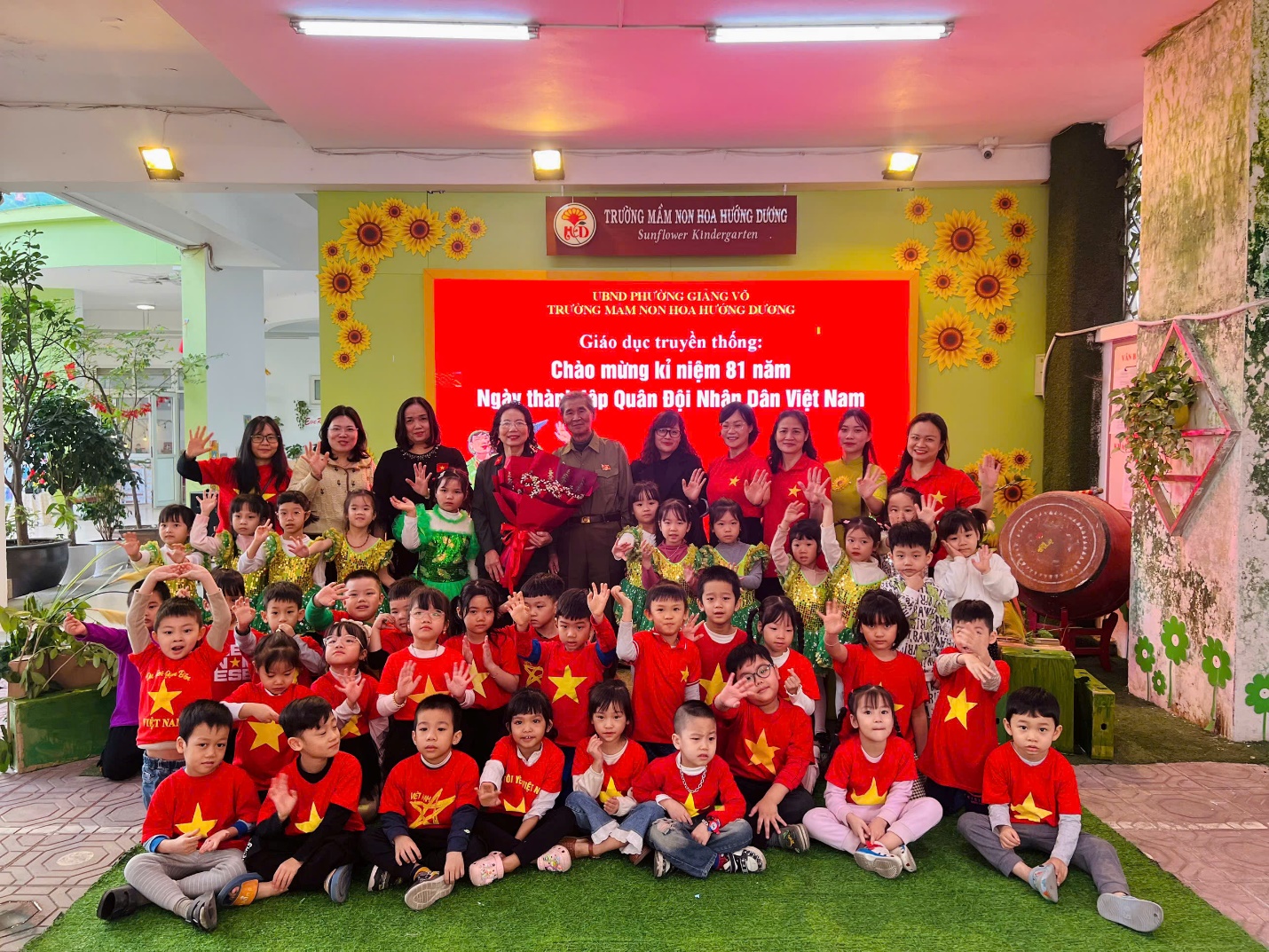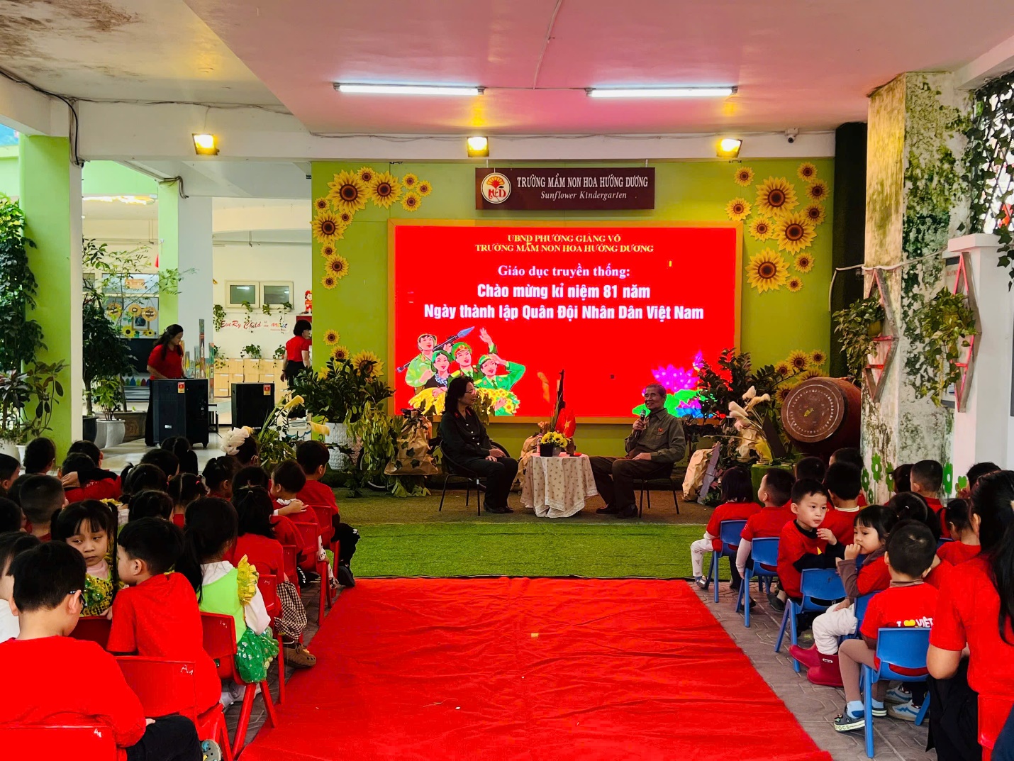 Trong không khí trang nghiêm, ấm áp và đầy xúc động, Trường Mầm non Hoa Hướng Dương đã tổ chức buổi Giao lưu Giáo dục truyền thống: Chào mừng kỷ niệm 81 năm Ngày thành lập Quân đội Nhân dân Việt Nam. Đây không chỉ là một hoạt động ý nghĩa hướng về lịch sử dân tộc, mà còn là dịp đặc biệt để các em nhỏ được chạm vào những giá trị thiêng liêng của lòng yêu nước, sự hy sinh và tinh thần kiên cường của cha ông.