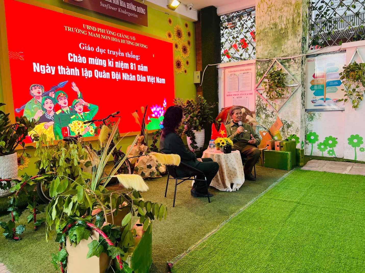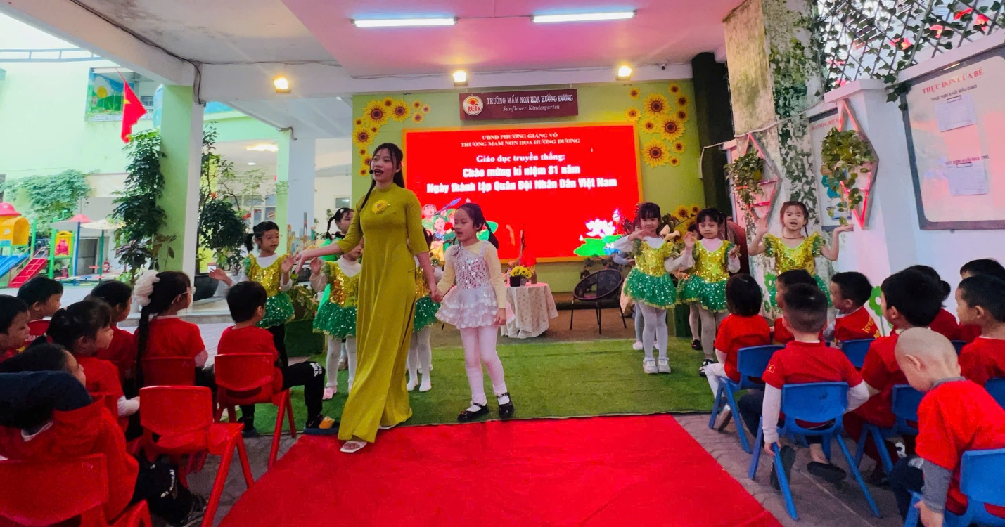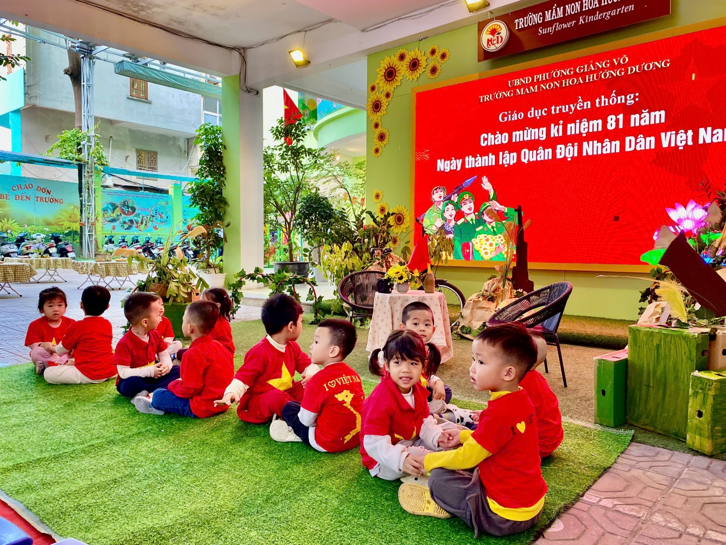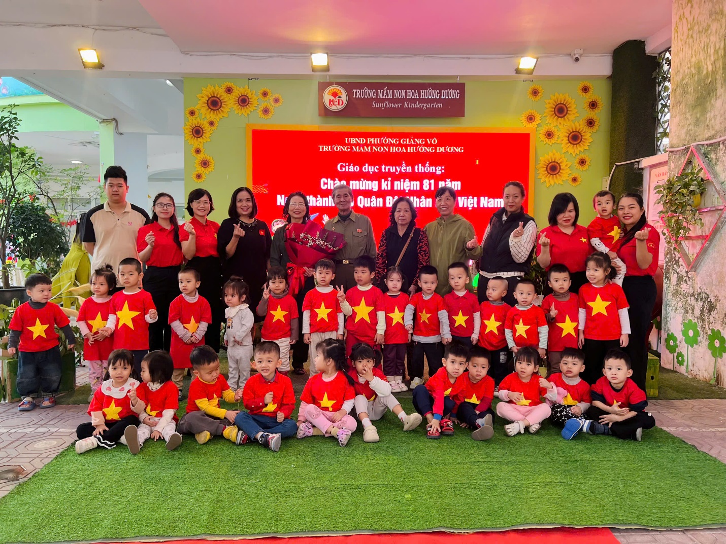 Trong không khí trang nghiêm, ấm áp và đầy xúc động, Trường Mầm non Hoa Hướng Dương đã tổ chức buổi Giao lưu Giáo dục truyền thống: Chào mừng kỷ niệm 81 năm Ngày thành lập Quân đội Nhân dân Việt Nam. Đây không chỉ là một hoạt động ý nghĩa hướng về lịch sử dân tộc, mà còn là dịp đặc biệt để các em nhỏ được chạm vào những giá trị thiêng liêng của lòng yêu nước, sự hy sinh và tinh thần kiên cường của cha ông.