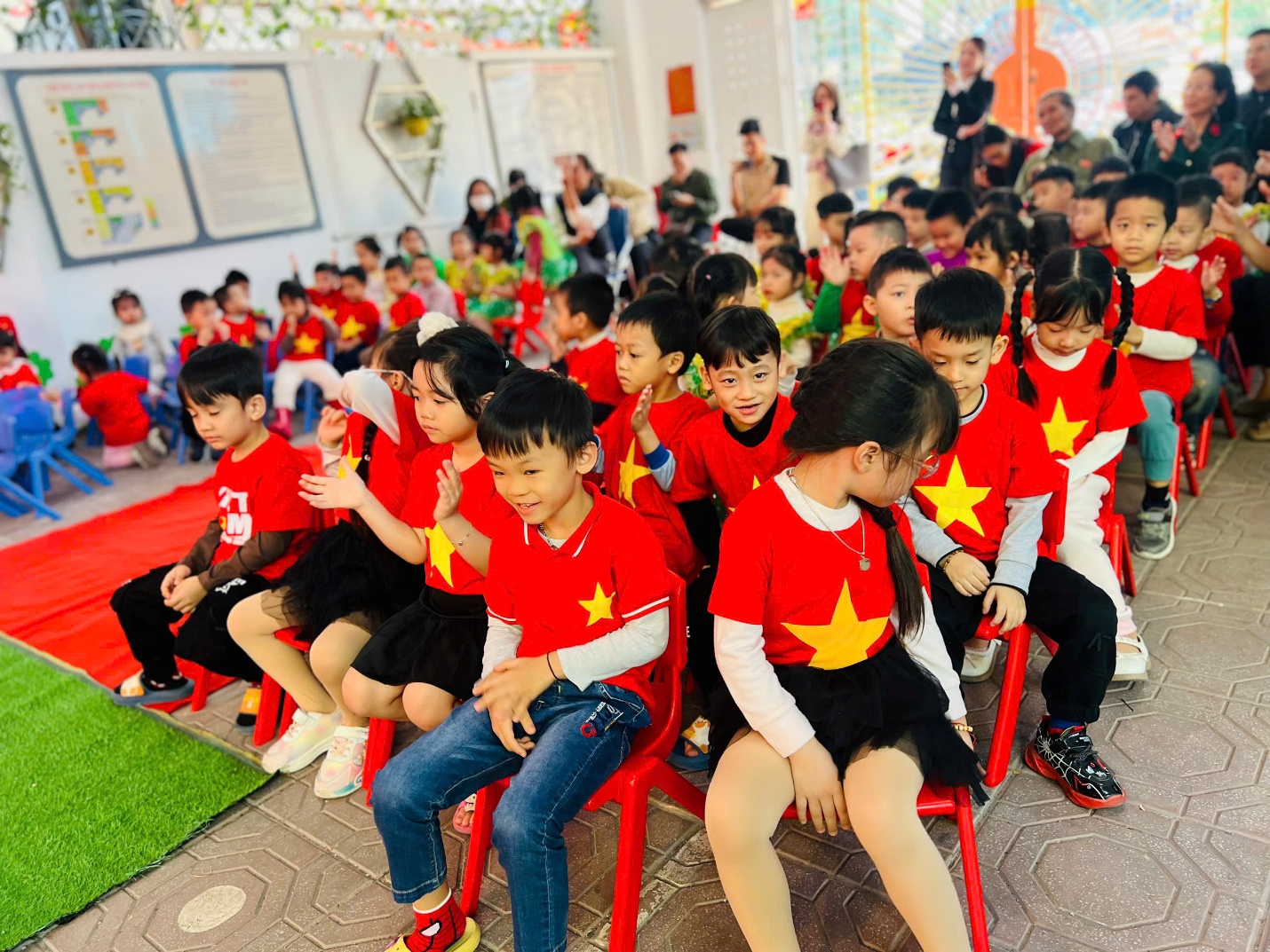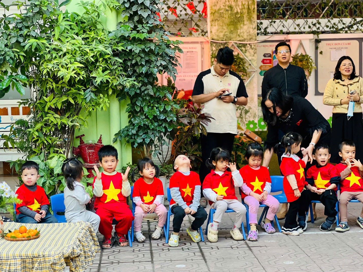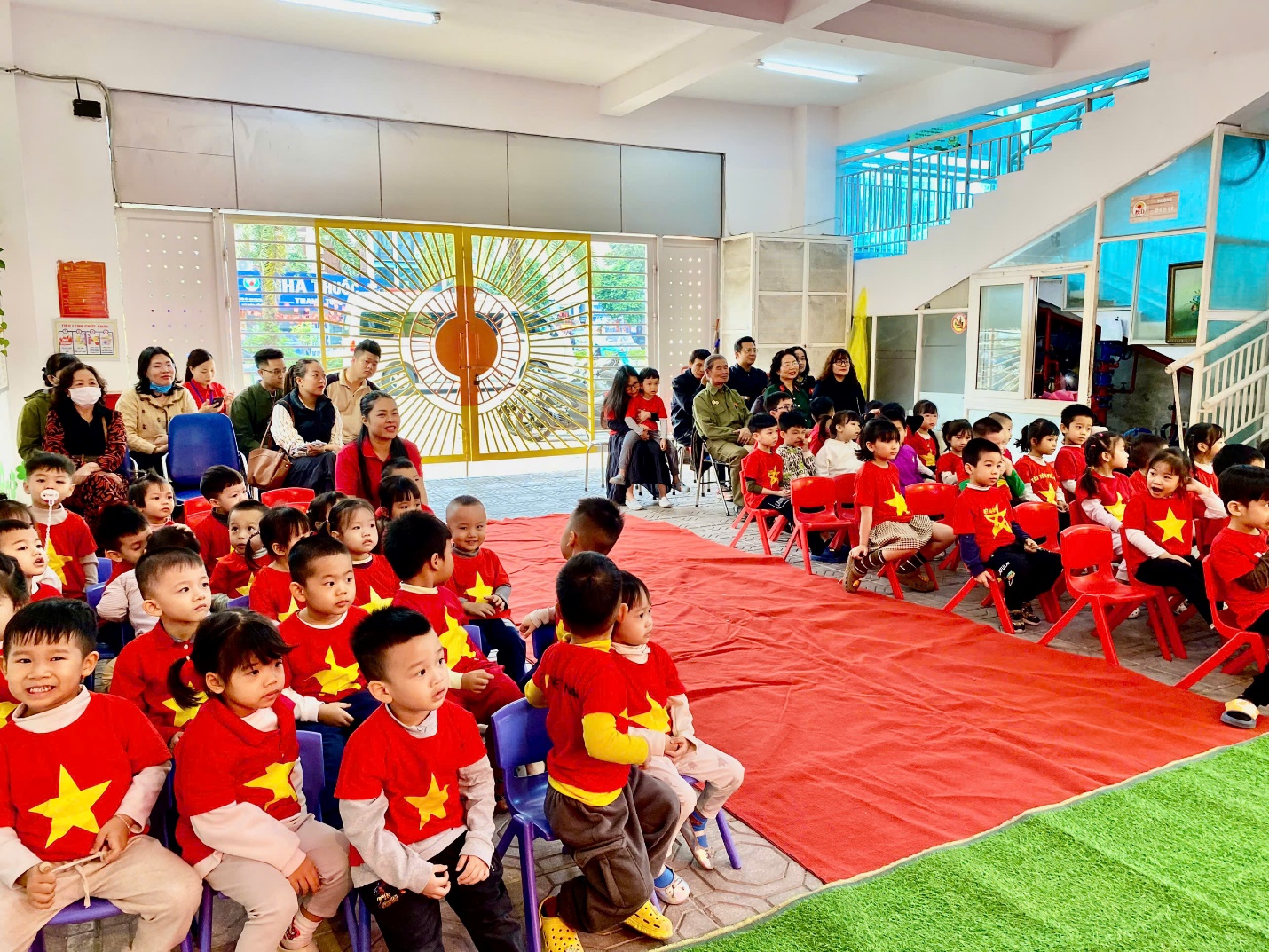Không khí rộn ràng, xúc động khi mở đầu buổi giao lưu là hai tiết mục văn nghệ đặc sắc do các bé lớp Mẫu giáo Lớn A1 và lớp Mẫu giáo Bé C1 biểu diễn. Những lời ca trong trẻo, những động tác hồn nhiên mà đầy tự hào của các con đã thắp lên không gian chương trình sắc màu tuổi thơ, gửi gắm tình yêu quê hương đất nước theo cách thật giản dị và đáng yêu.