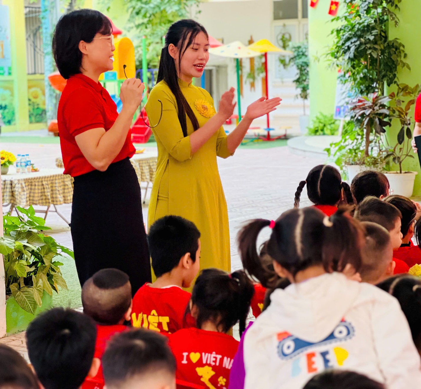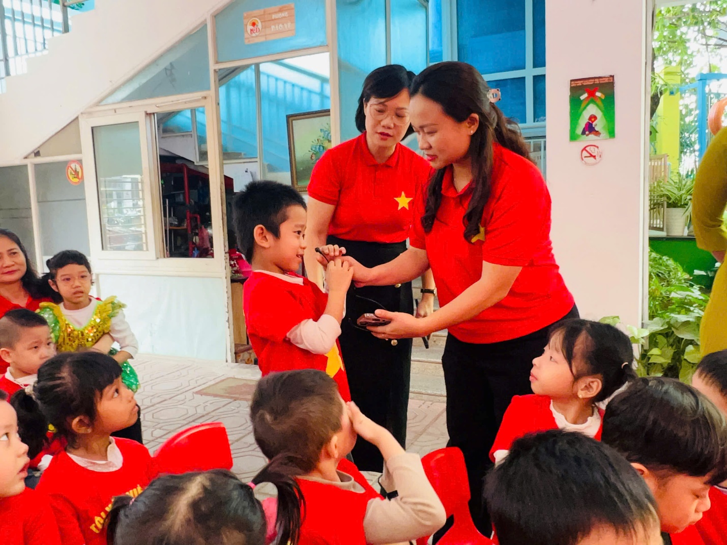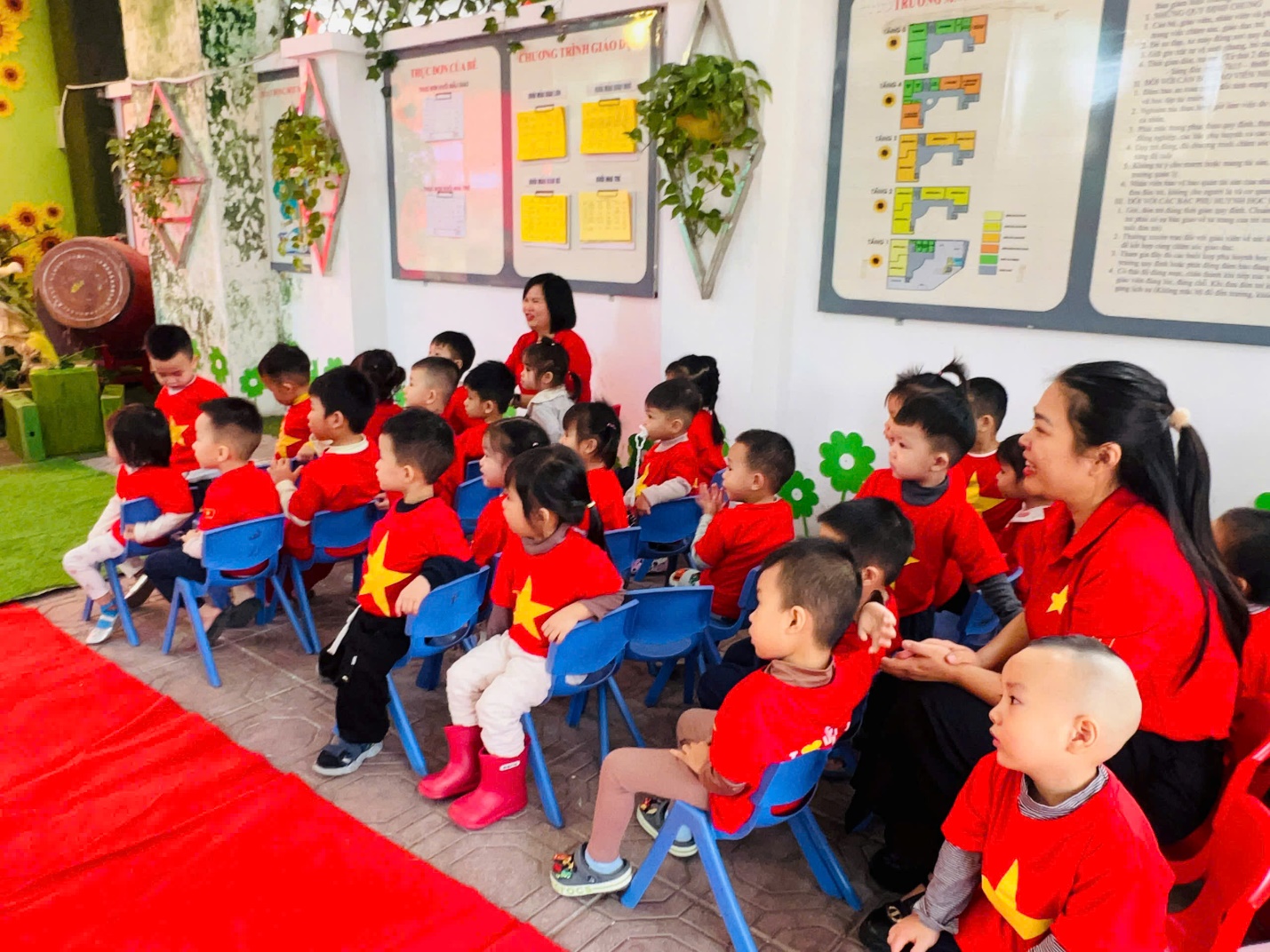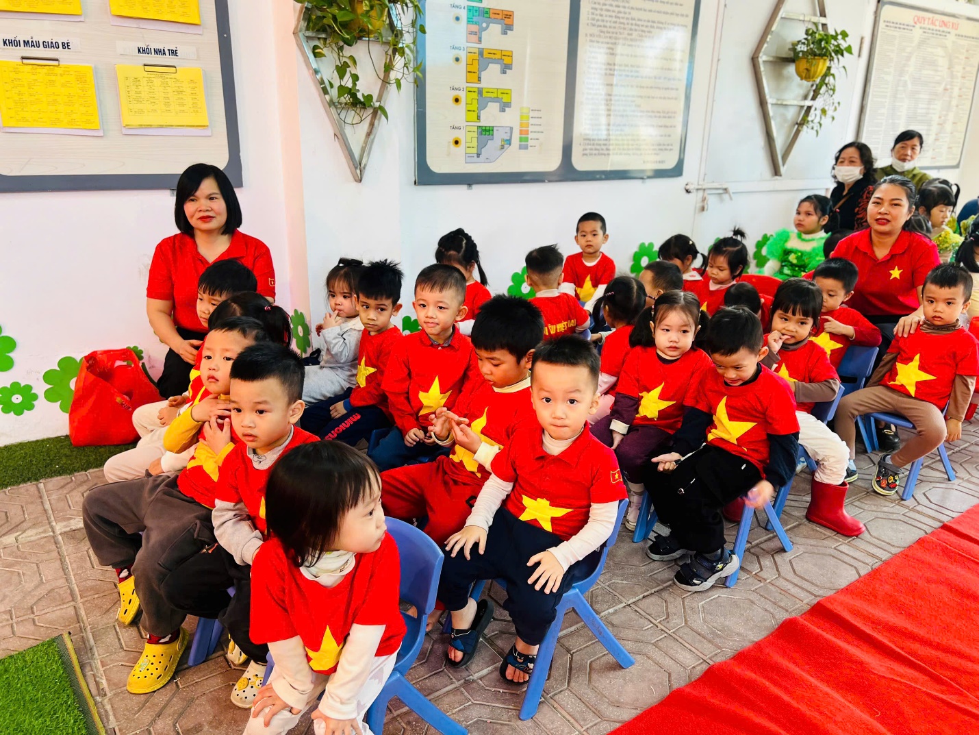 Không khí rộn ràng, xúc động khi mở đầu buổi giao lưu là hai tiết mục văn nghệ đặc sắc do các bé lớp Mẫu giáo Lớn A1 và lớp Mẫu giáo Bé C1 biểu diễn. Những lời ca trong trẻo, những động tác hồn nhiên mà đầy tự hào của các con đã thắp lên không gian chương trình sắc màu tuổi thơ, gửi gắm tình yêu quê hương đất nước theo cách thật giản dị và đáng yêu.