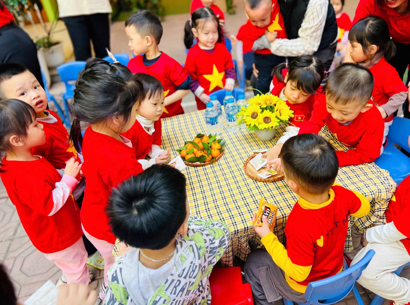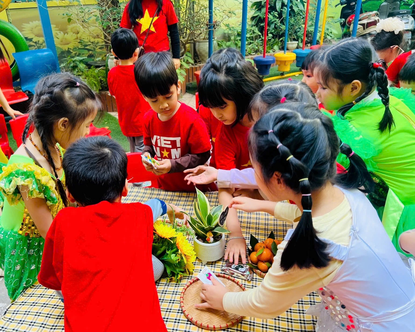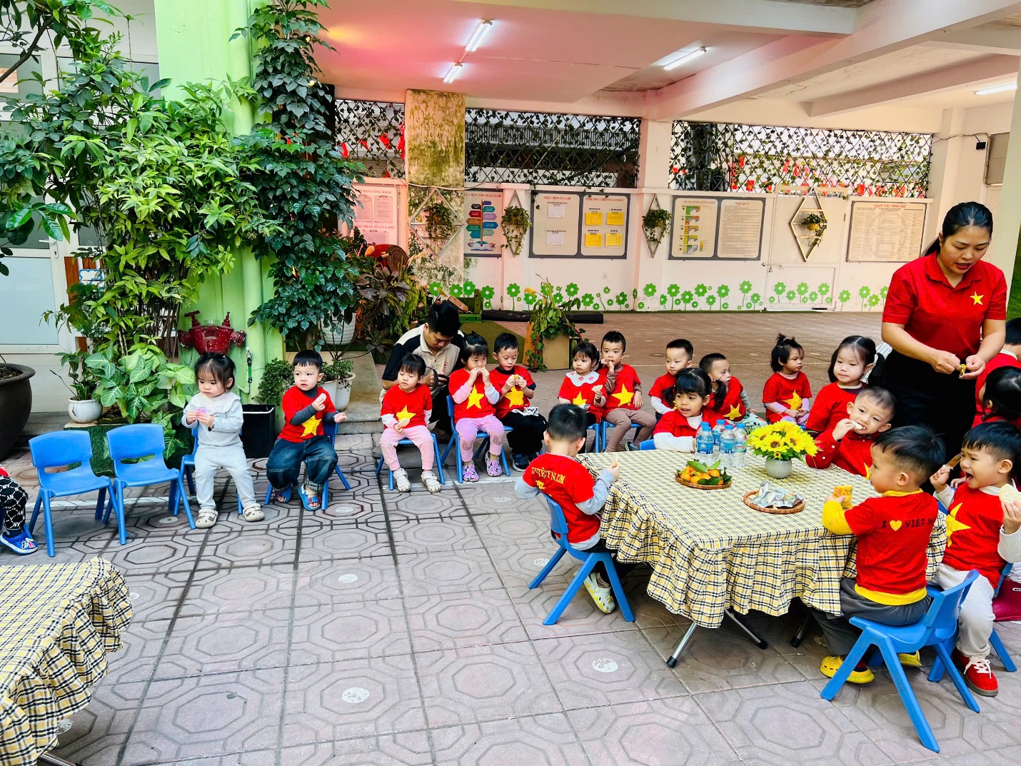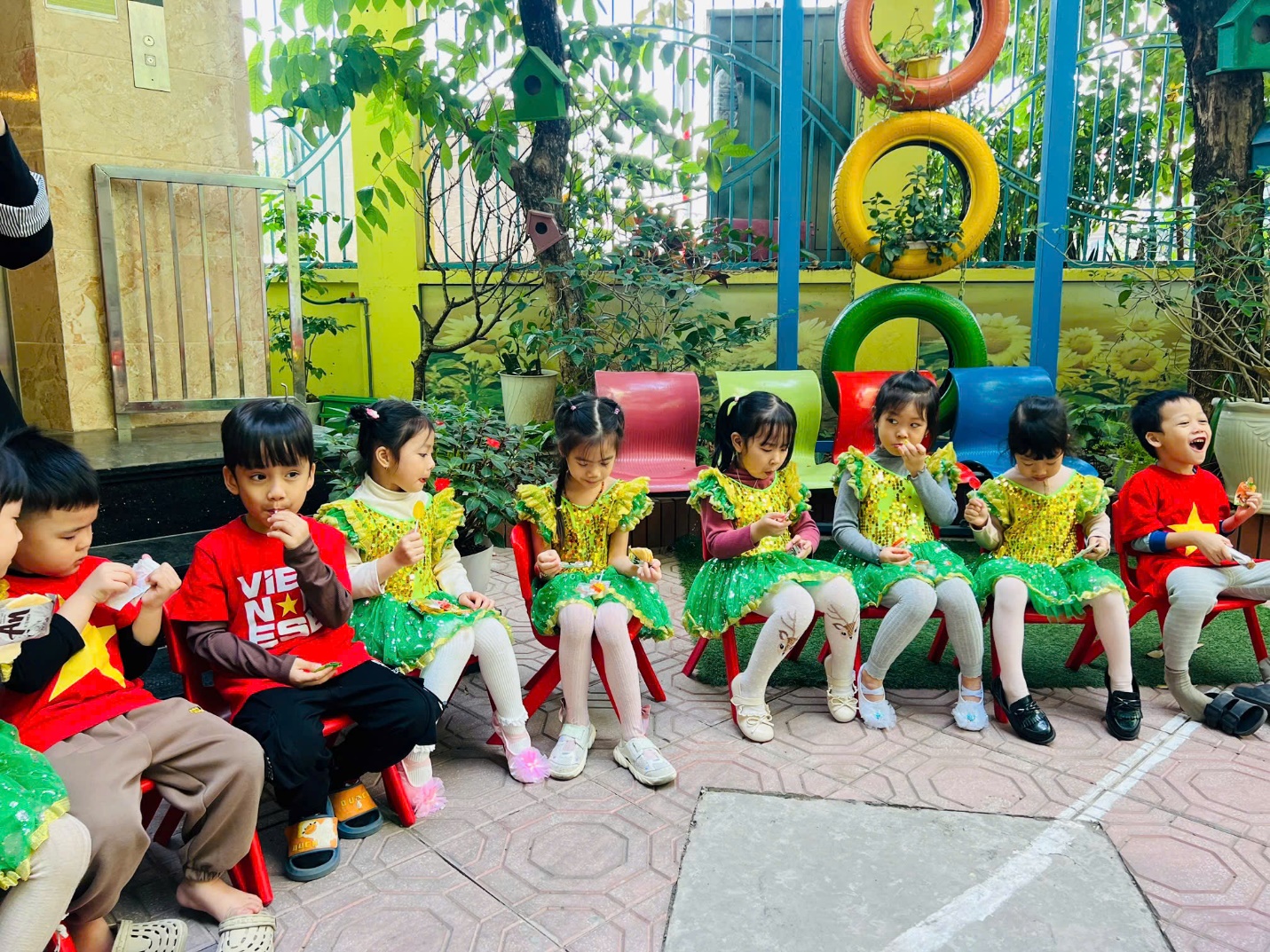 Khép lại chương trình, các con được tham gia buổi liên hoan nhỏ trong không khí vui tươi, ấm áp, tiếng cười giòn tan lan tỏa khắp sân trường. Đó không chỉ là niềm vui sau một buổi học đặc biệt, mà còn là phần thưởng ngọt ngào cho những trải nghiệm ý nghĩa – nơi các con vừa được học, được nghe, được cảm nhận và lưu giữ trong tim những bài học đầu đời về truyền thống, lòng biết ơn và tình yêu Tổ quốc.