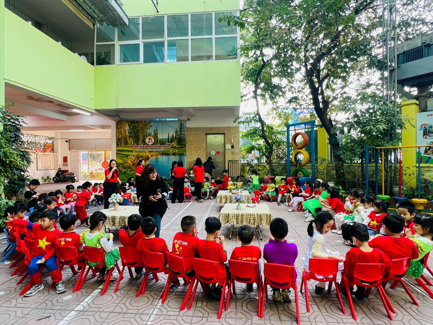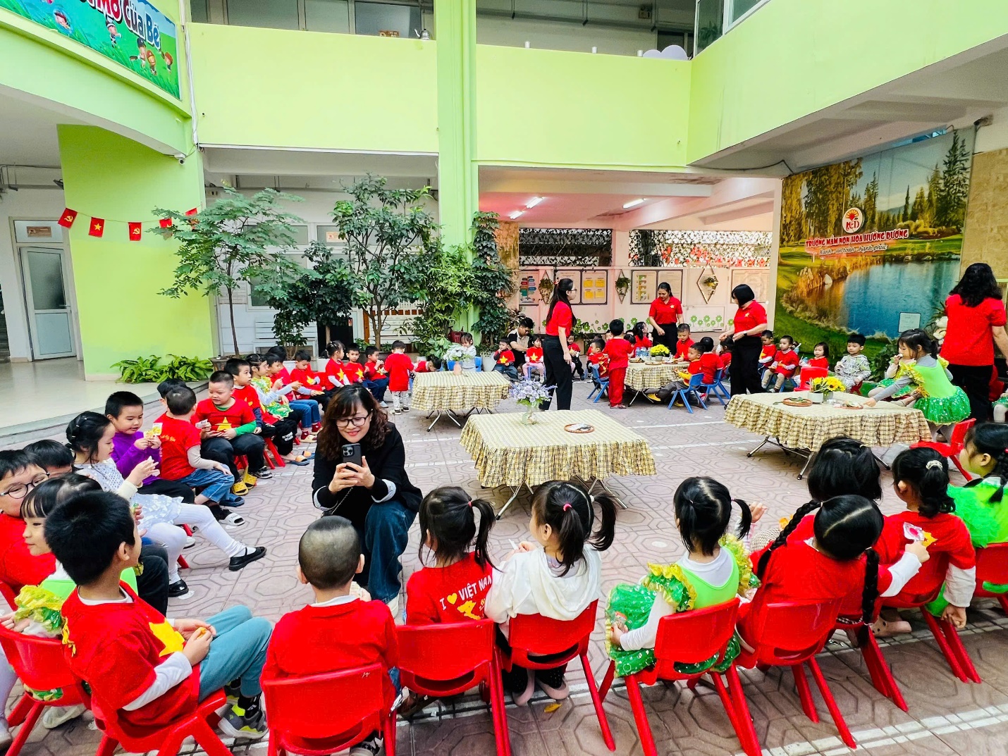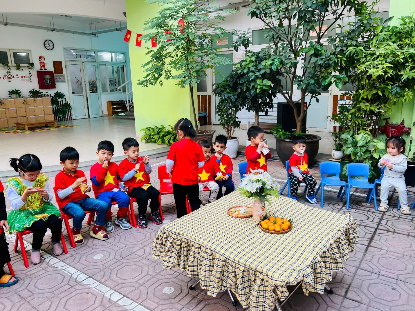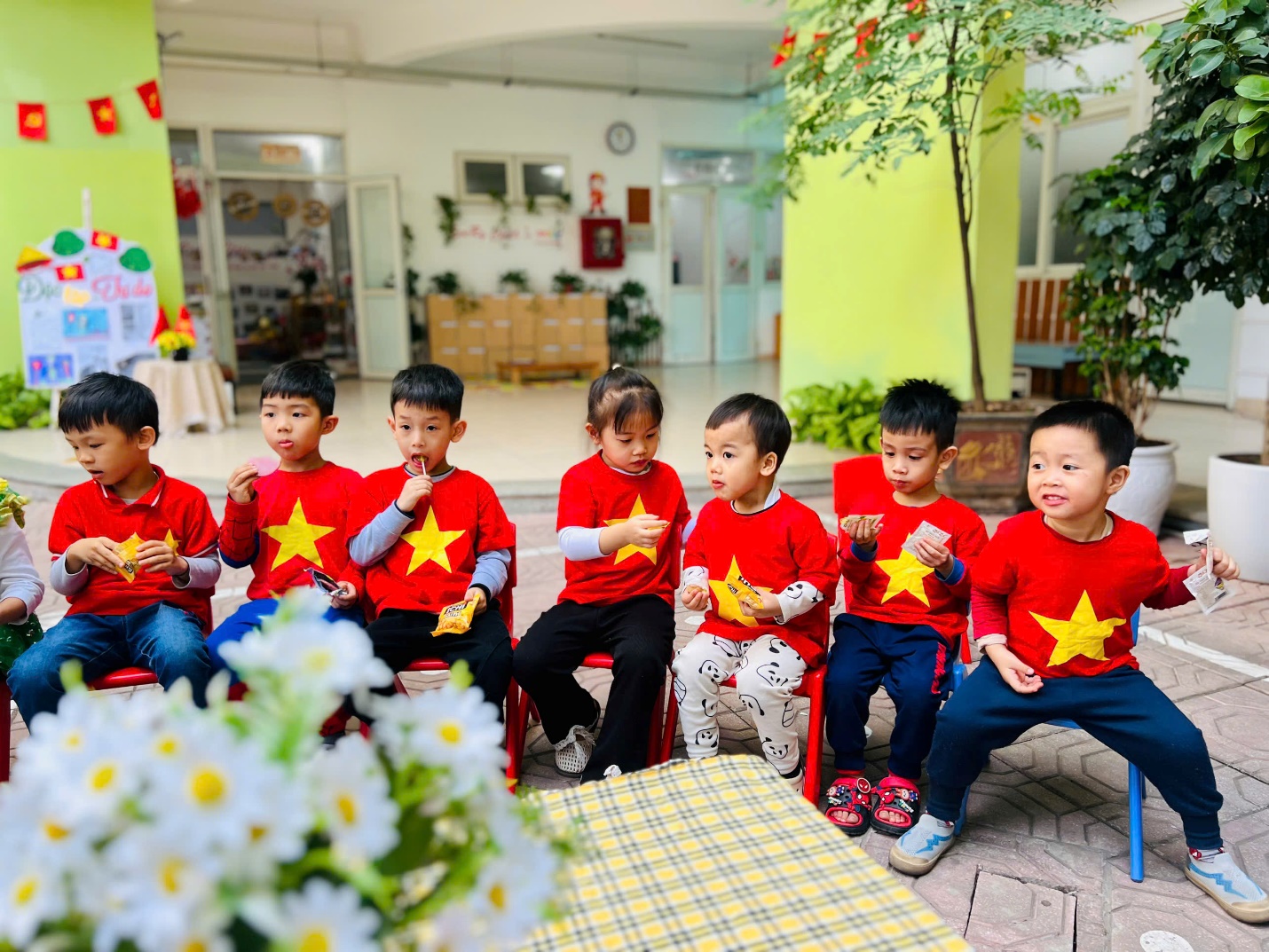 Khép lại chương trình, các con được tham gia buổi liên hoan nhỏ trong không khí vui tươi, ấm áp, tiếng cười giòn tan lan tỏa khắp sân trường. Đó không chỉ là niềm vui sau một buổi học đặc biệt, mà còn là phần thưởng ngọt ngào cho những trải nghiệm ý nghĩa – nơi các con vừa được học, được nghe, được cảm nhận và lưu giữ trong tim những bài học đầu đời về truyền thống, lòng biết ơn và tình yêu Tổ quốc.