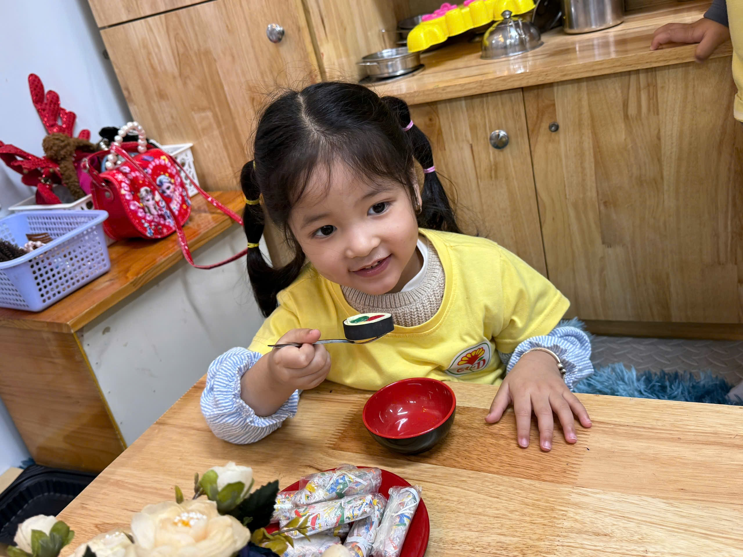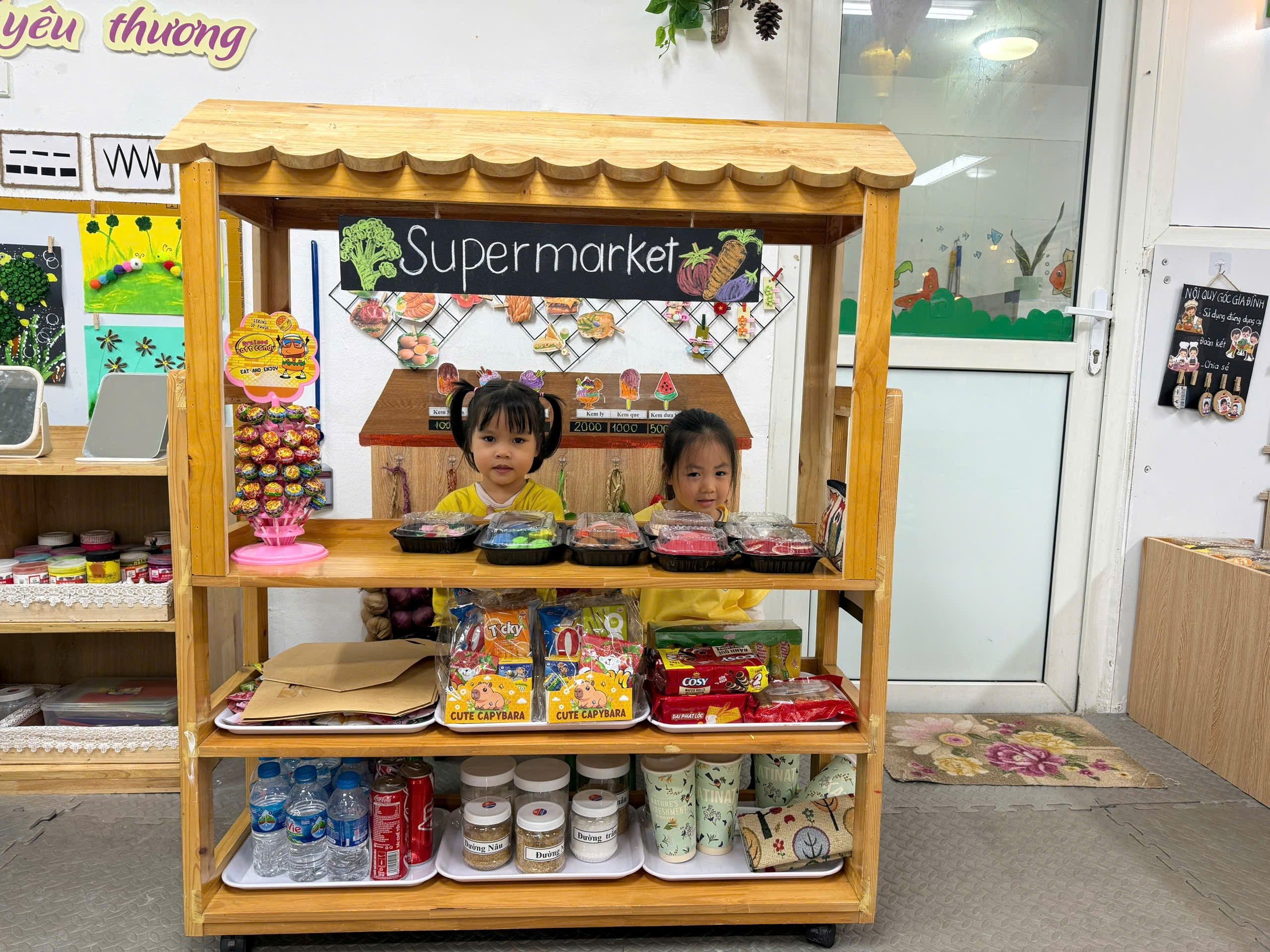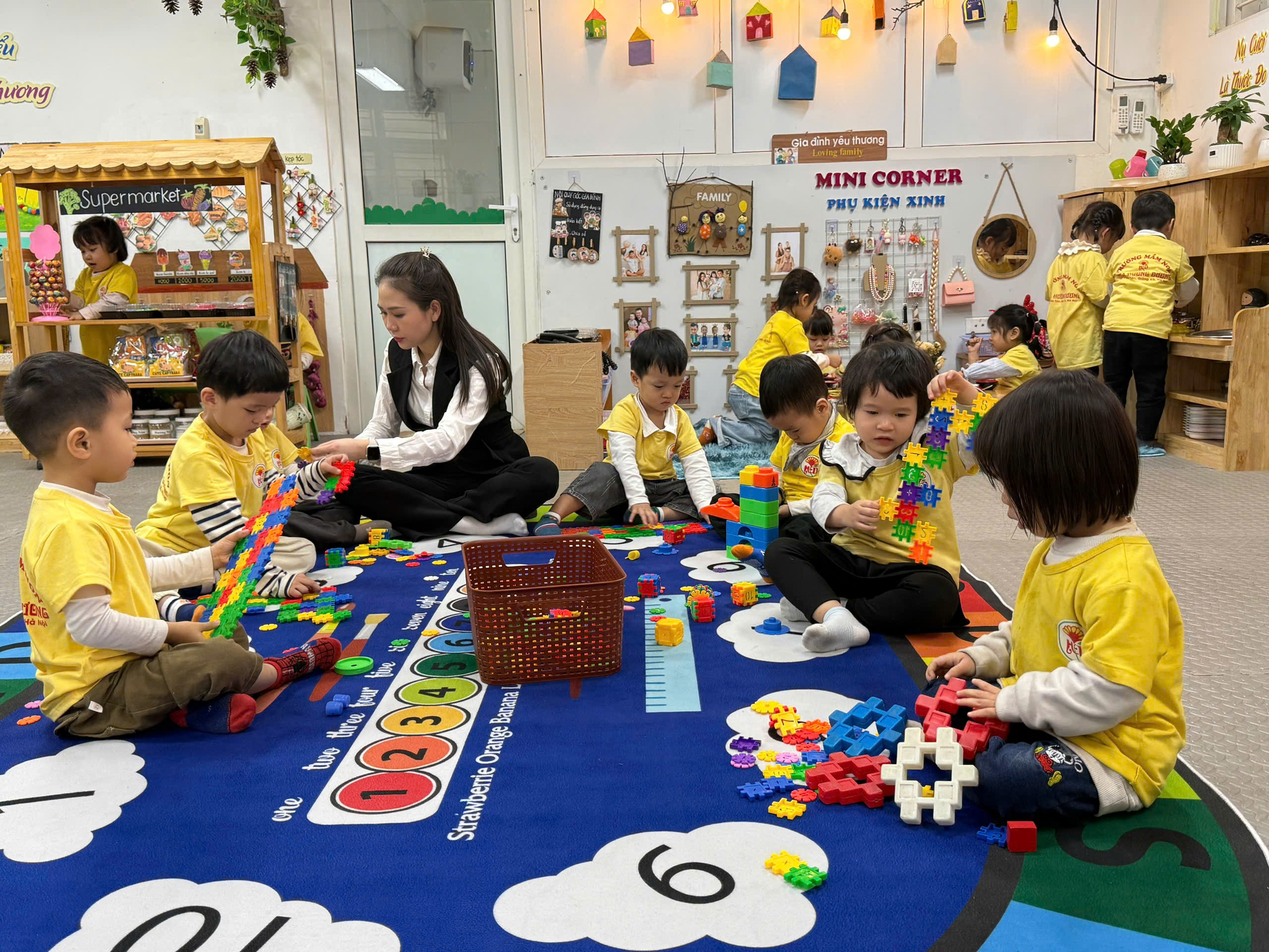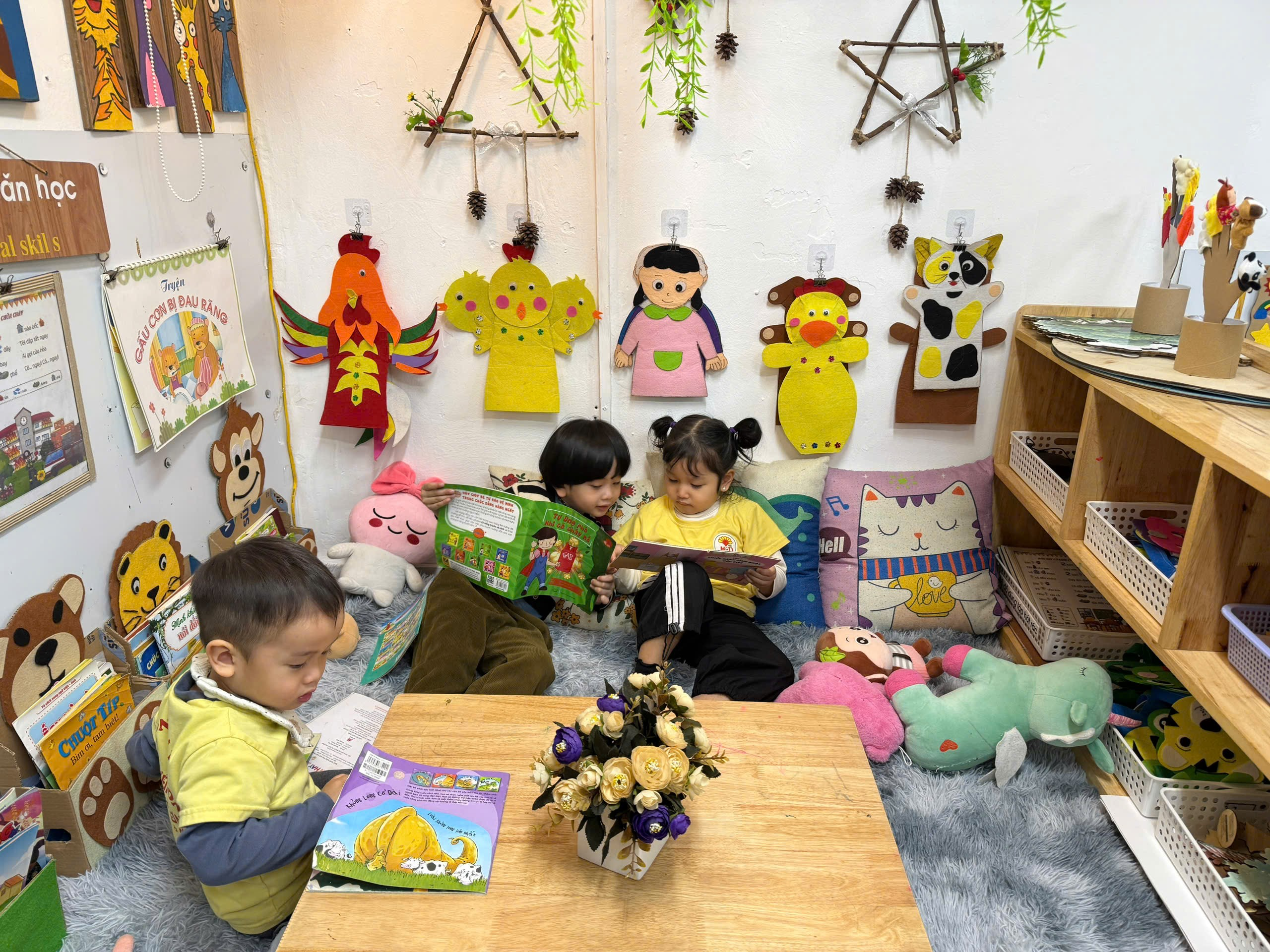 Bước vào lớp học trong giờ hoạt động góc, chúng ta sẽ ngỡ ngàng trước một "Xã hội thu nhỏ" đầy sống động. Bé hóa thân thành những "người bán hàng" vui tính, những "đầu bếp nhí" khéo léo chuẩn bị bữa cơm gia đình. Qua đó, bé học được cách giao tiếp, sẻ chia và quan tâm đến mọi người xung quanh. Với những khối gỗ, những viên gạch nhựa, các con cùng nhau thiết kế nên những công viên, những ngôi nhà mơ ước. Đây là lúc tư duy logic và khả năng làm việc nhóm được hình thành một cách tự nhiên nhất.Những bàn tay nhỏ xíu lấm lem màu nước nhưng ánh mắt lại lấp lánh niềm vui. Mỗi nét vẽ ngệch ngoạc, mỗi hình dán lệch lạc đều là một tác phẩm nghệ thuật chứa đựng trí tưởng tượng không giới hạn của bé.Góc sách là nơi các con rèn luyện sự tĩnh lặng, tập trung qua việc "đọc" sách theo tranh.