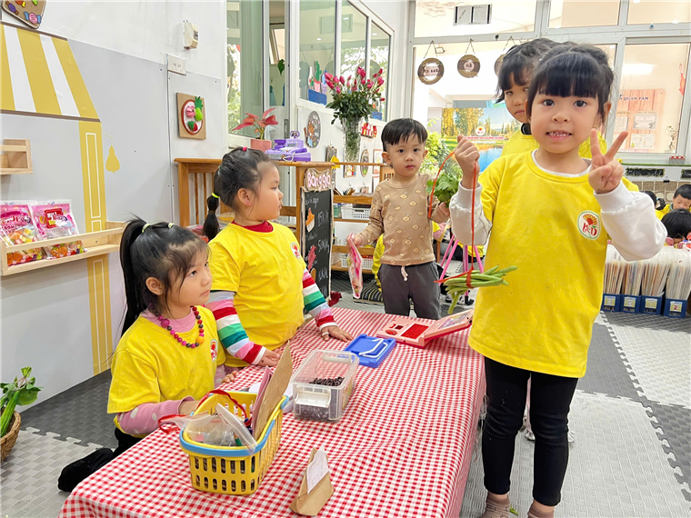 Nhờ hoạt động góc, các bé được tham gia vào xã hội người lớn theo cách riêng của mình, chúng sẽ tưởng tượng mình là người lớn và cũng đóng một cương vị xã hội như : cô bán hàng, , kĩ sư xây dựng, đóng vai làm một gia đình có bố, mẹ con…Với vai trò đó, các bạn nhỏ đã tái tạo lại cuộc sống của người lớn một cách tổng quát để nhập vai chơi nhằm hình thành thói quen, kỹ năng trong cuộc sống sau này của trẻ. Dưới đây là 1 số hình ảnh của các bé lớp mẫu giáo lớn A1 tham gia hoạt động góc