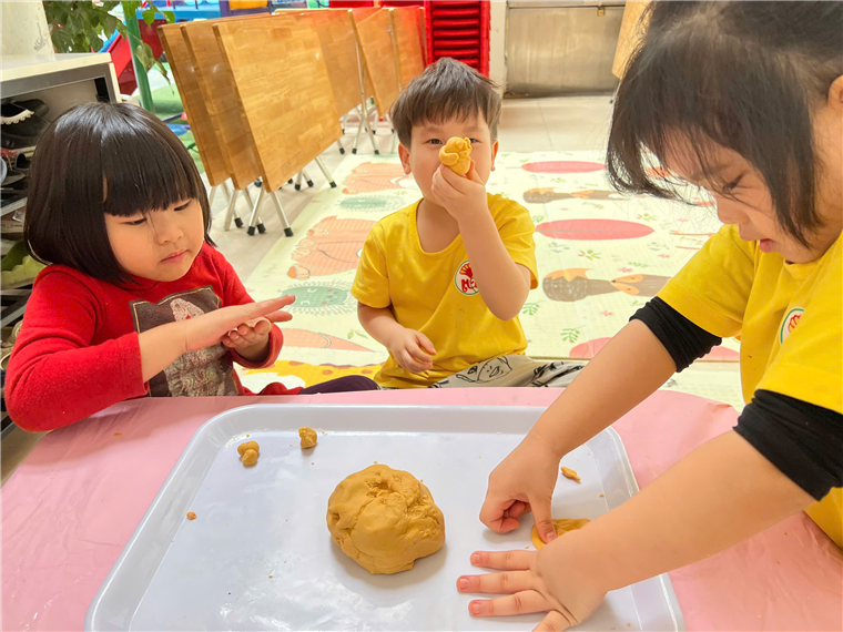 Góc tạo hình chúng tớ được làm đắt nặn và tạo màu cho đất nặn từ màu cà rốt, vẽ và in hoa từ củ quả…
