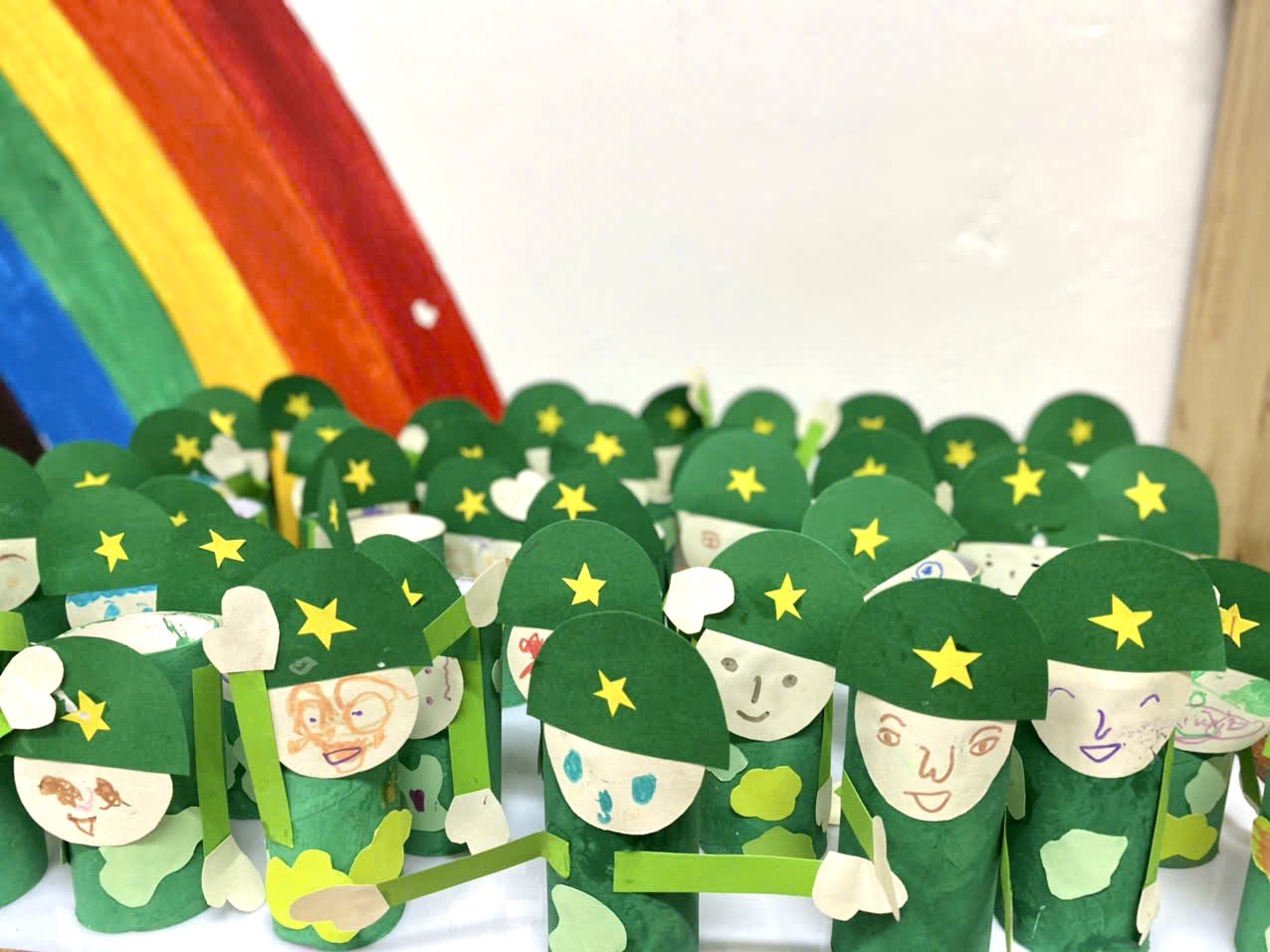 Nhằm tạo cơ hội để trẻ bày tỏ niềm tự hào, sự quý trọng dành cho các chú bộ đội. Với màu áo xanh thân thương từ nguyên liệu tự nhiên các bé tự tay tạo hình chú bộ đội như một món quà thân thương gửi đến các chú nhân ngày 22/12.