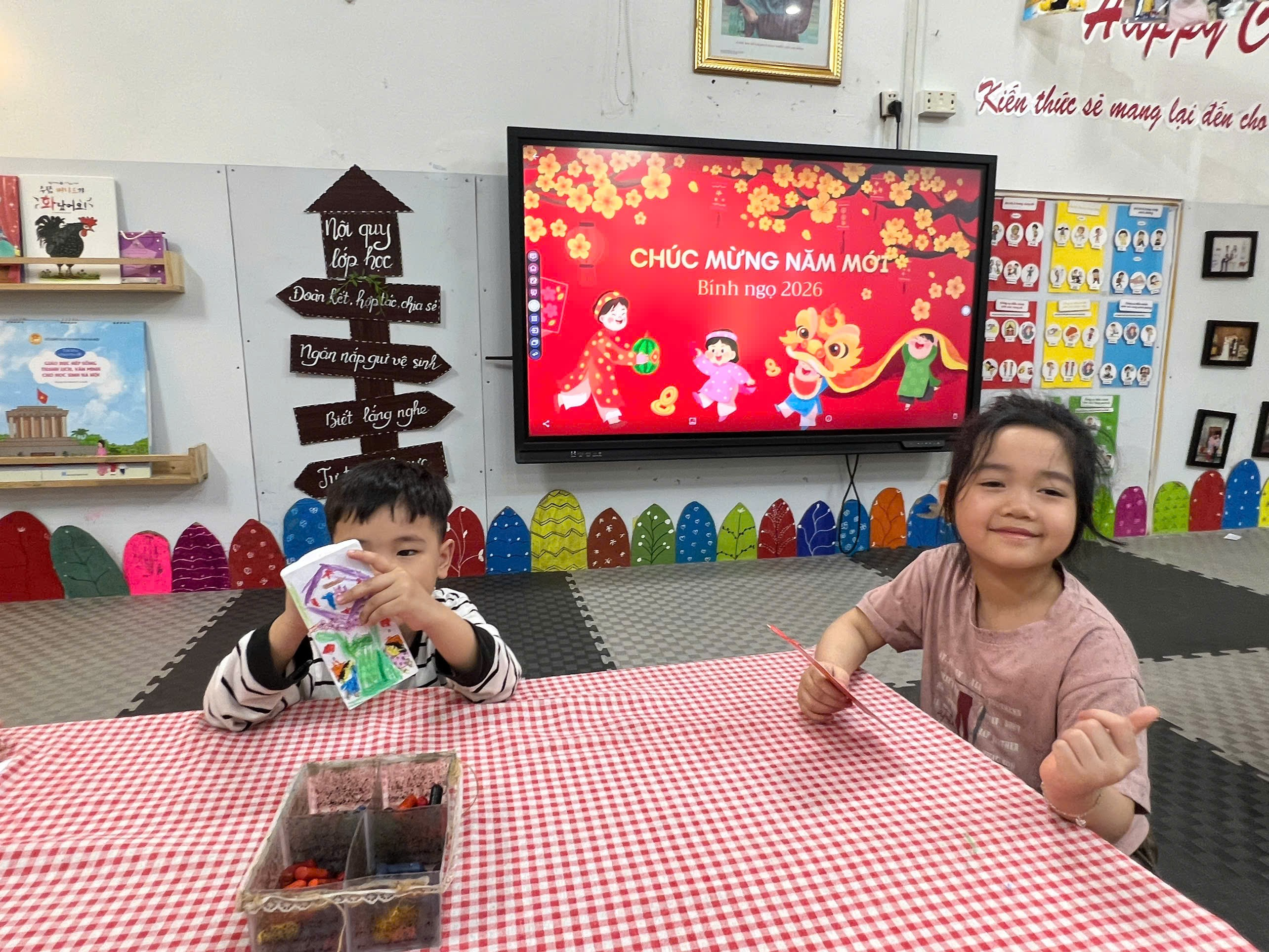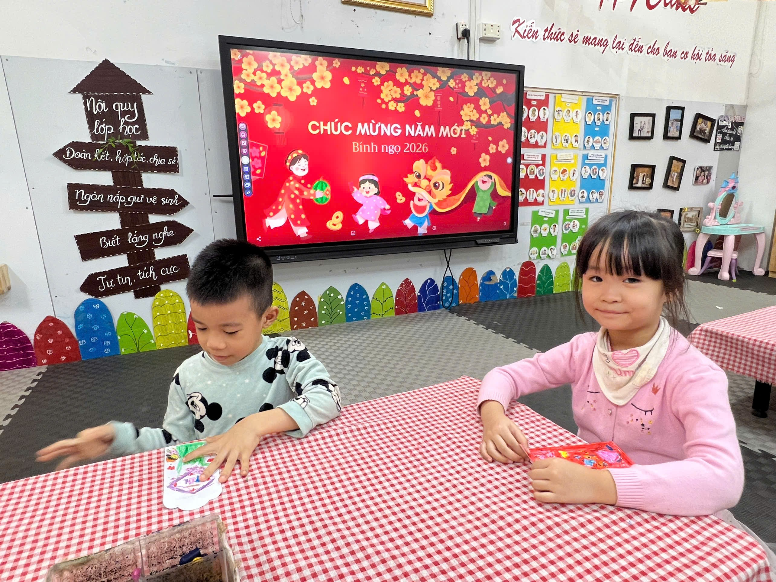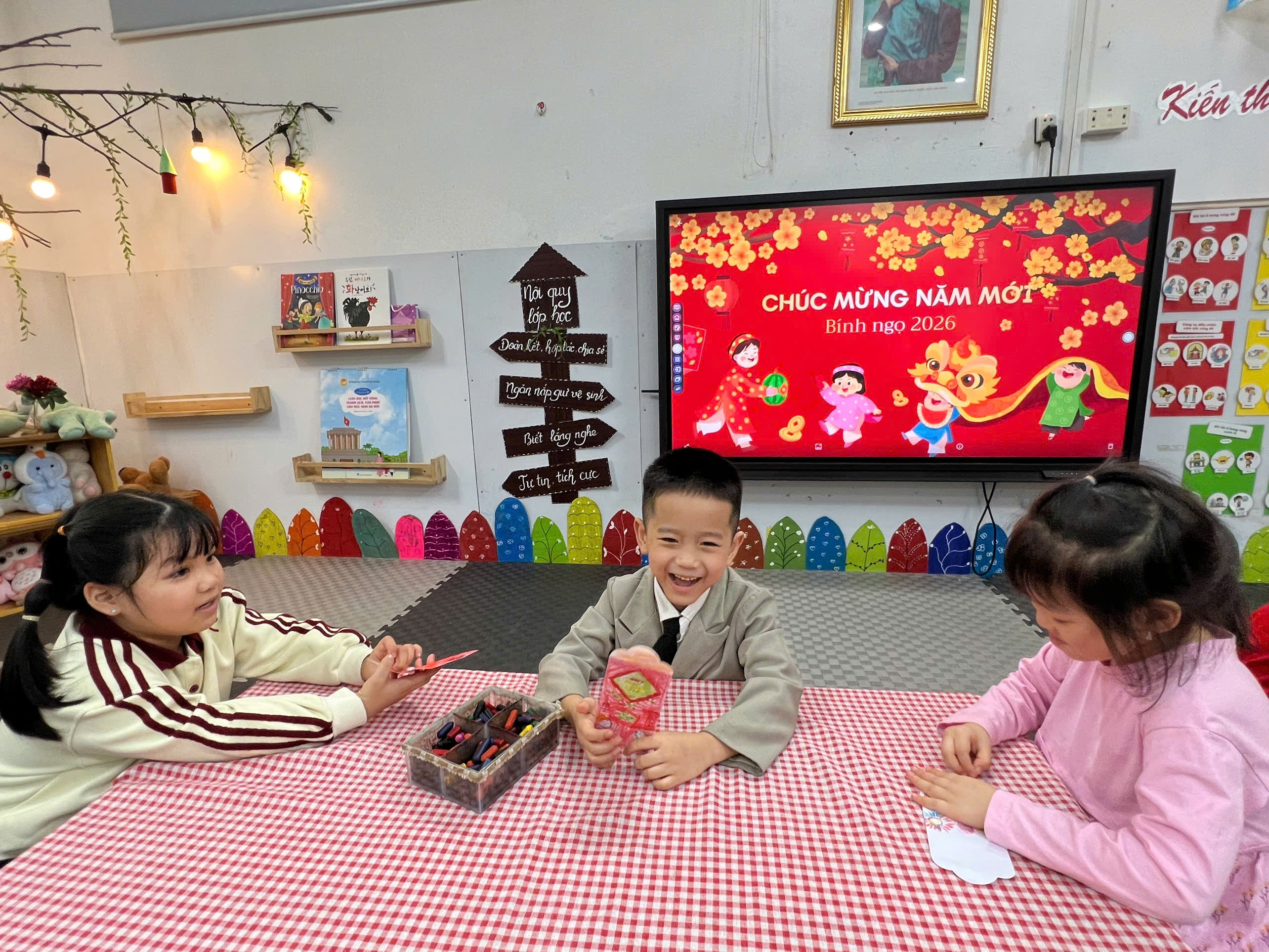 Các con không chỉ rèn luyện sự khéo léo của đôi tay mà còn hiểu thêm ý nghĩa tốt đẹp của phong tục lì xì ngày Tết. Những chiếc bao lì xì do chính tay mình trang trí sẽ trở thành món quà nhỏ đầy yêu thương gửi tặng ông bà, bố mẹ.Hoạt động trải nghiệm đã mang đến cho các bé lớp A1 niềm vui, sự tự tin và cảm nhận trọn vẹn không khí Tết cổ truyền đang đến gần. Sau đây xin mời bố mẹ cùng ngắm những hình ảnh đáng yêu của các con: