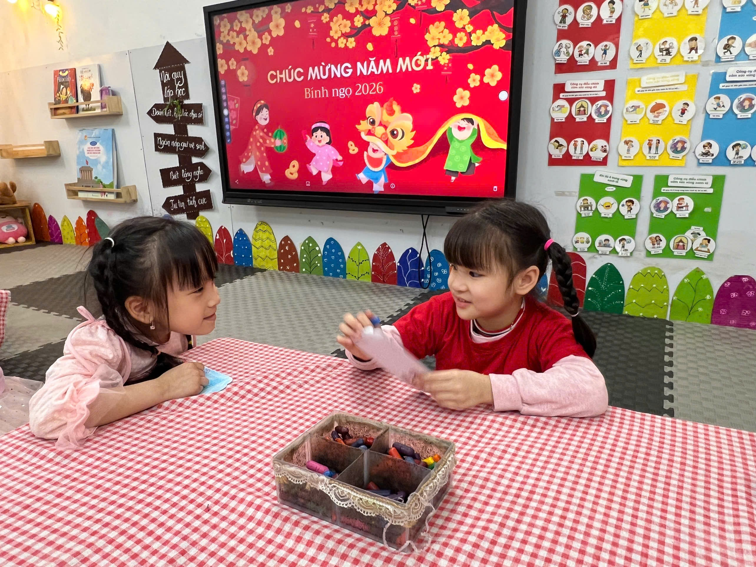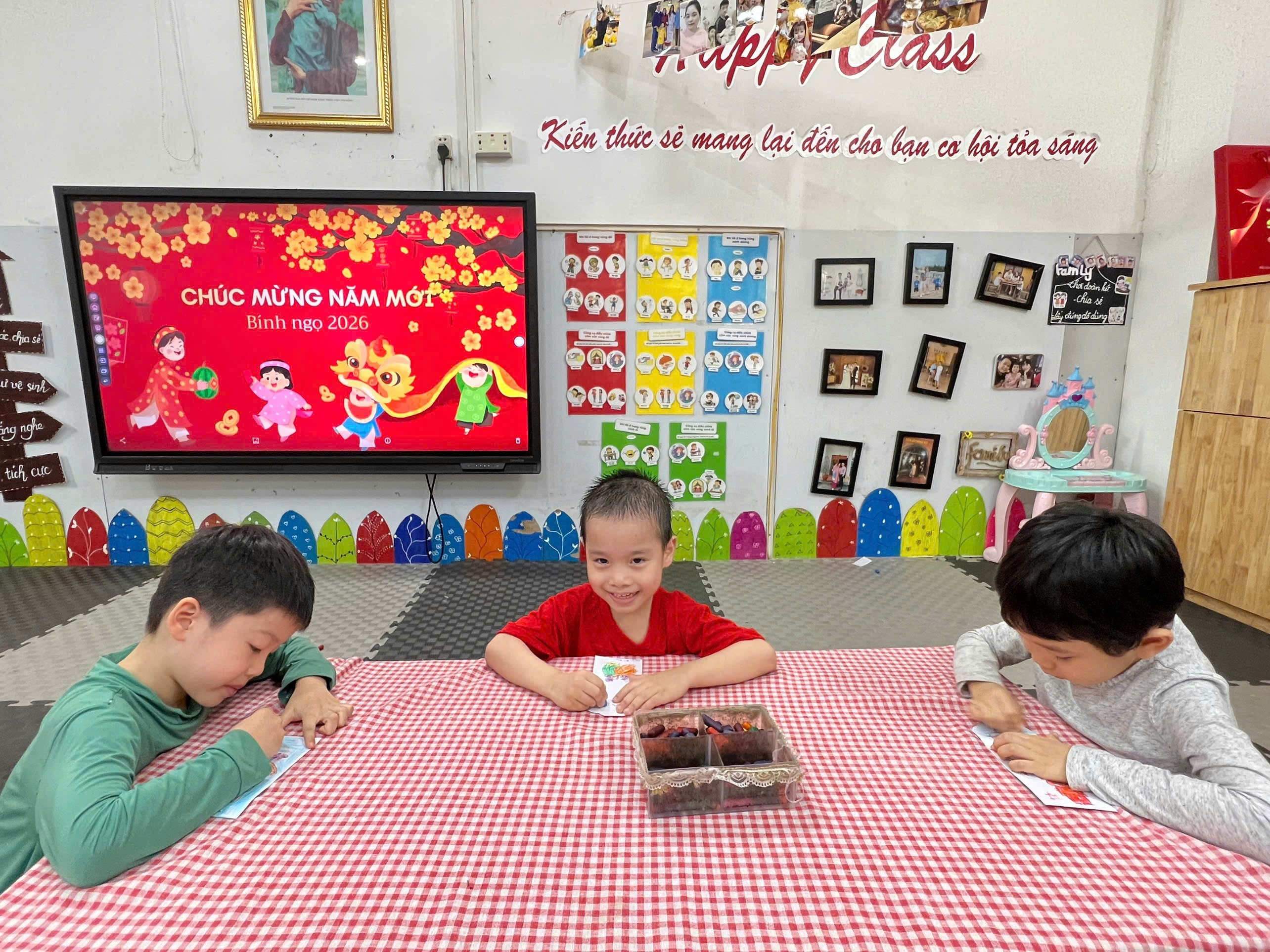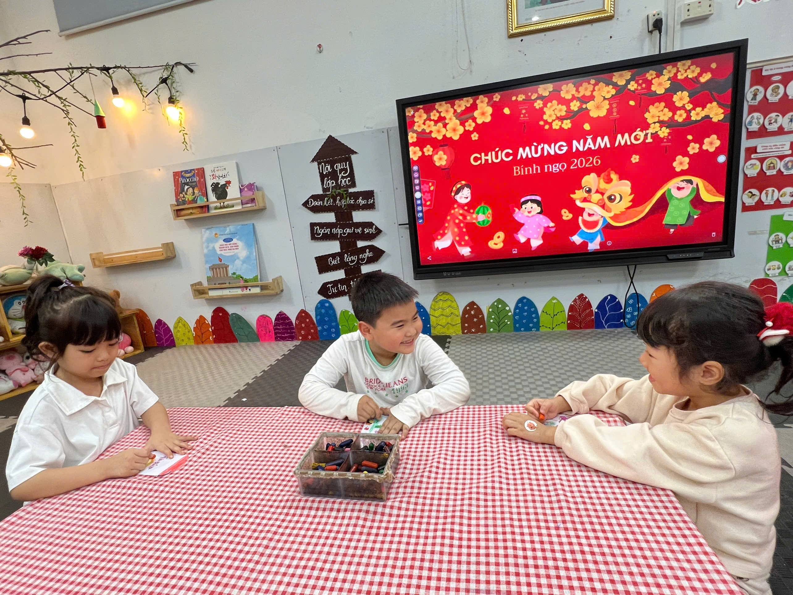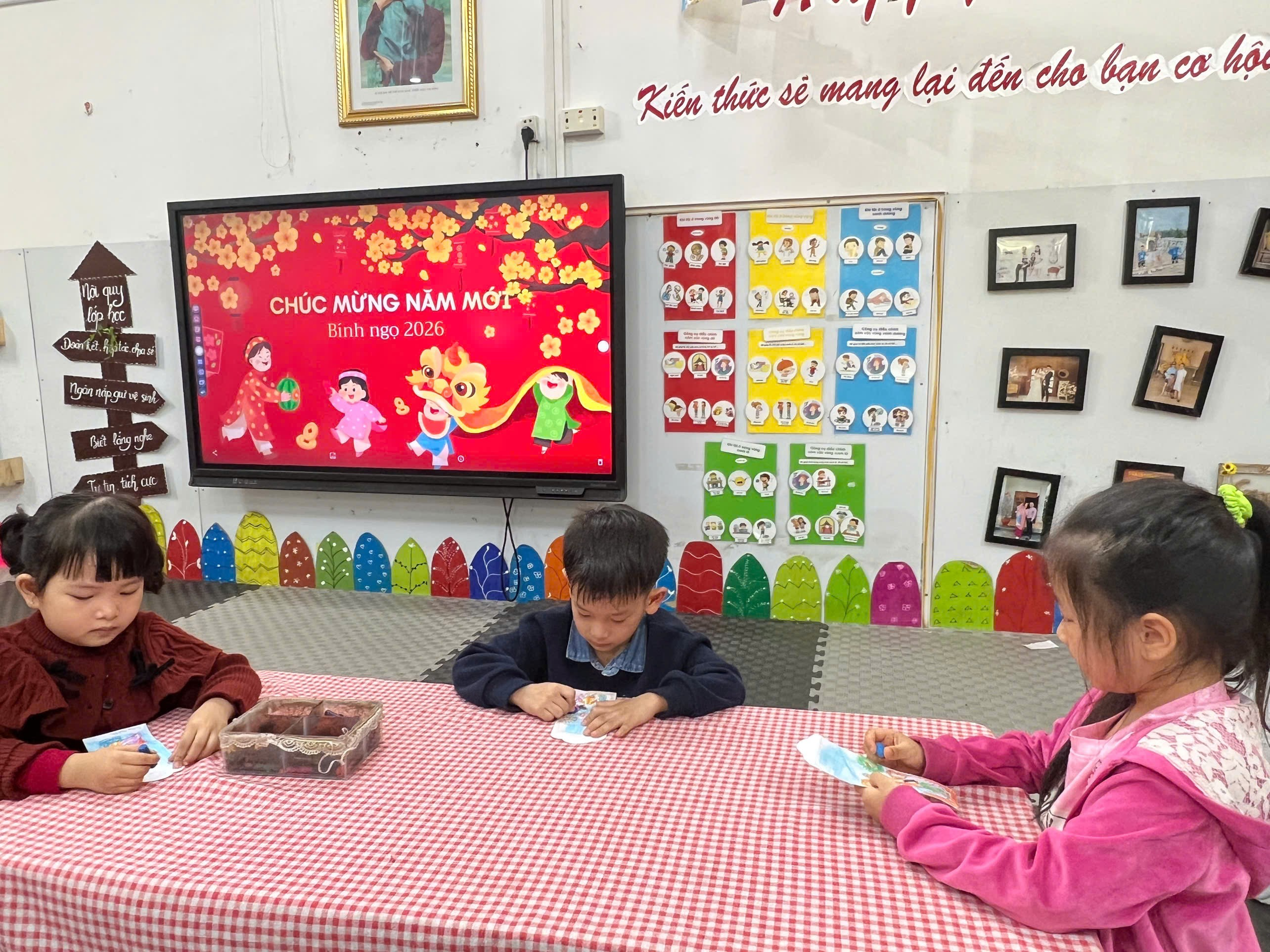 Các con không chỉ rèn luyện sự khéo léo của đôi tay mà còn hiểu thêm ý nghĩa tốt đẹp của phong tục lì xì ngày Tết. Những chiếc bao lì xì do chính tay mình trang trí sẽ trở thành món quà nhỏ đầy yêu thương gửi tặng ông bà, bố mẹ.Hoạt động trải nghiệm đã mang đến cho các bé lớp A1 niềm vui, sự tự tin và cảm nhận trọn vẹn không khí Tết cổ truyền đang đến gần. Sau đây xin mời bố mẹ cùng ngắm những hình ảnh đáng yêu của các con: