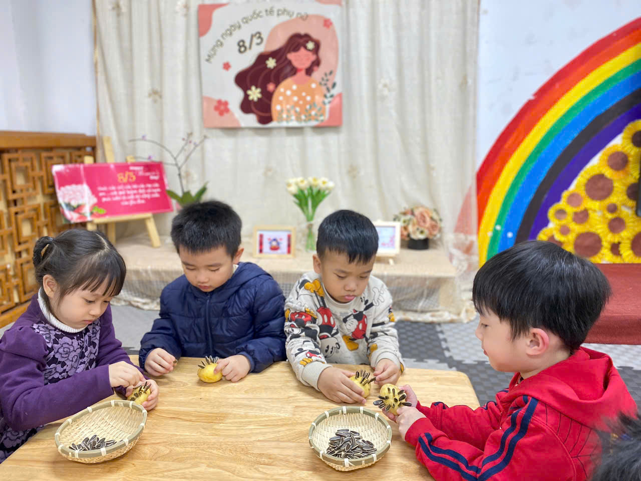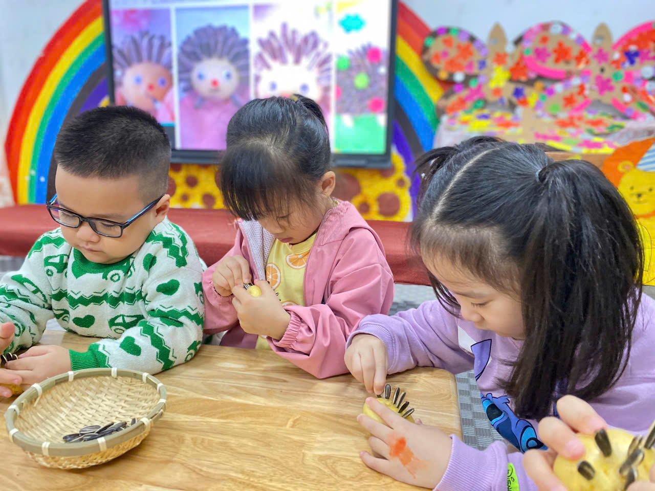 Sáng tạo với hoạt động tạo hình "Con Nhím từ củ khoai tây và hạt hướng dương" của các bé lớp Mẫu giáo nhỡ B3
