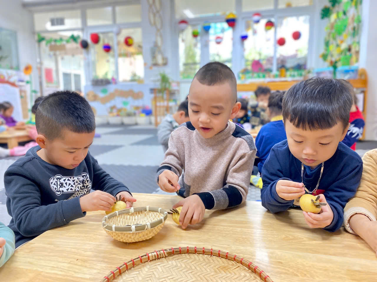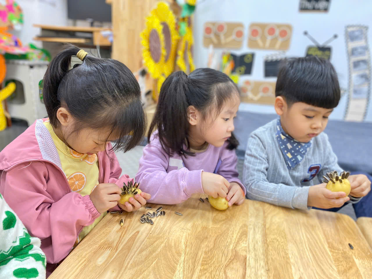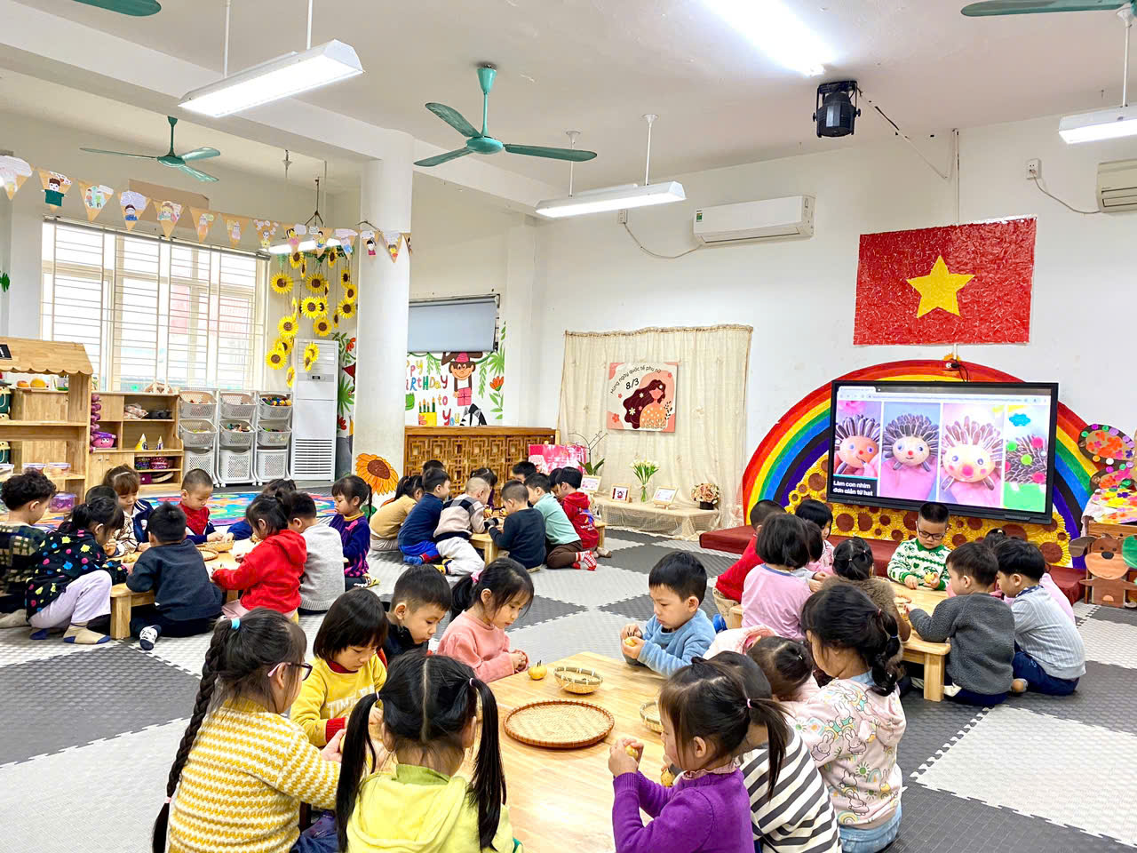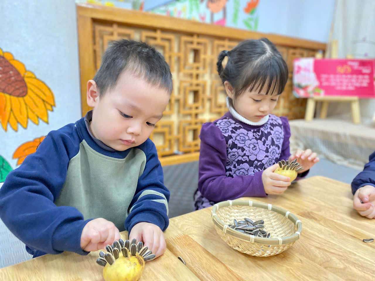 Tiếng cười rộn rã vang khắp lớp Mẫu giáo nhỡ B3 khi những chú nhím khoai tây dần xuất hiện. Các bé say sưa gắn từng chiếc gai hướng dương, tỉ mỉ vẽ mắt mũi cho "người bạn" của mình. Niềm vui và sự sáng tạo của các bé đã tạo nên một buổi học thật đặc biệt!"