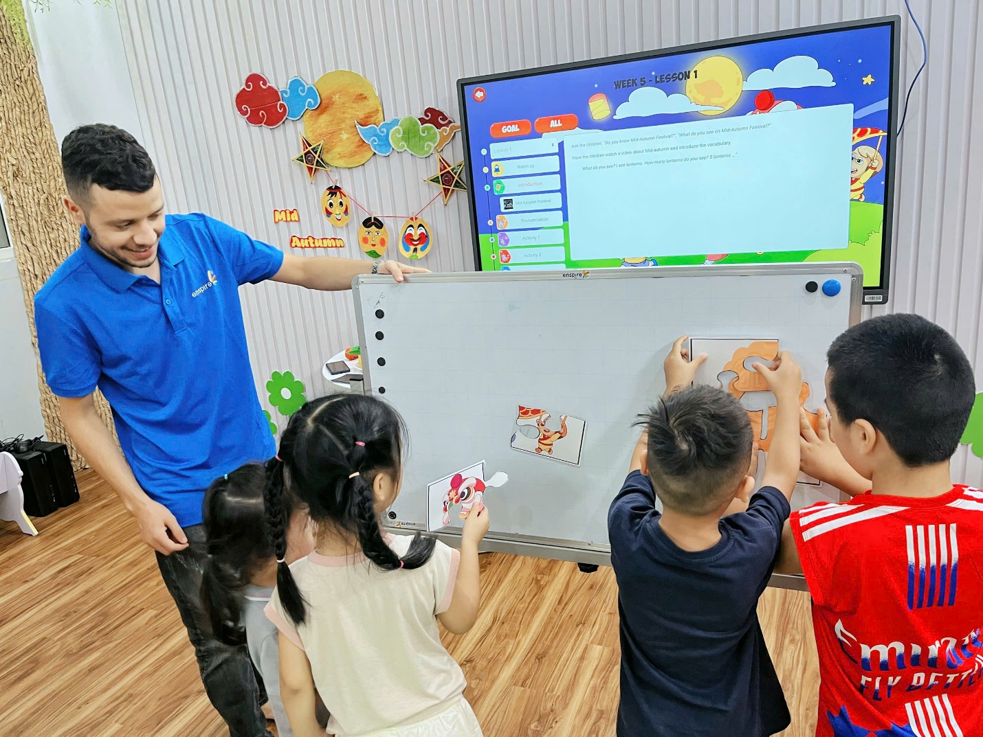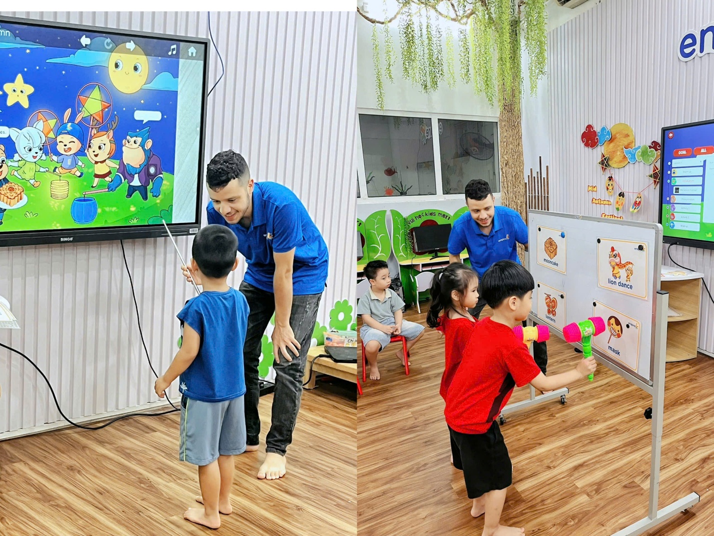 ✨ Thông qua các trò chơi tương tác, bài hát sôi động và hoạt động nhóm thú vị, các con không chỉ ghi nhớ từ vựng dễ dàng mà còn rèn luyện kỹ năng phản xạ, tự tin thể hiện khả năng ngoại ngữ của bản thân.