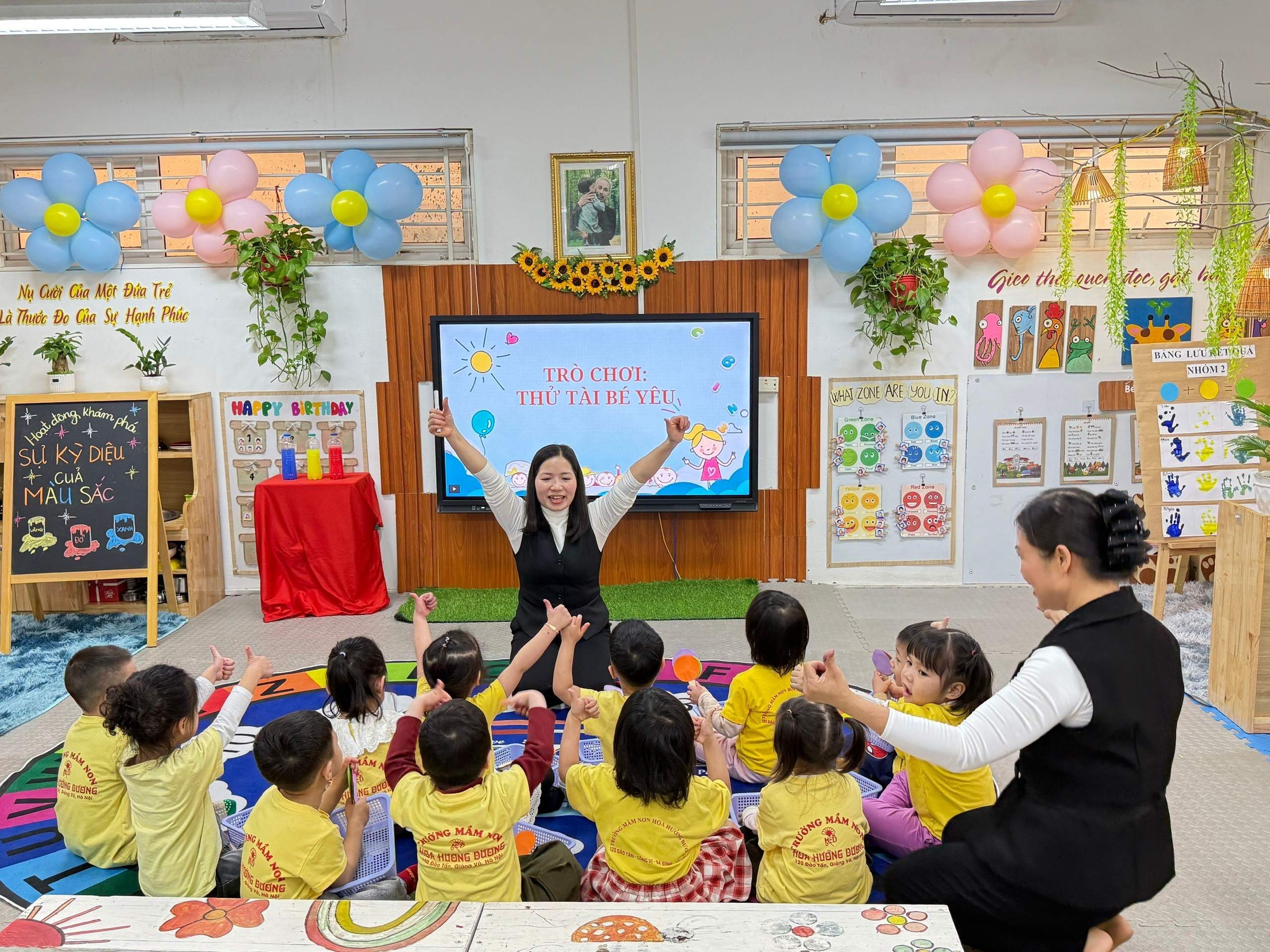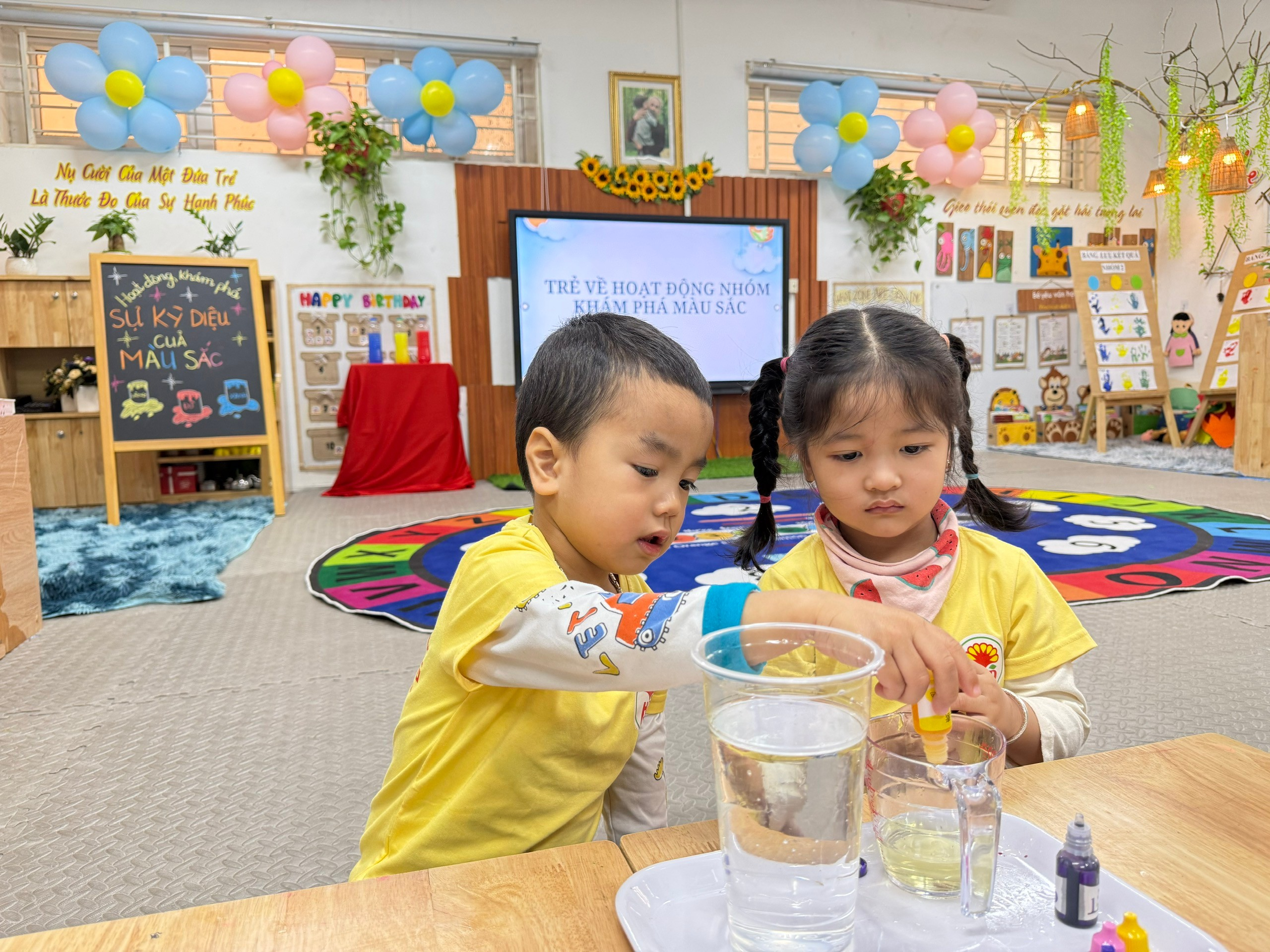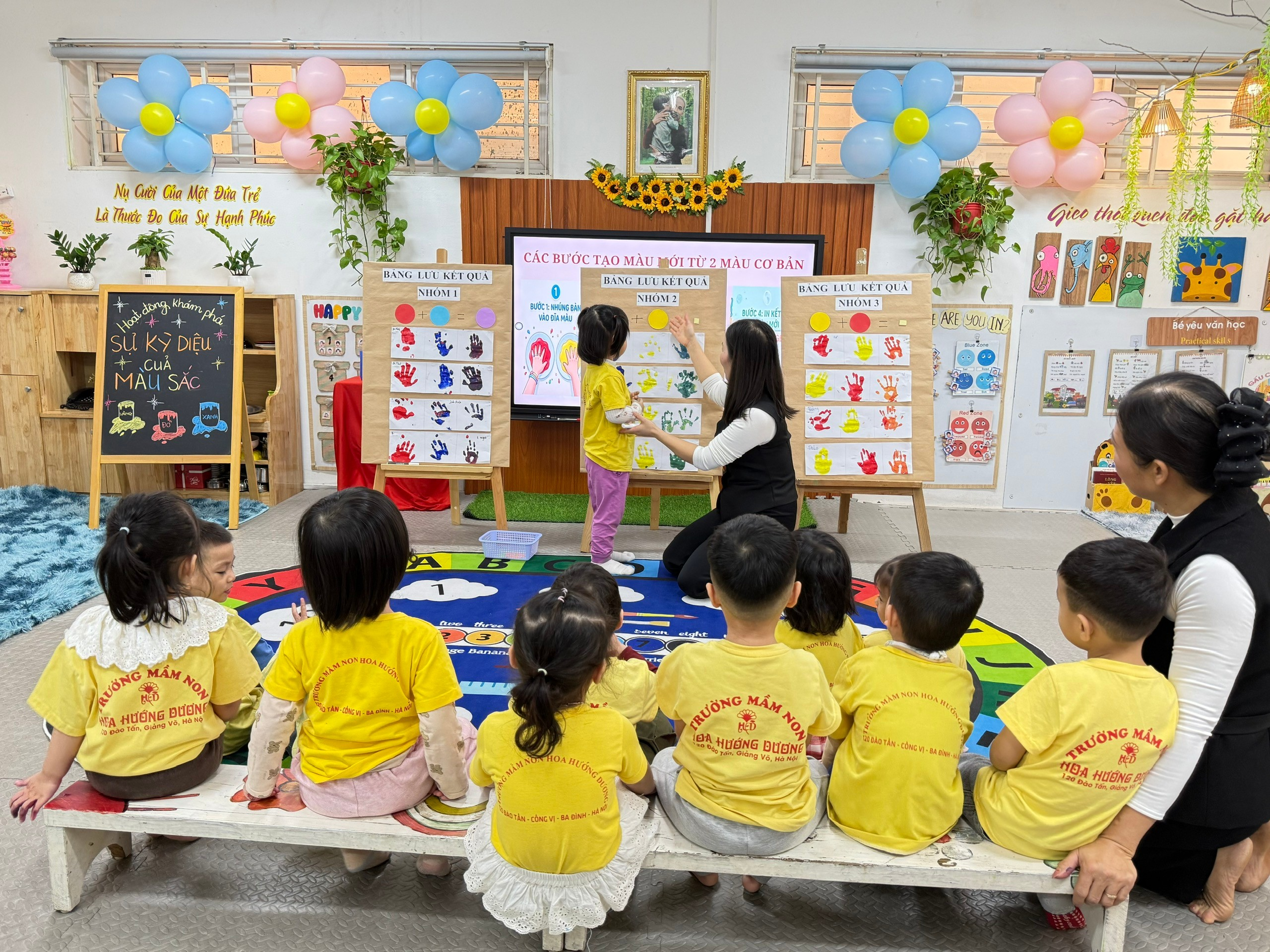 Hoạt động hội giảng diễn ra trong không khí vui tươi, sôi nổi với nhiều tiếng cười và sự hào hứng của các bé. Hoạt động không chỉ giúp trẻ mở rộng hiểu biết về màu sắc mà còn khơi dậy niềm say mê khám phá khoa học ngay từ những năm đầu đời.