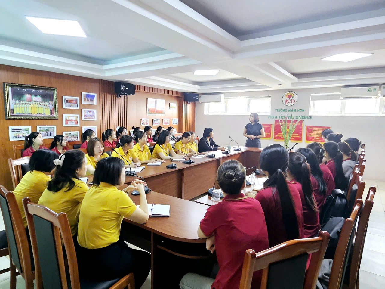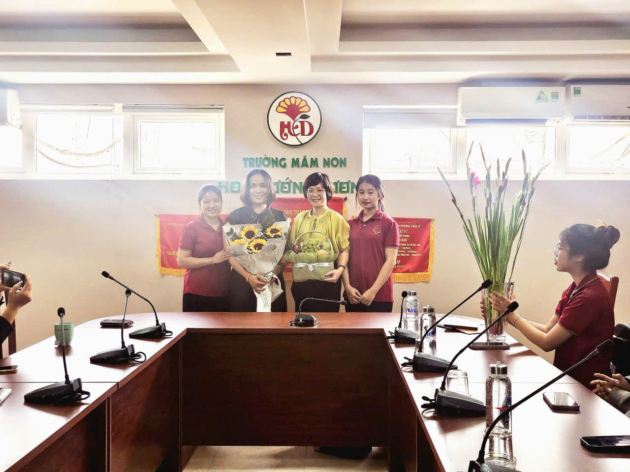 Tại buổi gặp mặt đại diện trường Mầm non Hoa Hướng Dương - Nhà giáo Nguyễn Huỳnh Thu Cúc - Bí thư chi bộ - Hiệu trưởng đã giới thiệu đặc điểm tình hình nhà trường, các hoạt động chuyên môn đáp ứng với nhu cầu thực hành thực tập của các em sinh viên, đồng thời mong muốn các bạn sinh viên sẽ tích luỹ kinh nghiệm, trau dồi chuyên môn và đạt kết quả cao trong đợt thực tập này đồng thời cũng truyền cho các bạn niềm đam mê với nghề trước khi bước vào đợt thực tập.