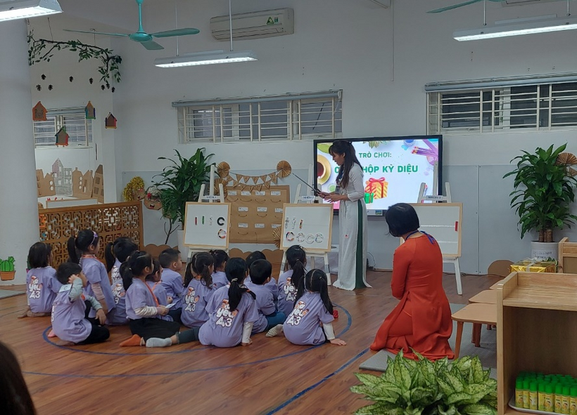 Cô giáo Hà Kim Chi trong giờ HĐLQCV: Trò chơi chữ cái i, t, c