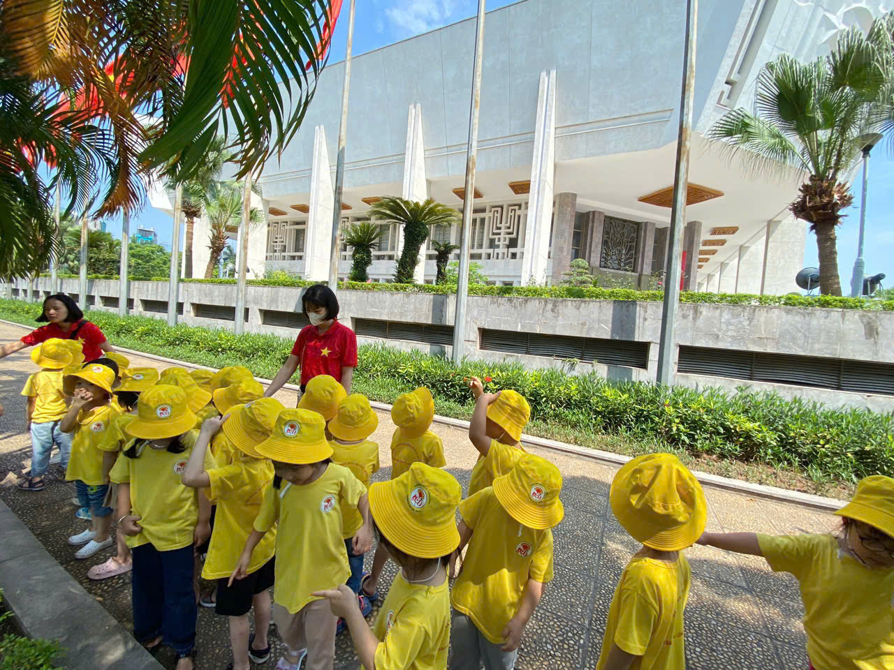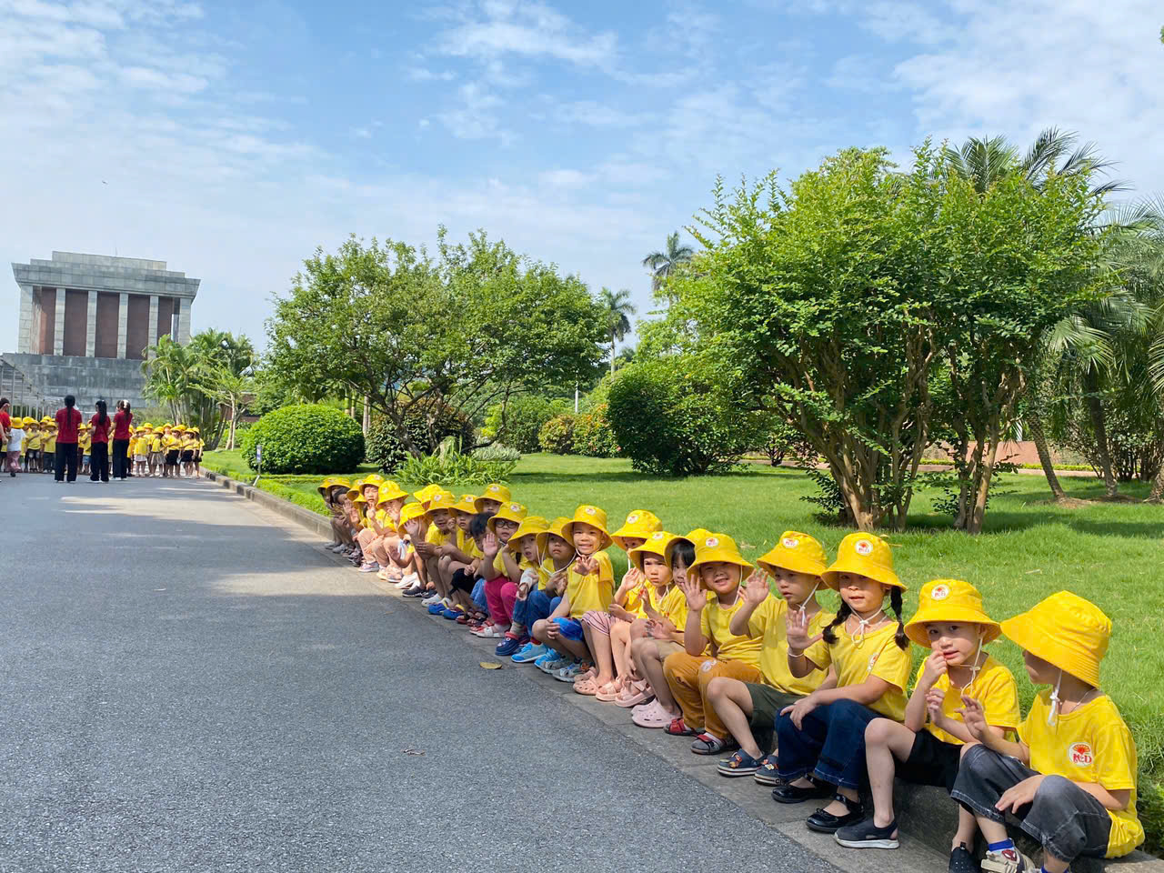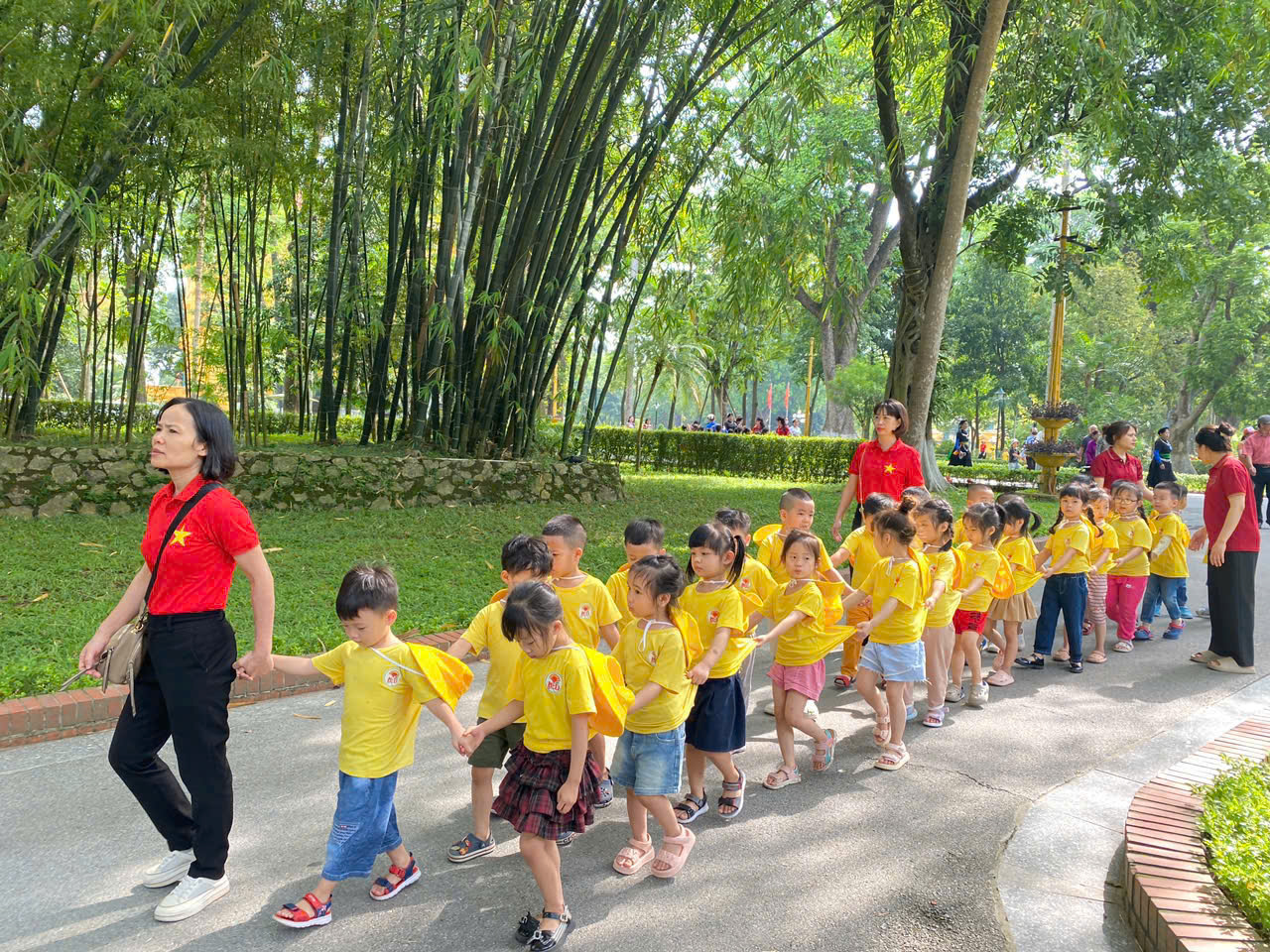 Hôm nay, các bạn nhỏ mầm non háo hức khoác ba lô nhỏ xinh, tay nắm tay nhau về thăm Lăng Bác, ao cá, và ngôi nhà sàn giản dị của Người.