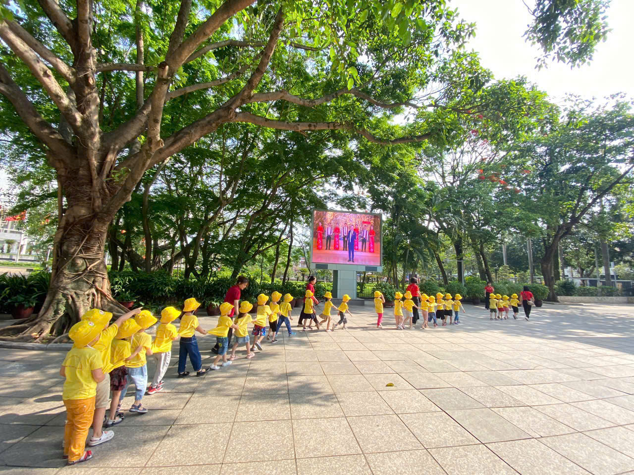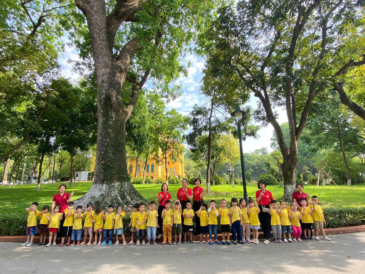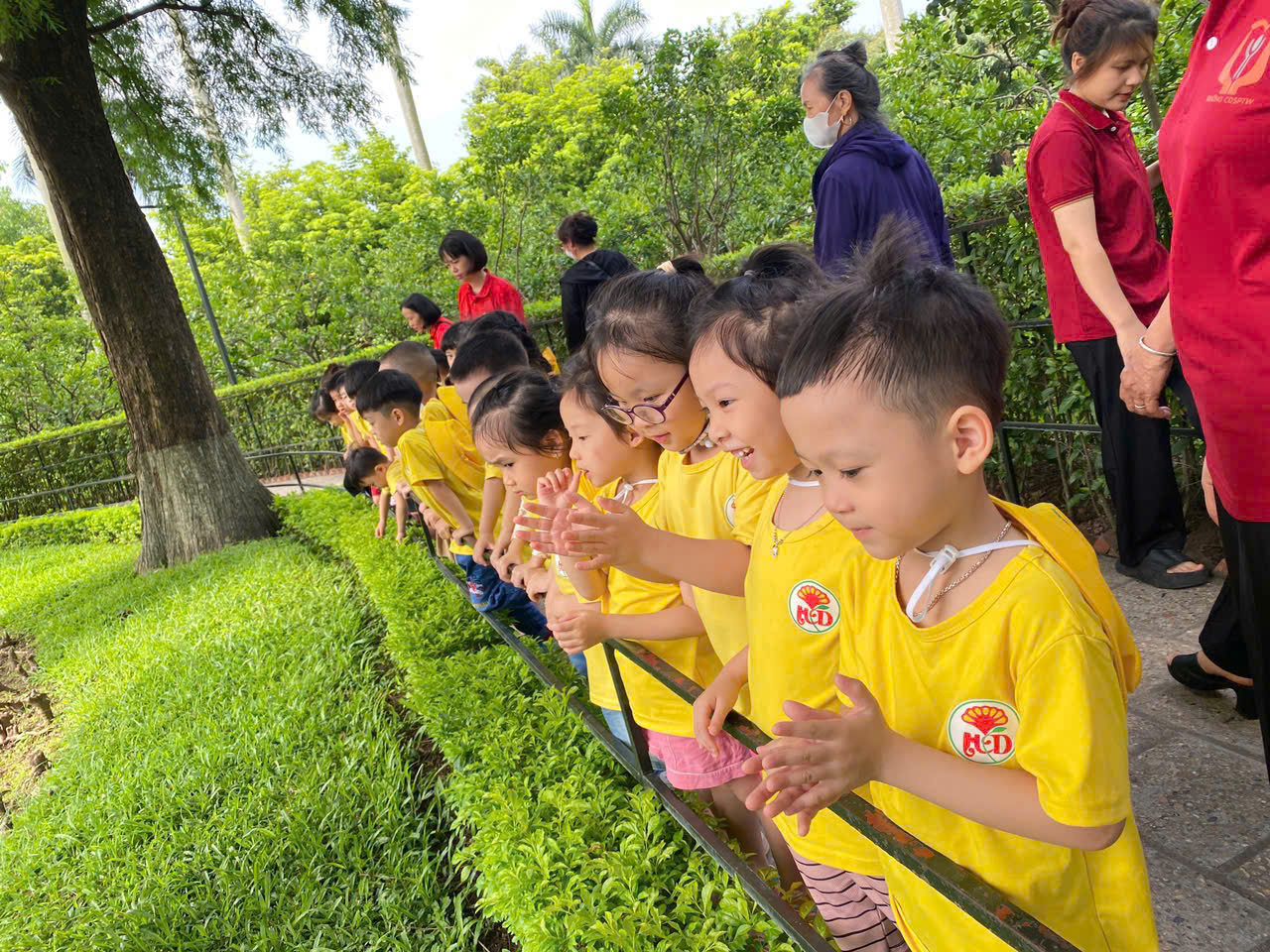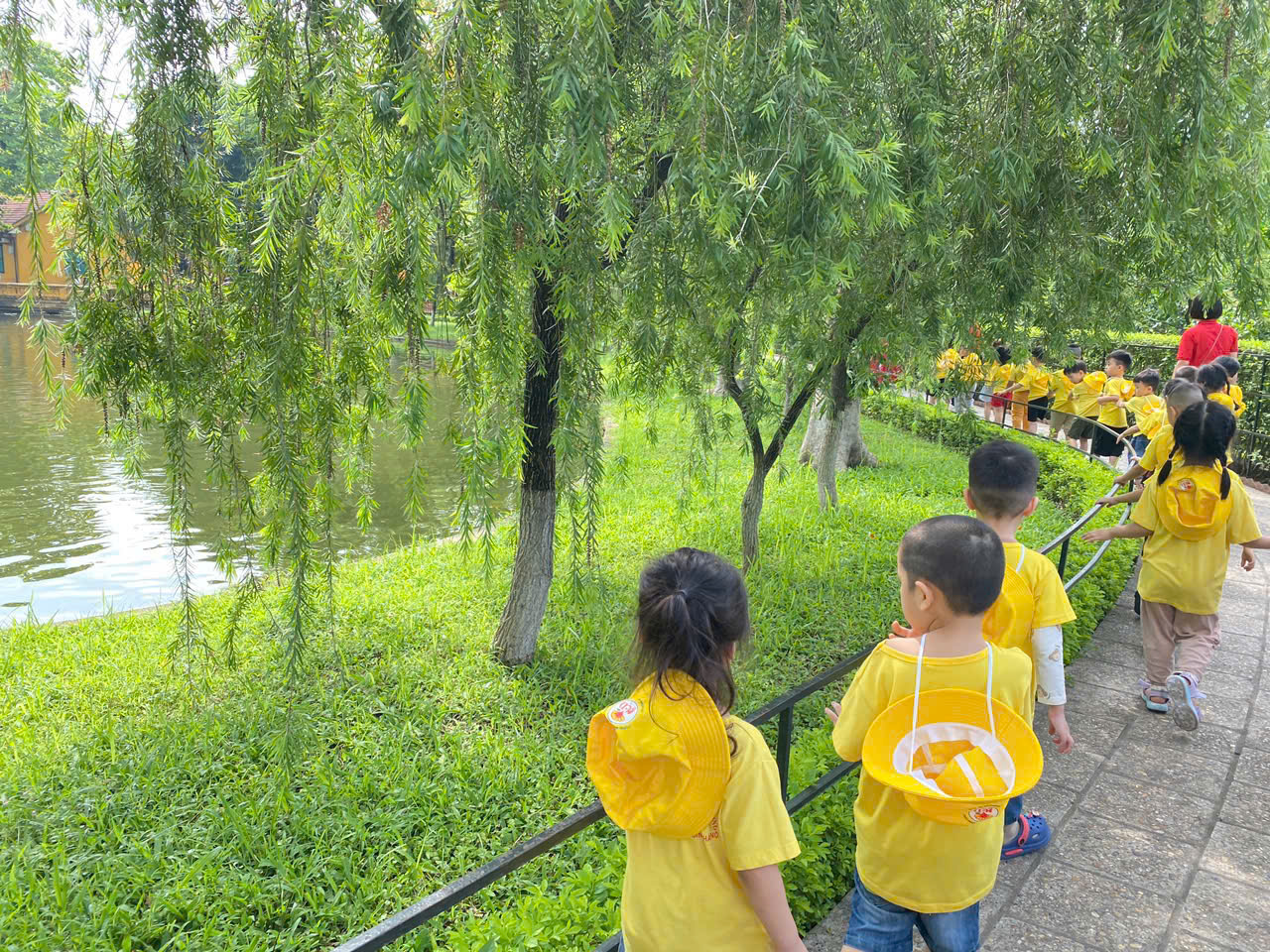Hôm nay, các bạn nhỏ mầm non háo hức khoác ba lô nhỏ xinh, tay nắm tay nhau về thăm Lăng Bác, ao cá, và ngôi nhà sàn giản dị của Người.