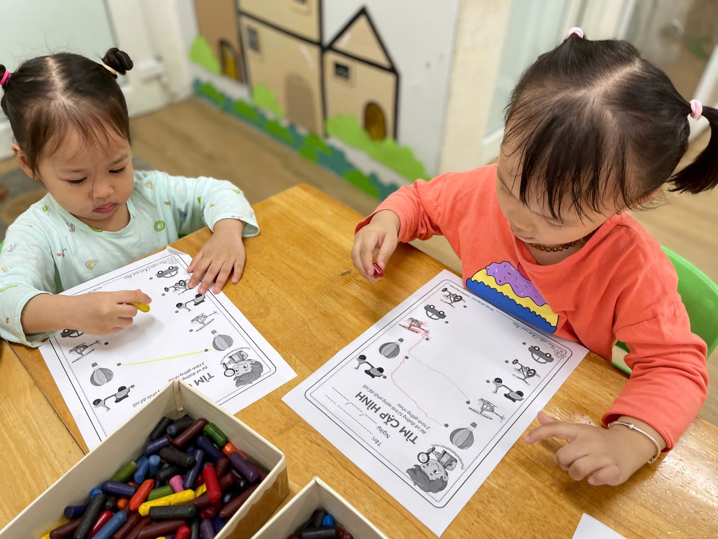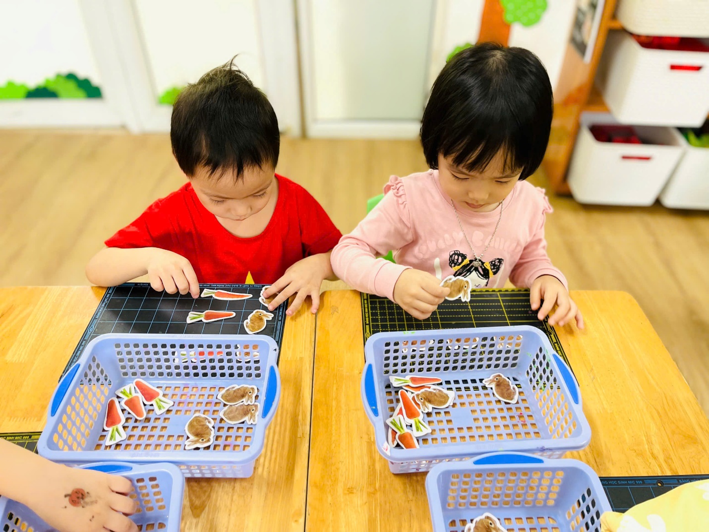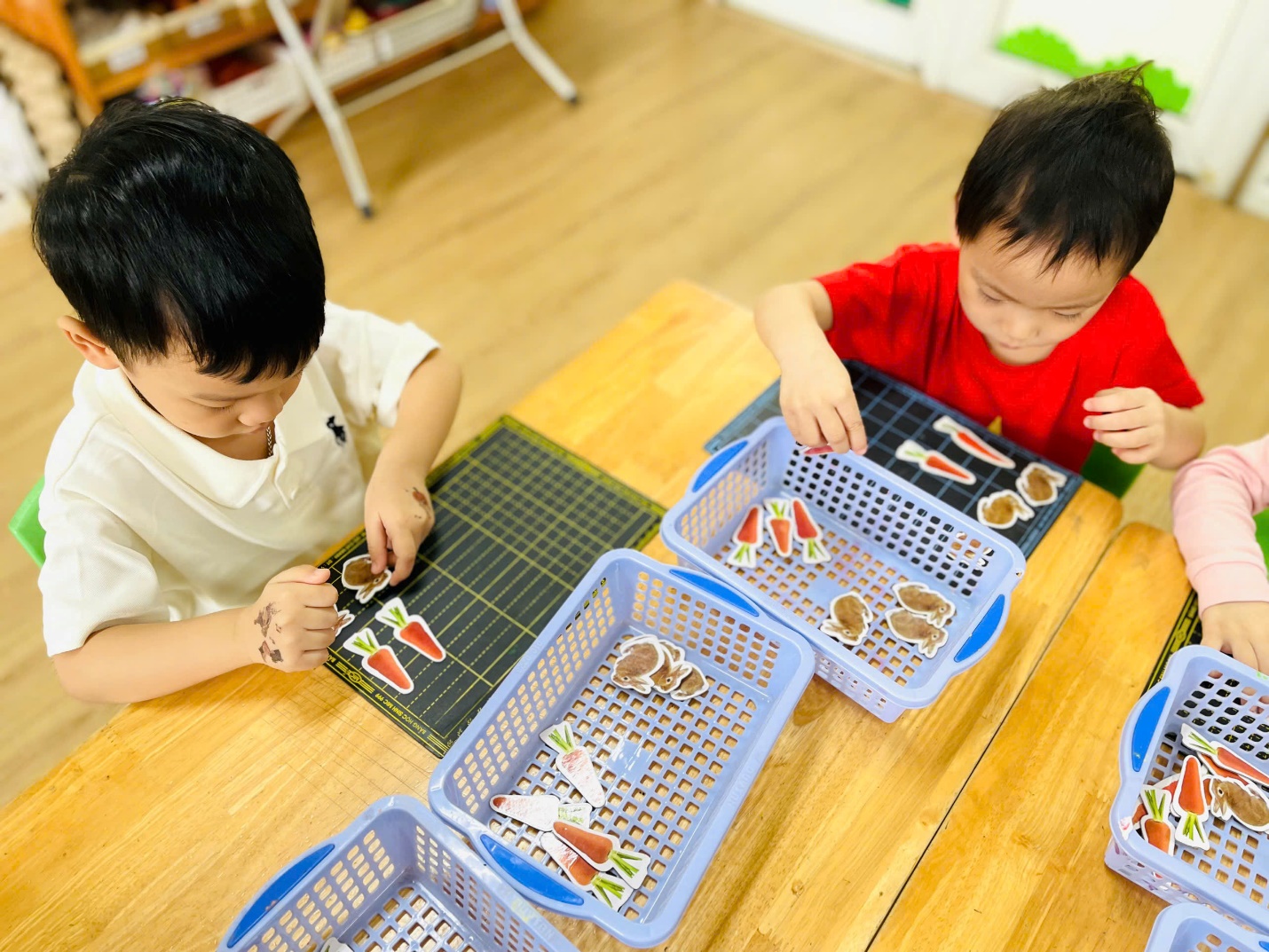 Cuối cùng, sau khi học, các con được tham gia vào trò chơi ghép đôi vui nhộn và làm các bài tập thực hành. Bé nào cũng hào hứng, chăm chú, vừa chơi vừa học, thể hiện sự tập trung và niềm vui khi chinh phục thử thách nhỏ của mình.
