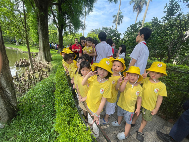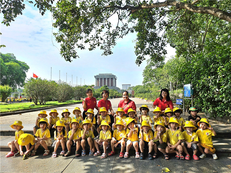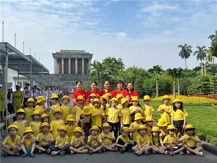 Trong ánh nắng ban mai dịu nhẹ của ngày 13/05/2025, những nụ cười tươi tắn và ánh mắt háo hức của các bé trường Mầm non Hoa Hướng Dương rạng ngời trên suốt chặng đường đến với Quảng trường Ba Đình lịch sử.