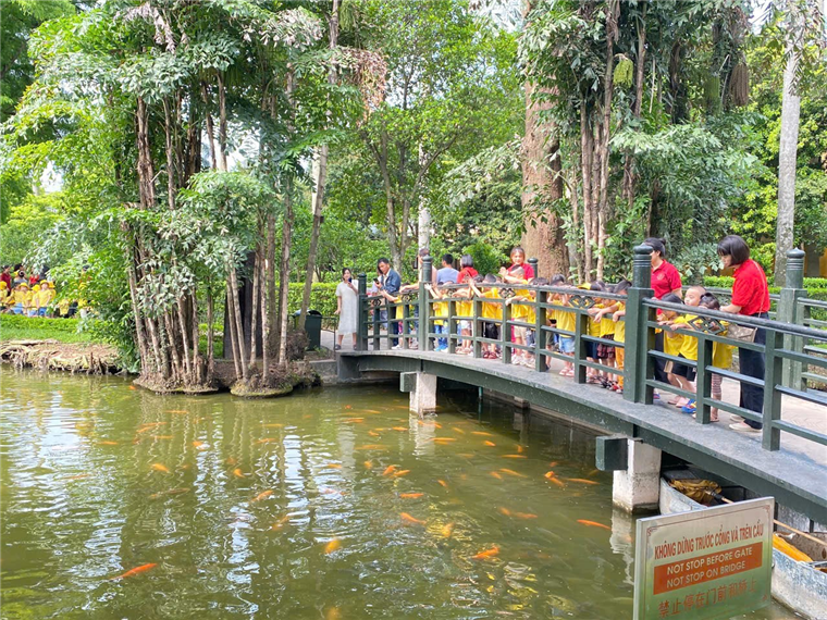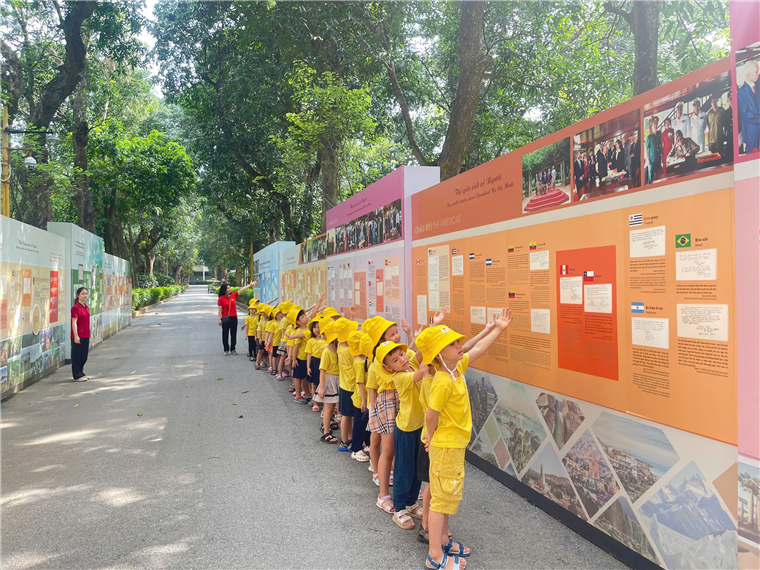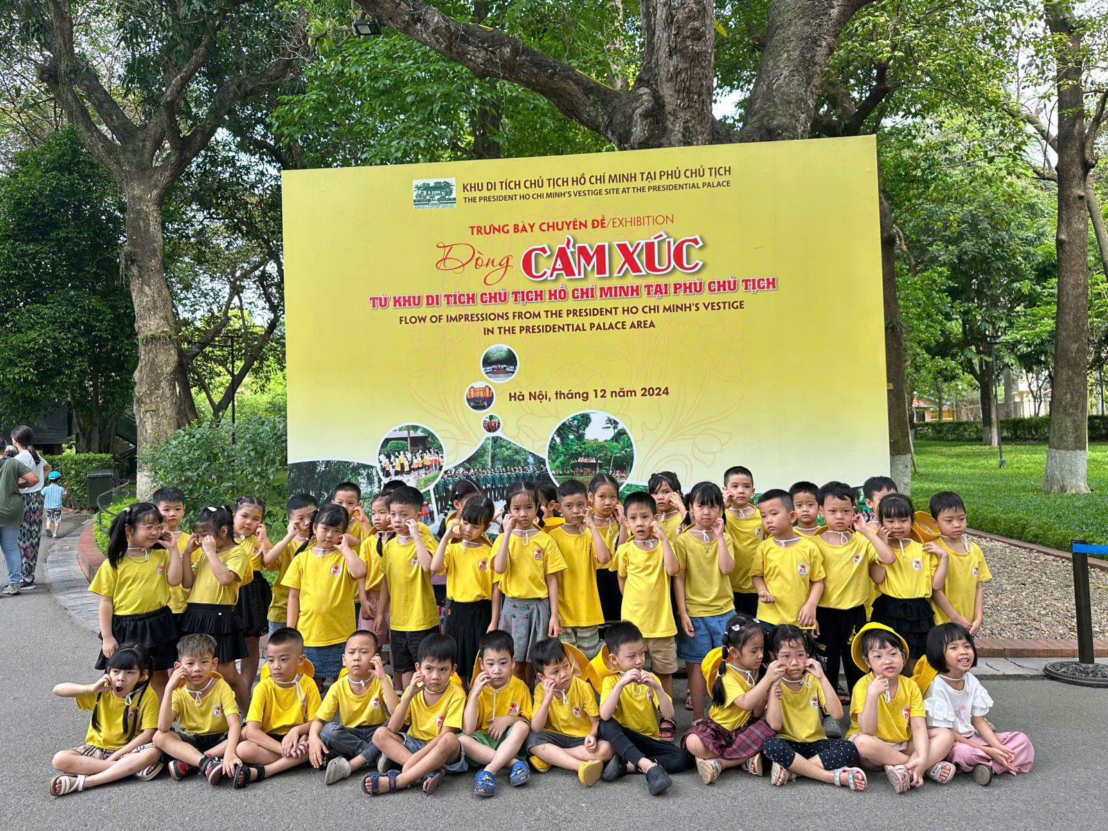 Không chỉ viếng Lăng Bác, các bé còn được dạo bước trong khuôn viên Phủ Chủ tịch, ngắm nhìn những hàng cây xanh mát, ao cá thanh bình và những ngôi nhà giản dị, nơi Bác Hồ đã từng sống và làm việc.