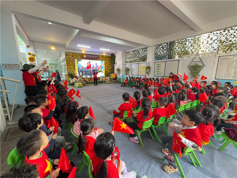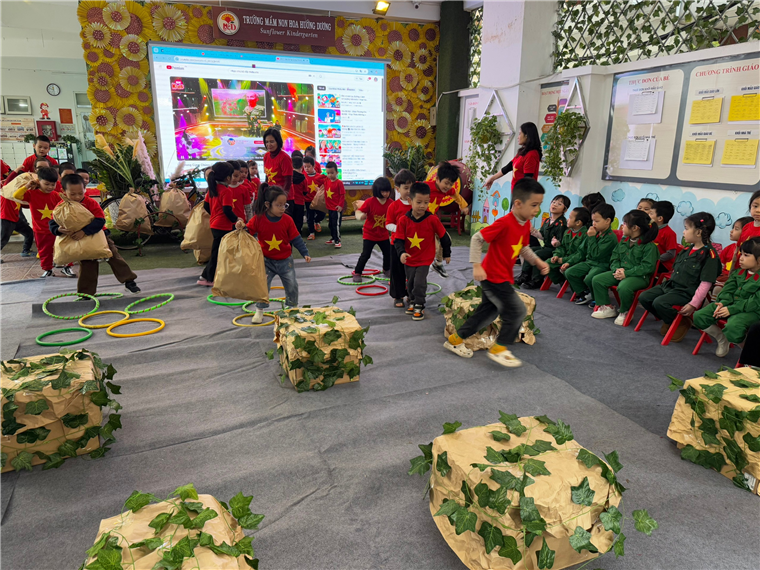 Hòa chung niềm vui của cả nước hướng về ngày lễ trọng đại - 80 năm ngày thành lập Quân đội Nhân dân Việt Nam, trường Mầm non Hoa Hướng Dương đã tổ chức buổi giao lưu đặc biệt dành cho các bé khối Mẫu giáo lớn. Buổi giao lưu là dịp để các bé hiểu thêm về lịch sử hào hùng của dân tộc, về những công lao to lớn của các chiến sĩ Quân đội Nhân dân Việt Nam trong sự nghiệp xây dựng và bảo vệ Tổ quốc.