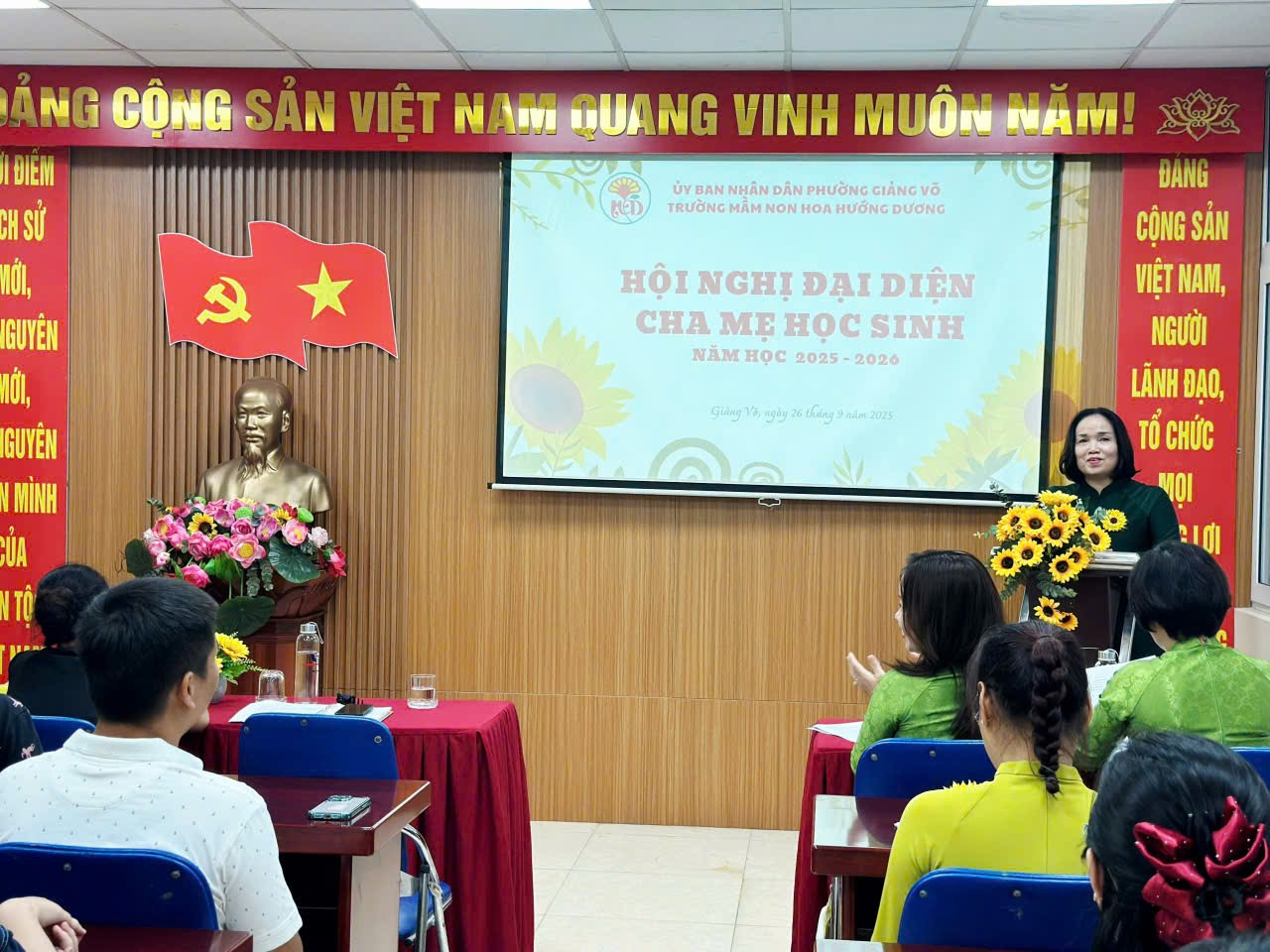 Hội nghị đại diện cha mẹ học sinh đầu năm học 2025 – 2026 tại trường Mầm non Hoa Hướng Dương đã thành công tốt đẹp. Với sự đồng lòng của tập thể sư phạm và sự đồng hành của phụ huynh, tin tưởng rằng năm học này sẽ gặt hái nhiều thành công, mang đến cho các bé những ngày đến trường an toàn – hạnh phúc – sáng tạo – tỏa sáng.