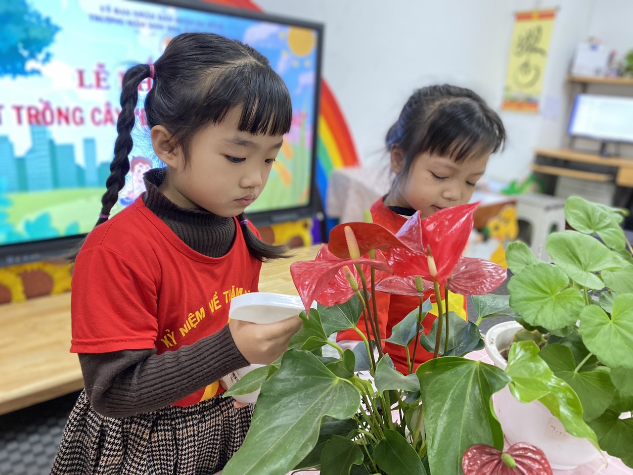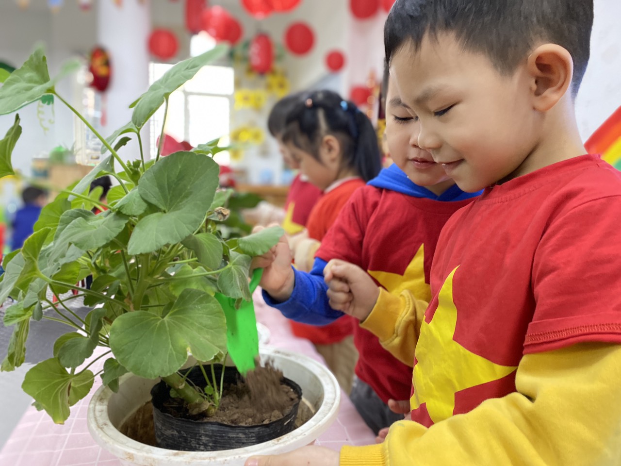 Cô giáo đã hướng dẫn các bé được tìm hiểu về ý nghĩa của việc trồng cây, lợi ích của cây xanh đối với cuộc sống con người đến cách trồng cây đúng cách, từ việc đào hố, đặt cây, lấp đất đến tưới nước. Hoạt động này không chỉ góp phần bảo vệ môi trường mà còn là dịp để giáo dục các em nhỏ về tình yêu thiên nhiên, ý thức trách nhiệm với cộng đồng. Các bạn nhỏ lớp MGN B3 đã rất hào hứng tham gia hoạt động này.