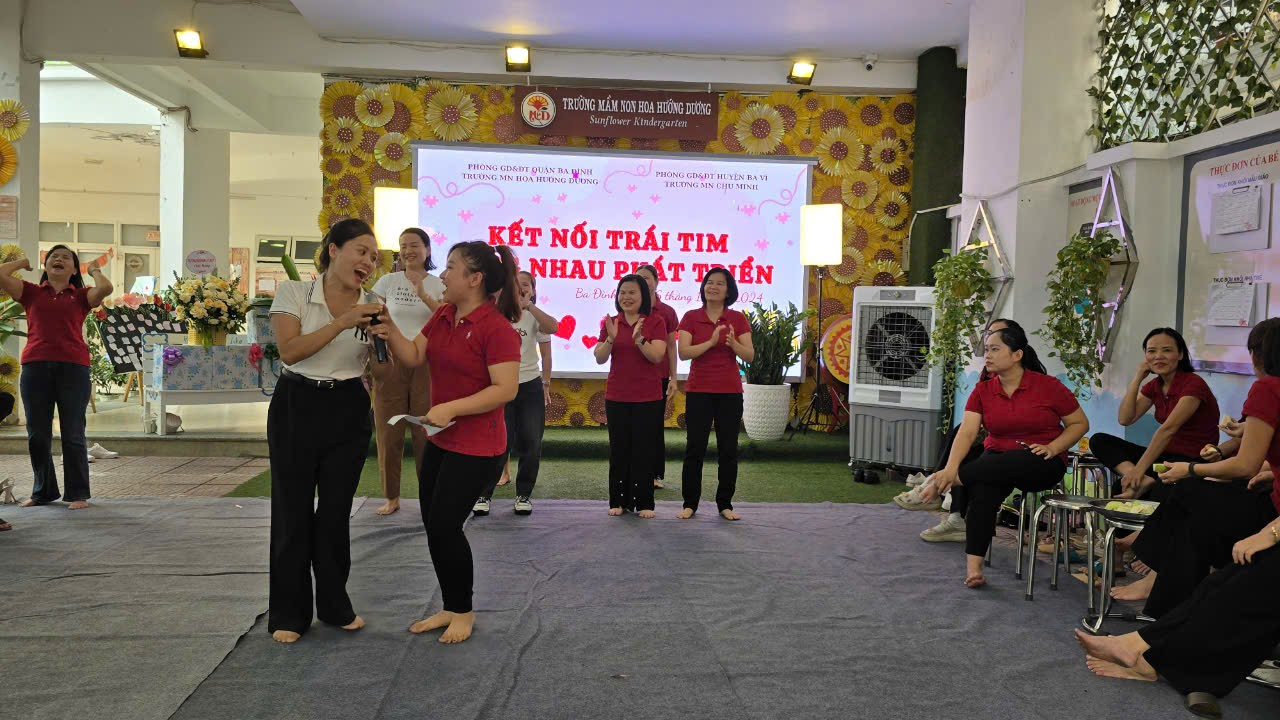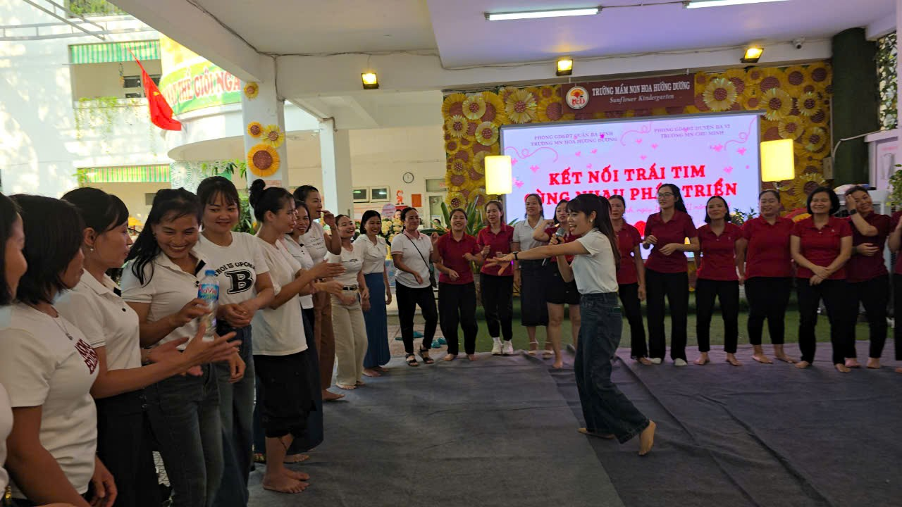 Không khí buổi giao lưu trở nên sôi động hơn bao giờ hết khi các thầy cô cùng nhau tham gia các trò chơi team building. Mỗi đội đại diện cho một màu sắc rực rỡ, hăng hái tham gia các thử thách. Tiếng cười vang lên khắp nơi, xóa tan mọi khoảng cách, tạo nên một không khí thân thiện và gắn kết. Đặc biệt, tiết mục văn nghệ tự biên tự diễn đã mang đến những bất ngờ thú vị, thể hiện tài năng và sự sáng tạo của các cô giáo.