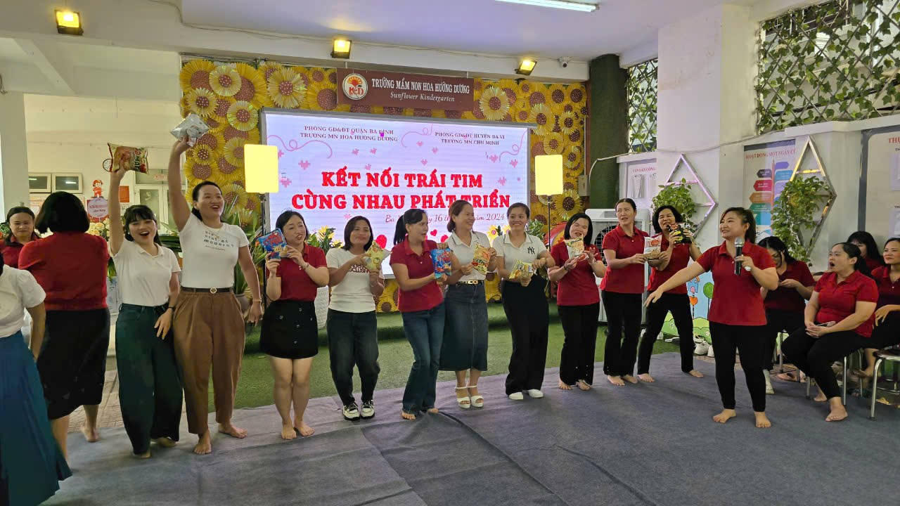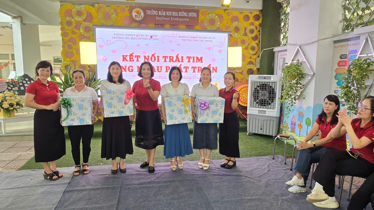 Sau chuyến tham quan, các cô giáo và cán bộ hai trường đã cùng nhau giao lưu tại trường Mầm non Hoa Hướng Dương. Hai trường đã gửi tặng nhau những món quà ý nghĩa, những món quà mang theo tình cảm chân thành, sự gắn bó và lời chúc tốt đẹp mà hai nhà trường dành cho nhau.