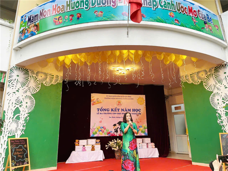 Phát biểu tại buổi lễ, nhà giáo Nguyễn Huỳnh Thu Cúc – Bí thư chi bộ - Hiệu trưởng nhà trường đã gửi lời chúc mừng và dặn dò chân thành đến các bé mẫu giáo lớn. Cô hiệu trưởng cũng bày tỏ lời cảm ơn sâu sắc tới UBND quận Ba Đình, Đảng uỷ, UBND phường Cống Vị, Phòng Giáo dục và Đào tạo quận Ba Đình, các bậc cha mẹ học sinh đã ủng hộ và đồng hành cùng nhà trường trong năm học 2024-2025.