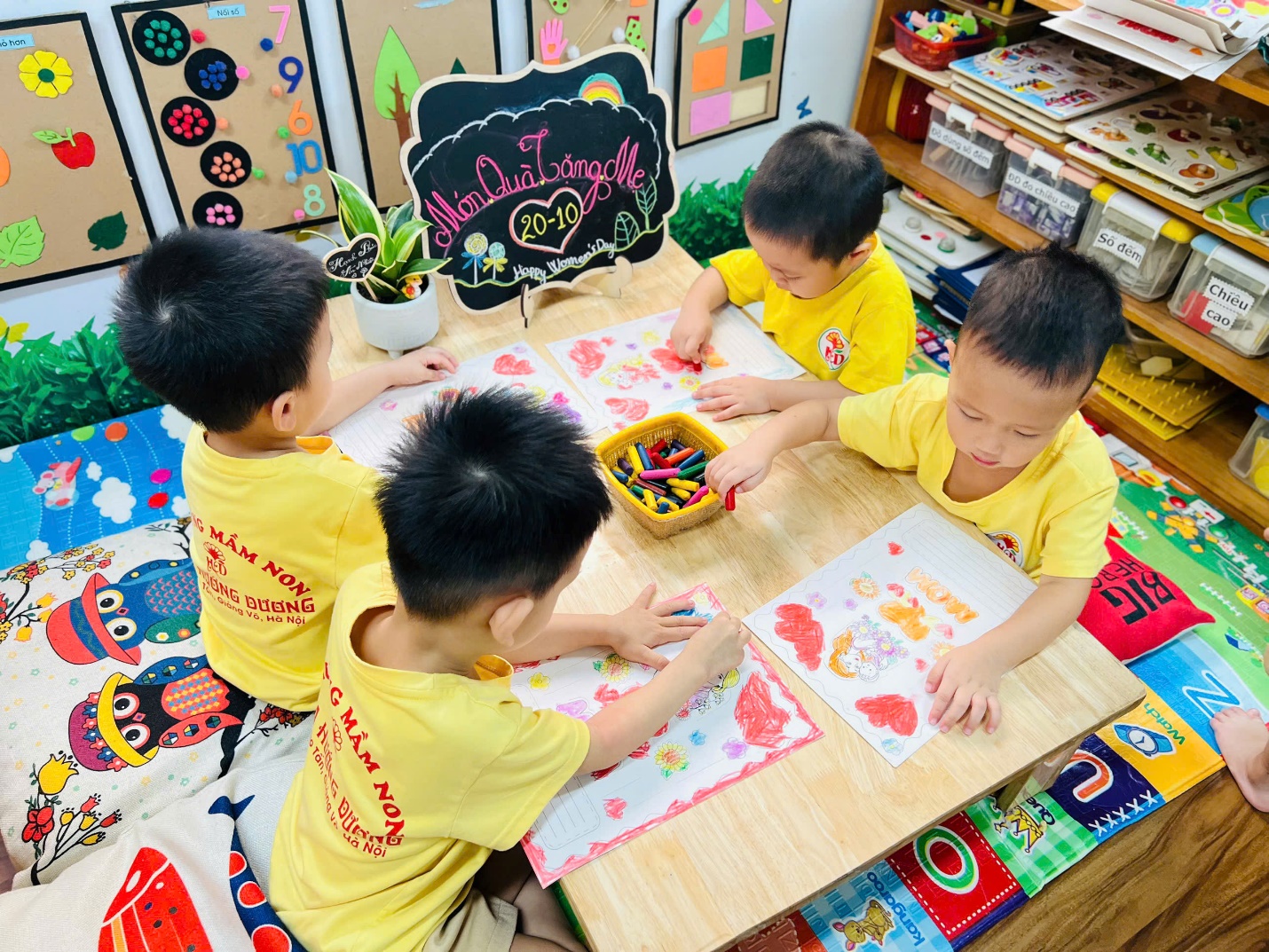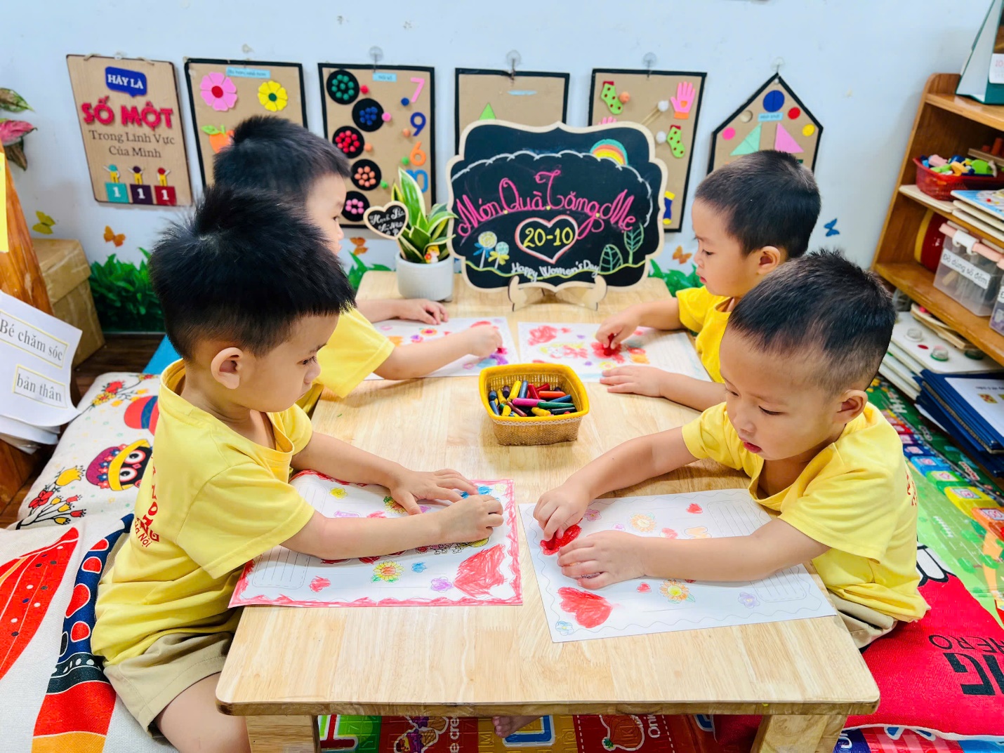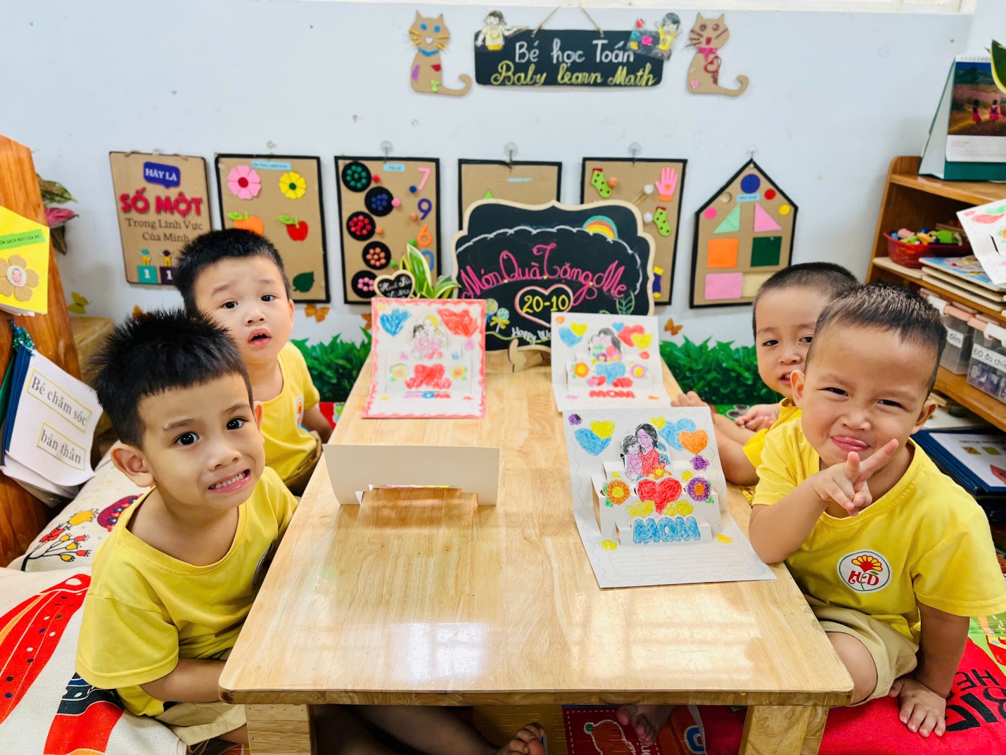 Trong hoạt động, cô giáo nhẹ nhàng kể cho các bé nghe câu chuyện về mẹ – người luôn chăm sóc, yêu thương và dành trọn vẹn tình yêu cho con. Từ đó, các bé háo hức bắt tay vào làm món quà 20/10 của riêng mình.