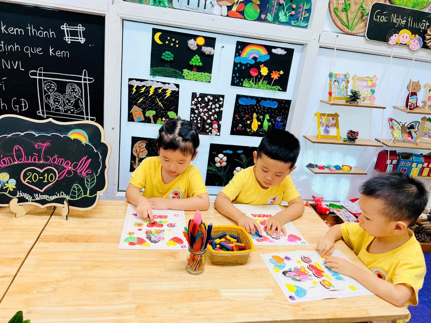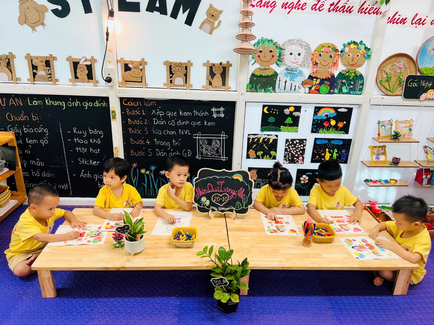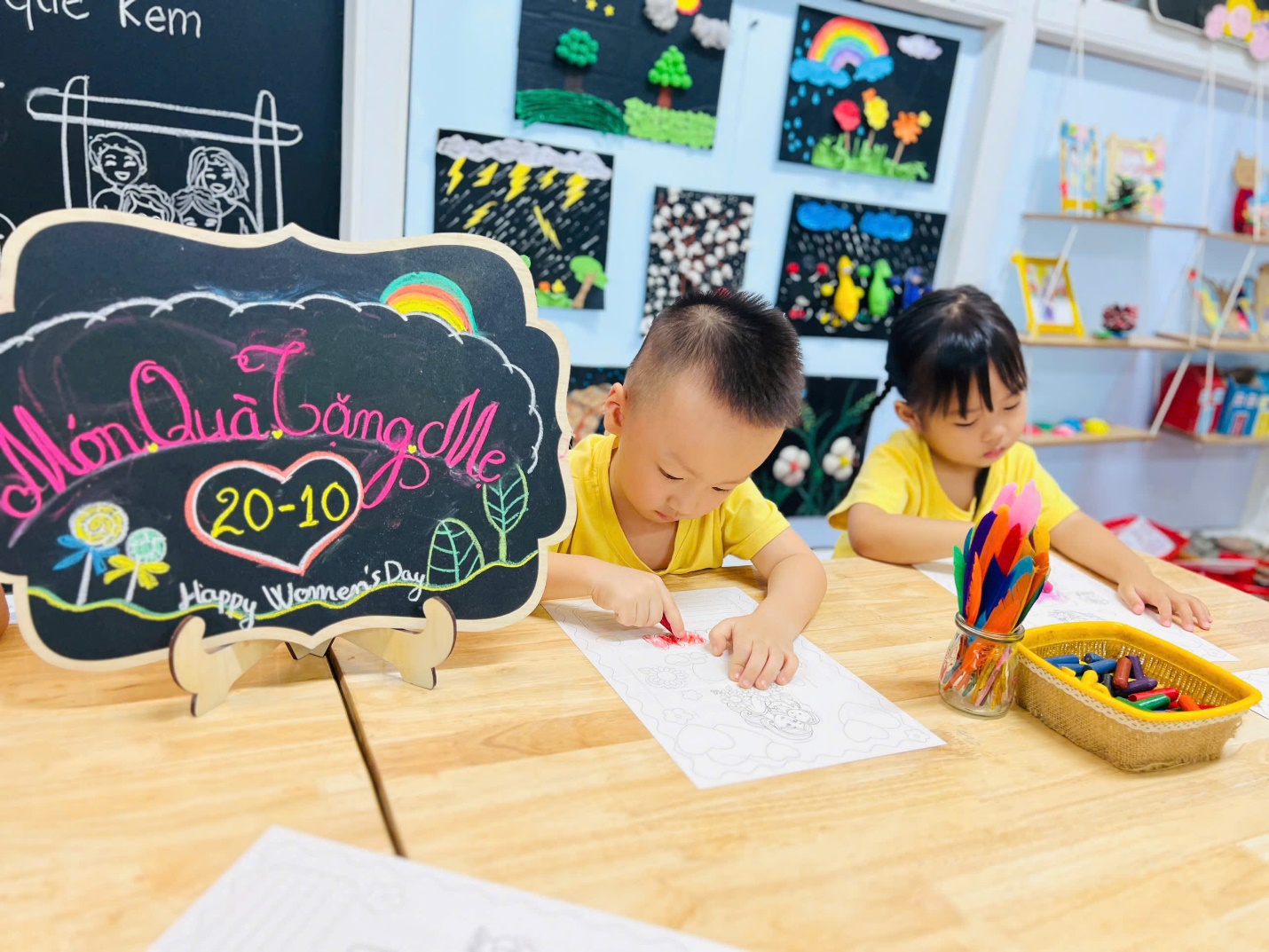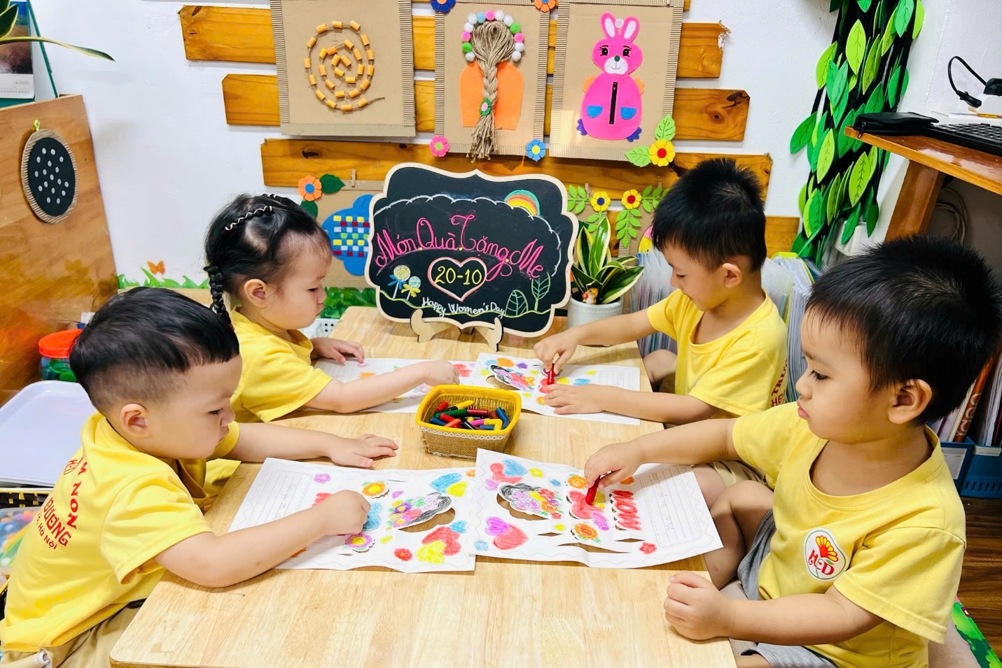 Trong hoạt động, cô giáo nhẹ nhàng kể cho các bé nghe câu chuyện về mẹ – người luôn chăm sóc, yêu thương và dành trọn vẹn tình yêu cho con. Từ đó, các bé háo hức bắt tay vào làm món quà 20/10 của riêng mình.