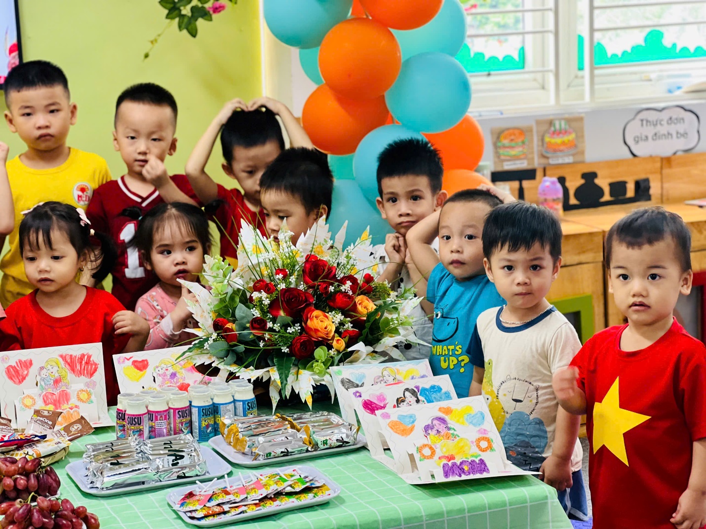 Không chỉ vậy, các bạn còn cùng nhau chụp ảnh kỷ niệm bên bàn tiệc được trang trí rực rỡ với hoa quả, bánh kẹo và những tấm thiệp đáng yêu do chính mình sáng tạo. Mỗi nụ cười, mỗi ánh mắt đều chứa chan niềm vui và tình yêu thương.