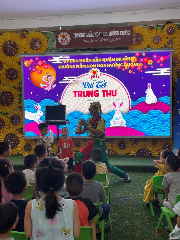 Trong không khí vui tươi nhộn nhịp của ngày Tết Trung Thu sáng ngày 08/9/2022 ( tức 13/8 âm lịch ) Trường Mầm non Hoa Hướng Dương tưng bừng tổ chức Chương trình “ Vui tết trung thu” cho các con học sinh. Ngày hội trung thu của trường MN Hoa Hướng Dương được chuẩn bị rất chu đáo với tất cả nhiệt huyết của cô và trò. Từ khâu trang trí sân lễ làm sao để truyền tải hết được những thông điệp mà các cô muốn gửi gắm đến các bé, giúp các bé có những hình dung rõ nét nhất về trung thu.
