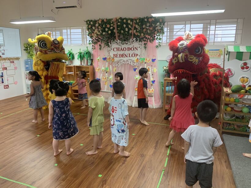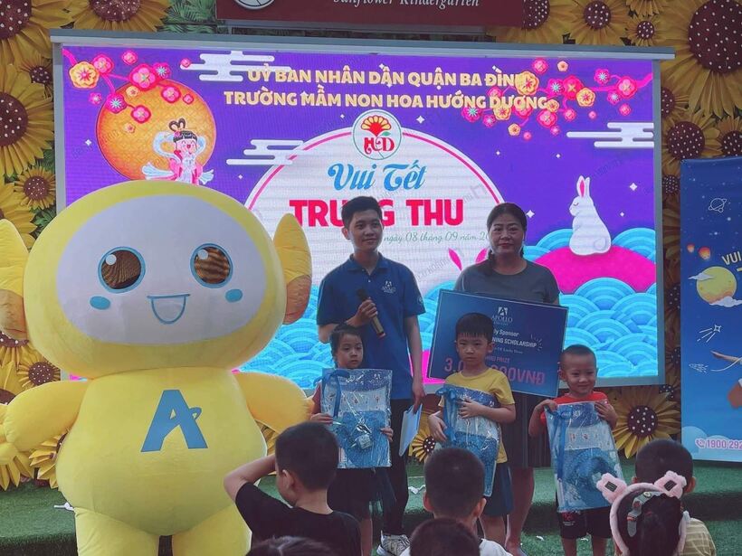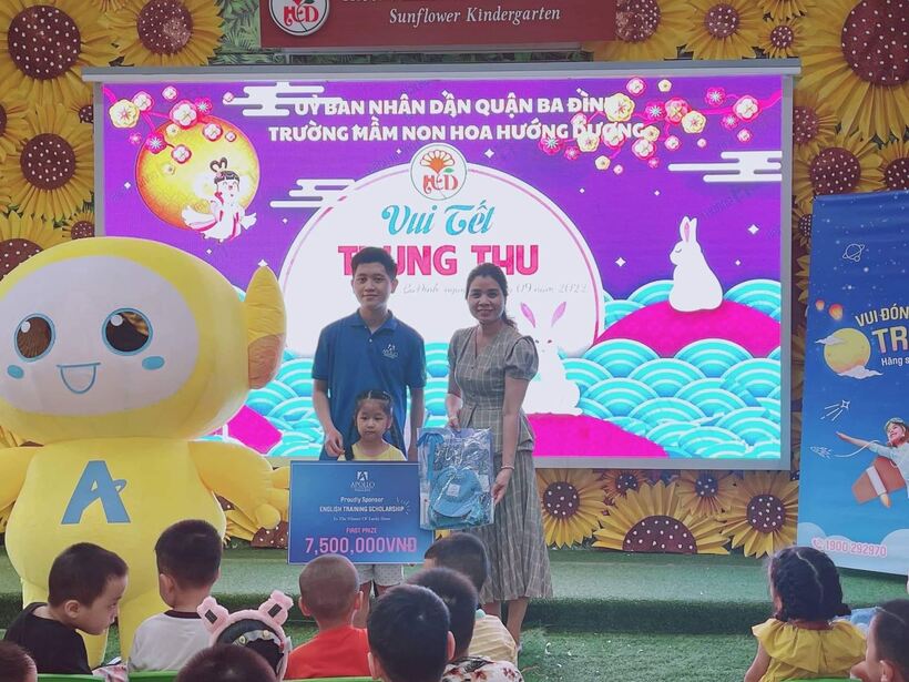 Trong chương trình các con được trò chuyện với chị Hằng, được xem các tiết mục văn nghệ do các cô giáo thể hiện. Ngoài ra các con còn được bốc thăm và nhận nhiều phần quà từ trung tâm tiếng anh Apolo. Hơn nữa các con còn được giao lưu với chú hề và nhà ảo thuật gia.