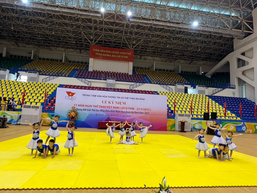 Tham gia hội thi có 19 trường mầm non công lập trên địa bàn quận Ba Đình. Mỗi đơn vị tham gia dự thi với 01 bài thi tự chọn, nội dung bài thi các đội tự biên soạn theo yêu cầu chuyên môn có cấu trúc theo quy định như: tháp nâng người; đội hình di chuyển; động tác thể dục; vũ đạo và nghệ thuật; tư thế thể dục…