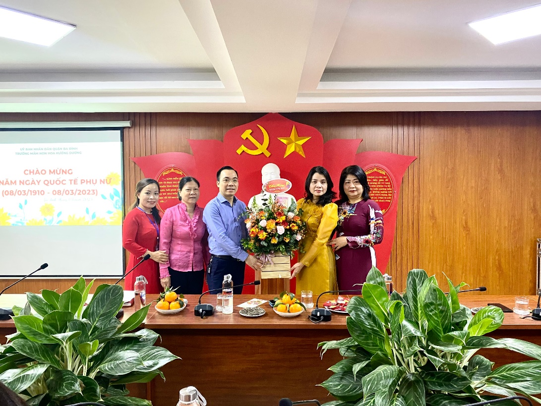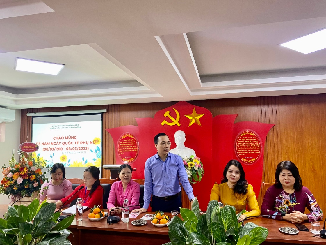 Ông Lê Quốc Dũng gửi lời chúc mừng đến cán bộ giáo viên, nhân viên trường MN Hoa Hướng Dương nhân ngày Quốc tế Phụ nữ 8/3