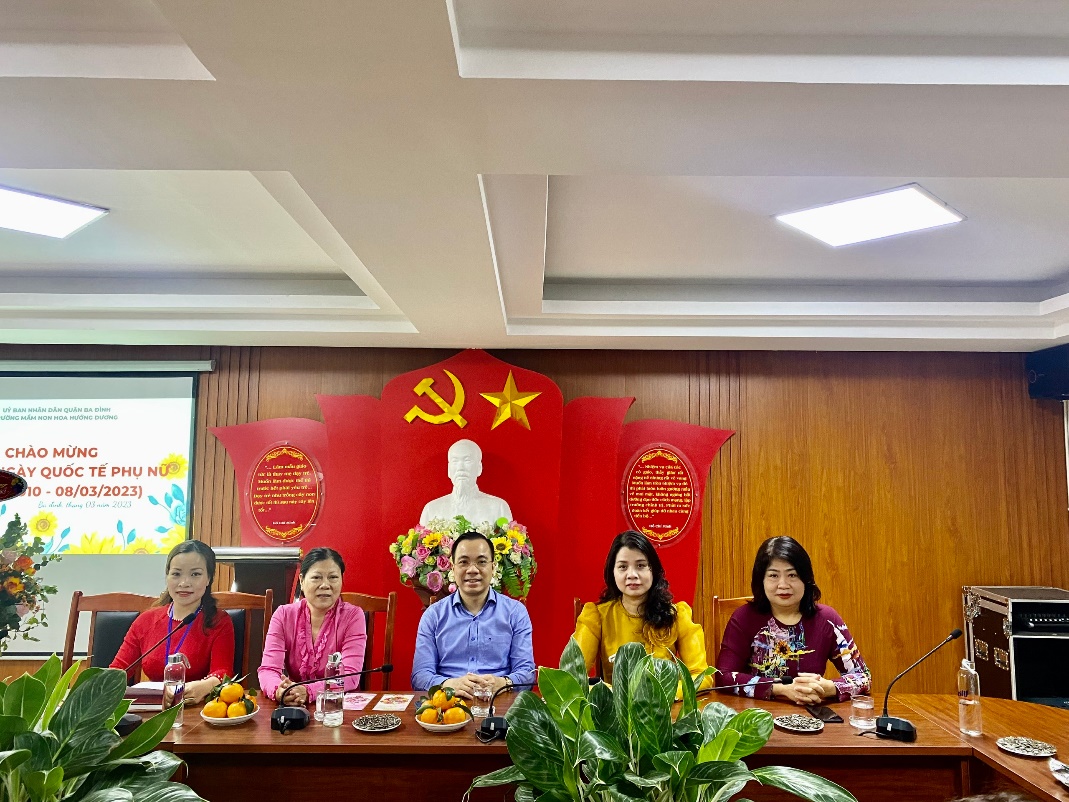 Về dự buổi liên hoan có các đồng chí trong BGH nhà trường, các đồng chí giáo viên, nhân viên trong nhà trường và đặc biệt là sự có mặt của bà Tạ Thị Hiển (Trưởng ban đại diện CMHS) và ông Lê Quốc Dũng (Phó ban đại diện CMHS) nhà trường. Tại buổi lễ, đồng chí Phùng Thị Bích Hiền – Bí thư chi bộ - Hiệu trưởng nhà trường đã bày tỏ tình cảm, sự quan tâm đến các bà, các mẹ, các chị em, những người phụ nữ tuyệt vời xung quanh mình. Đại diện cha mẹ học sinh cũng gửi tới Ban Giám Hiệu và giáo viên, nhân viên trong trường bó hoa tươi thắm thay cho lời chúc mừng, động viên tới nhà trường. Buổi kỷ niệm diễn ra trong không khí vui tươi, phấn khởi.
