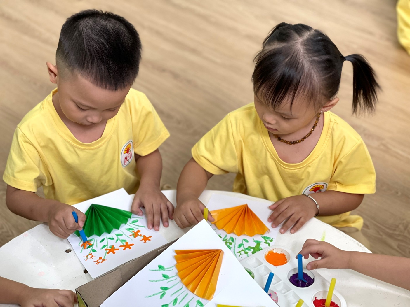 ✨ Trong "Ngày hội đến trường của bé" không khí lớp học trở nên thật sinh động khi các bé được tham gia hoạt động sáng tạo nghệ thuật. Với những chấm màu tươi tắn, đôi bàn tay nhỏ xinh đã khéo léo tạo nên những giỏ hoa đầy sắc màu.