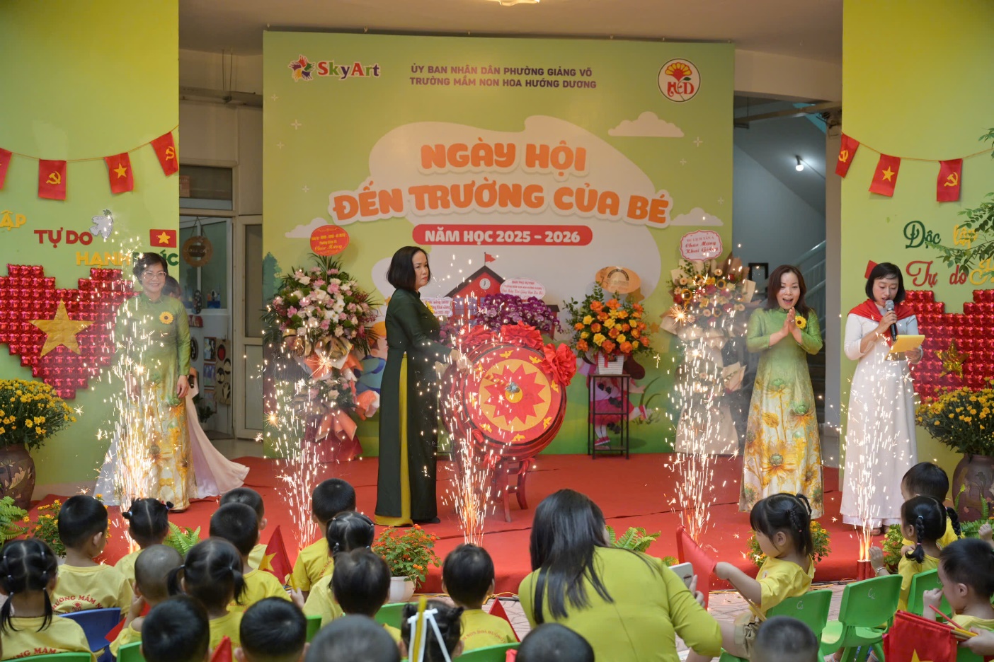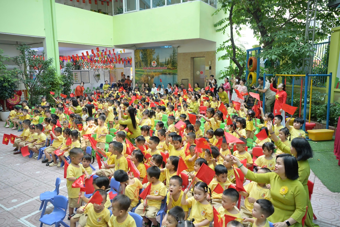 ✨ Tiếp đó, các con hòa mình trong không khí khai giảng tại sân trường. Tiếng trống khai trường vang lên giòn giã, cờ hoa rực rỡ, lời ca tiếng hát rộn ràng đã để lại trong lòng các bé những cảm xúc khó quên, khởi đầu một năm học mới với thật nhiều yêu thương và niềm tin.
