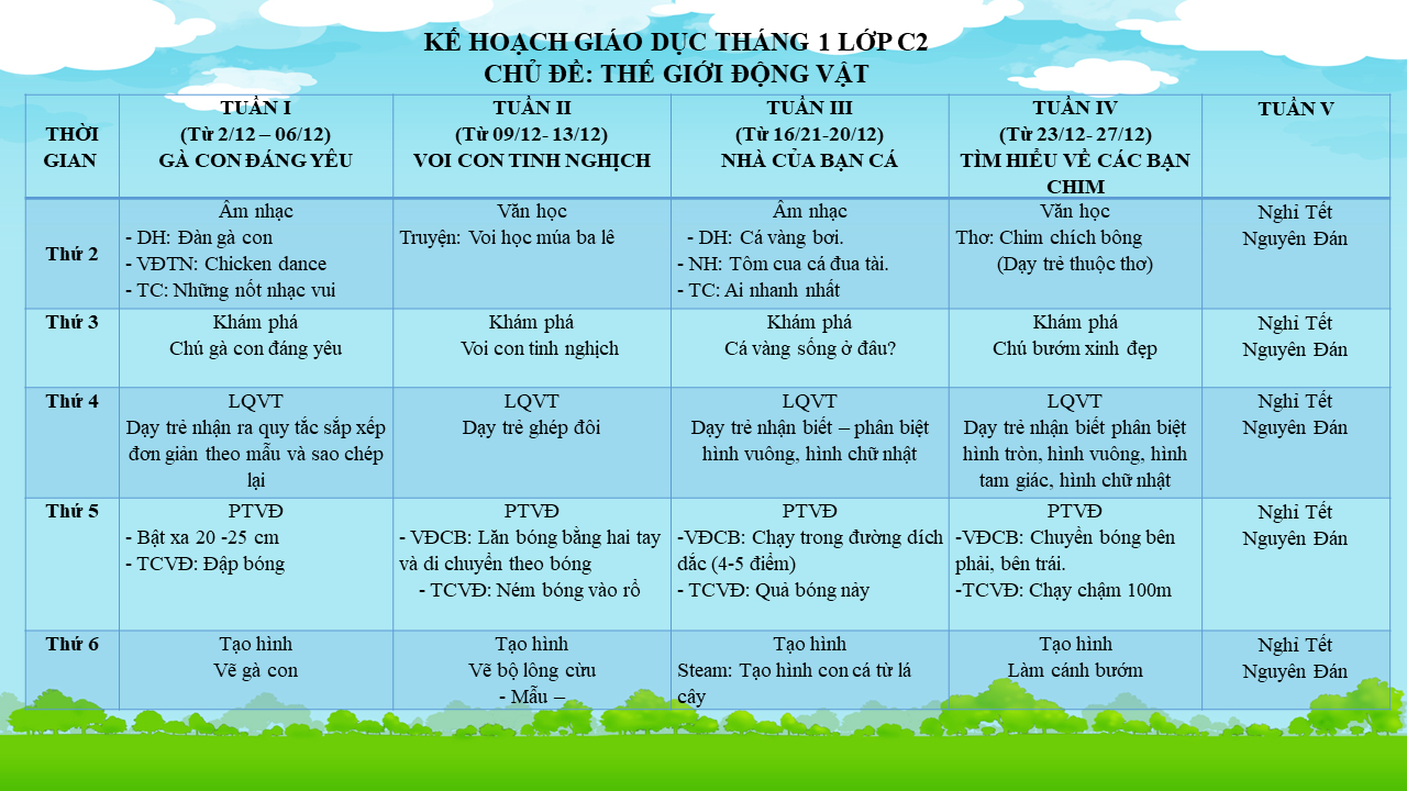 Kế hoạch giáo dục tháng 1 - Lớp Mẫu giáo bé C2