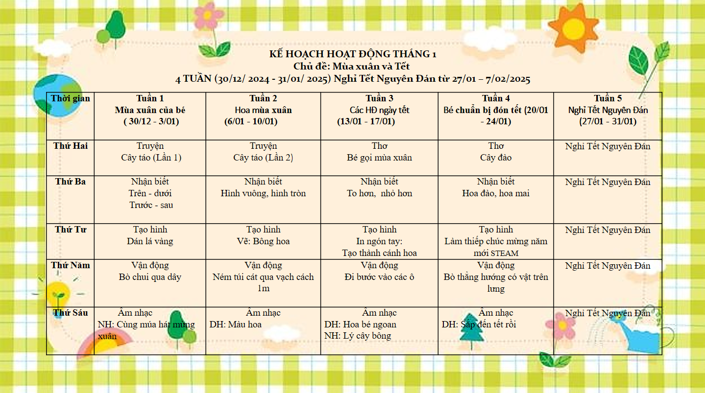 Kế hoạch giáo dục tháng 1 - Lớp Nhà trẻ D